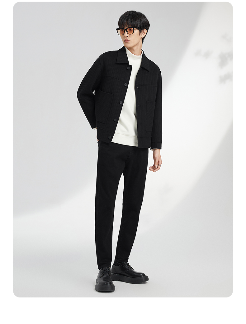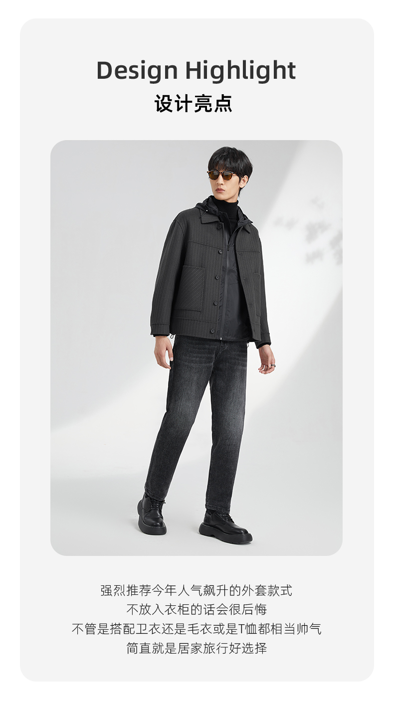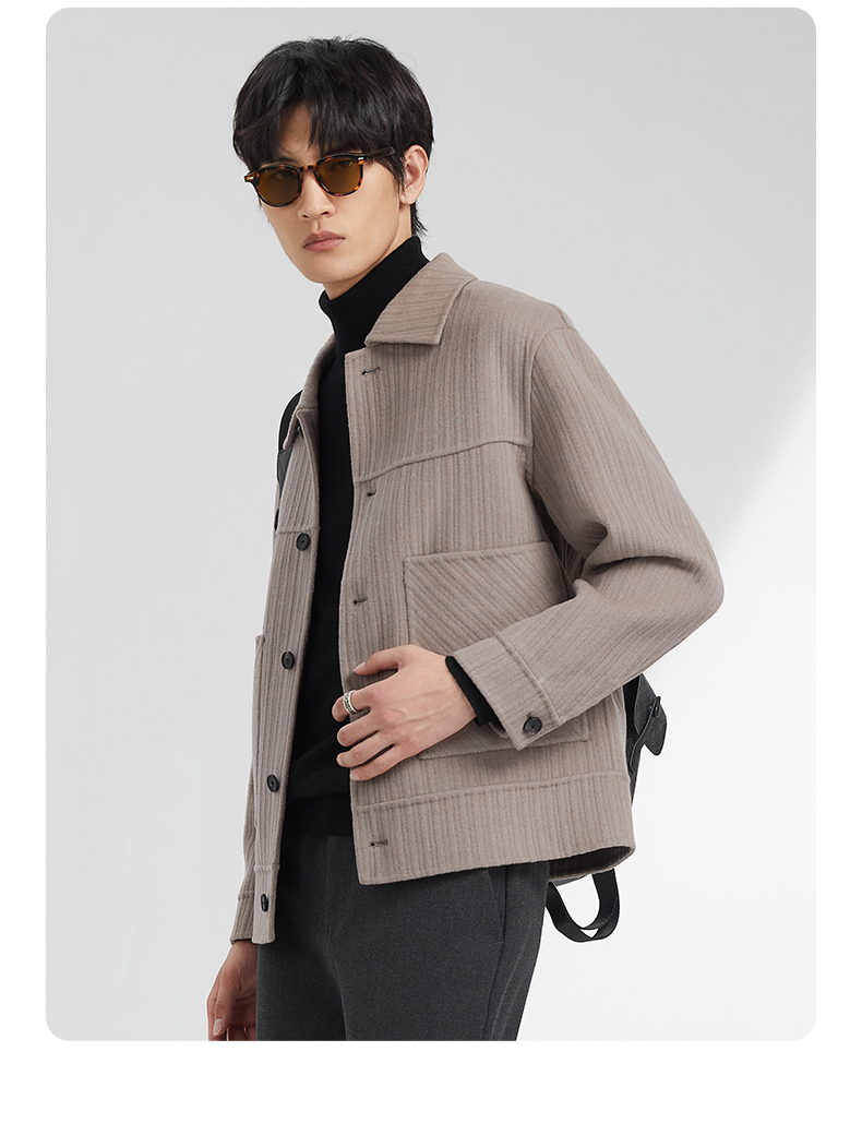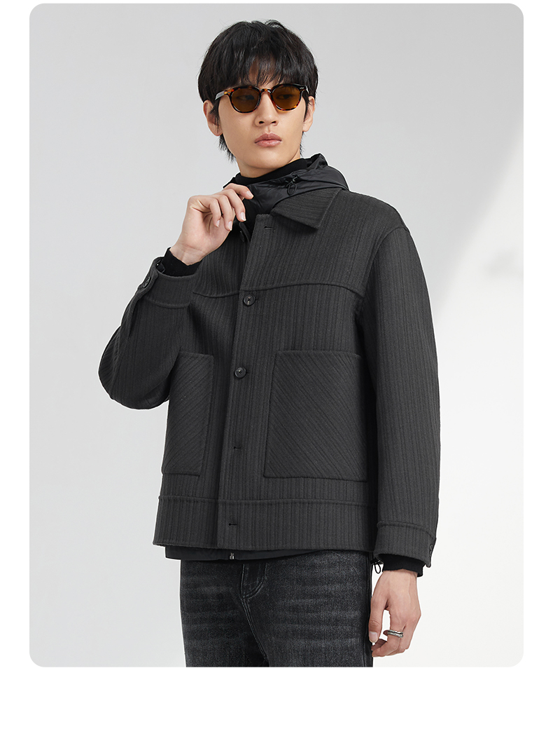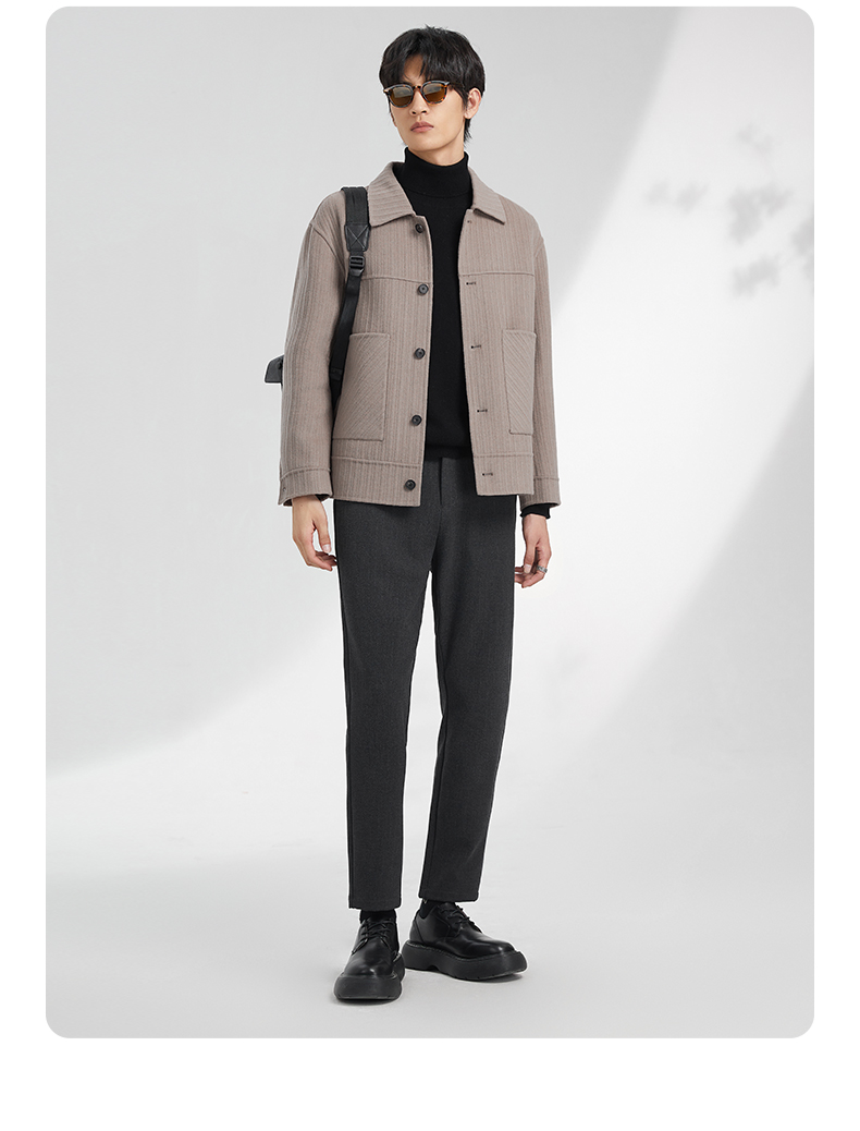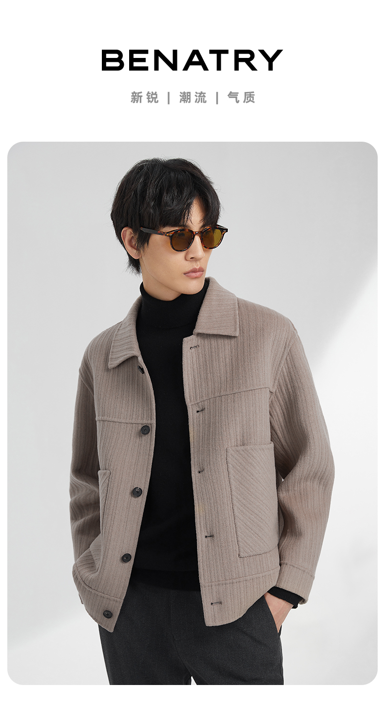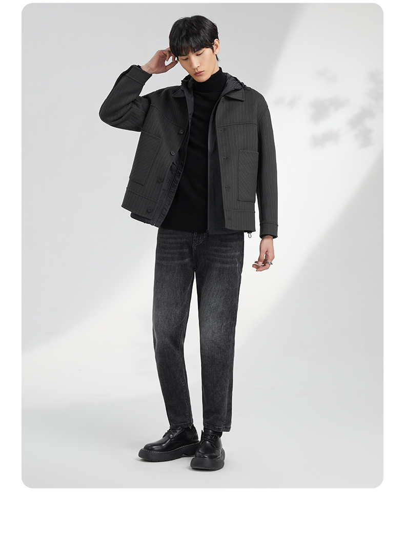 贝纳川竖条纹大贴袋翻领男士夹克外套ECK400008