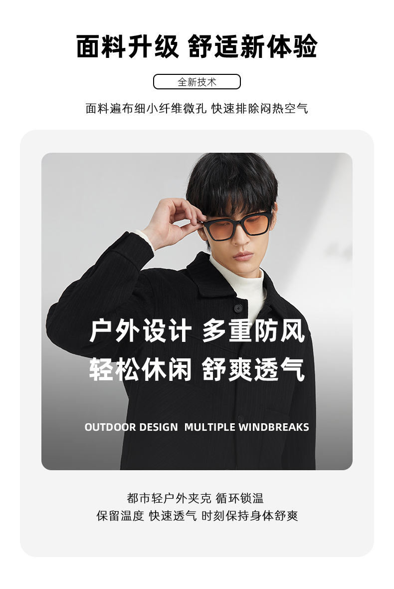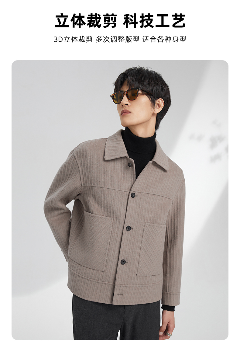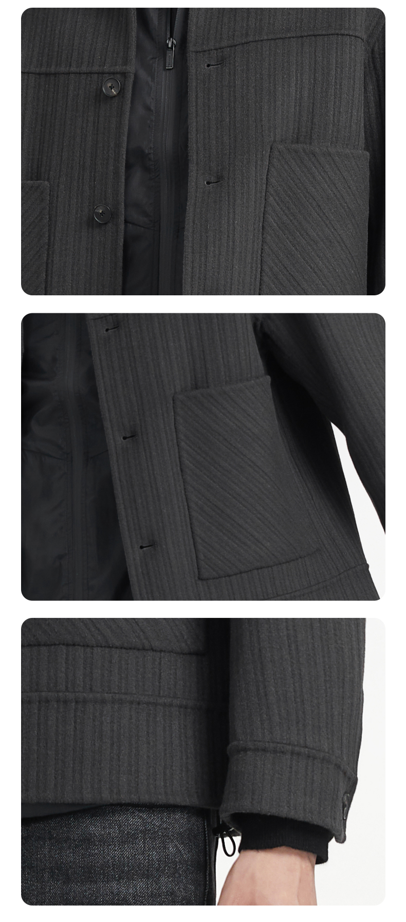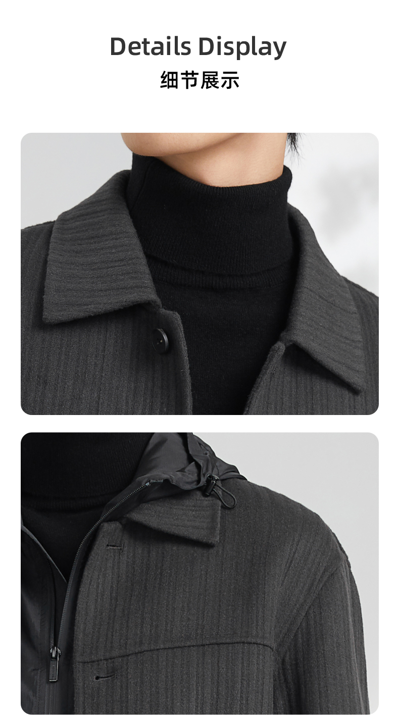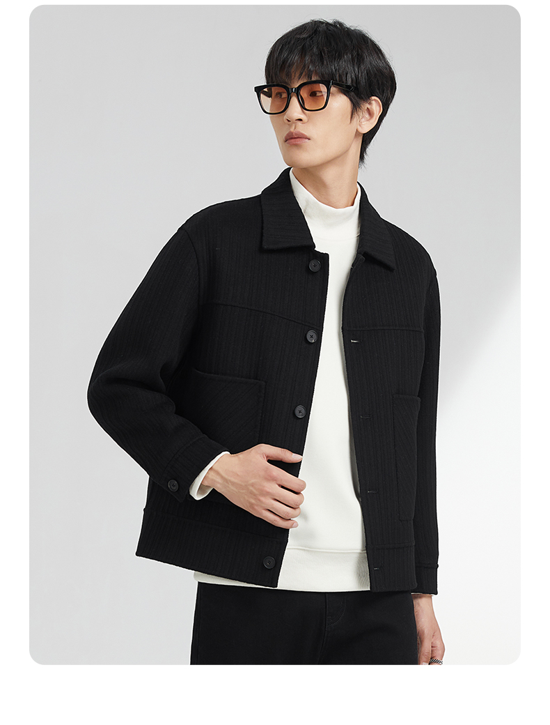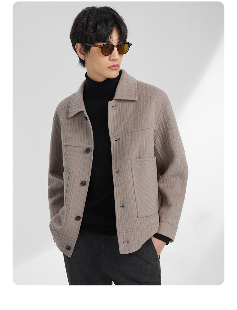 贝纳川竖条纹大贴袋翻领男士夹克外套ECK400008