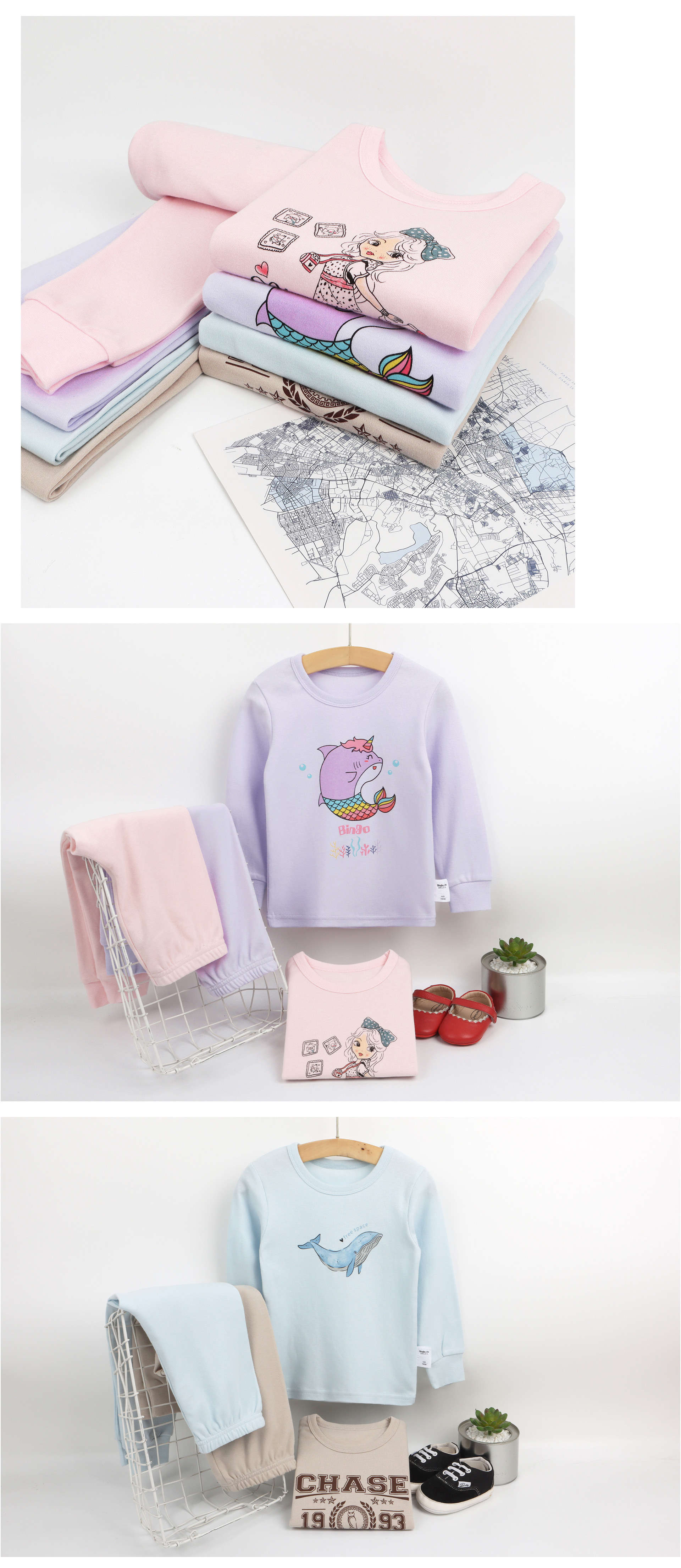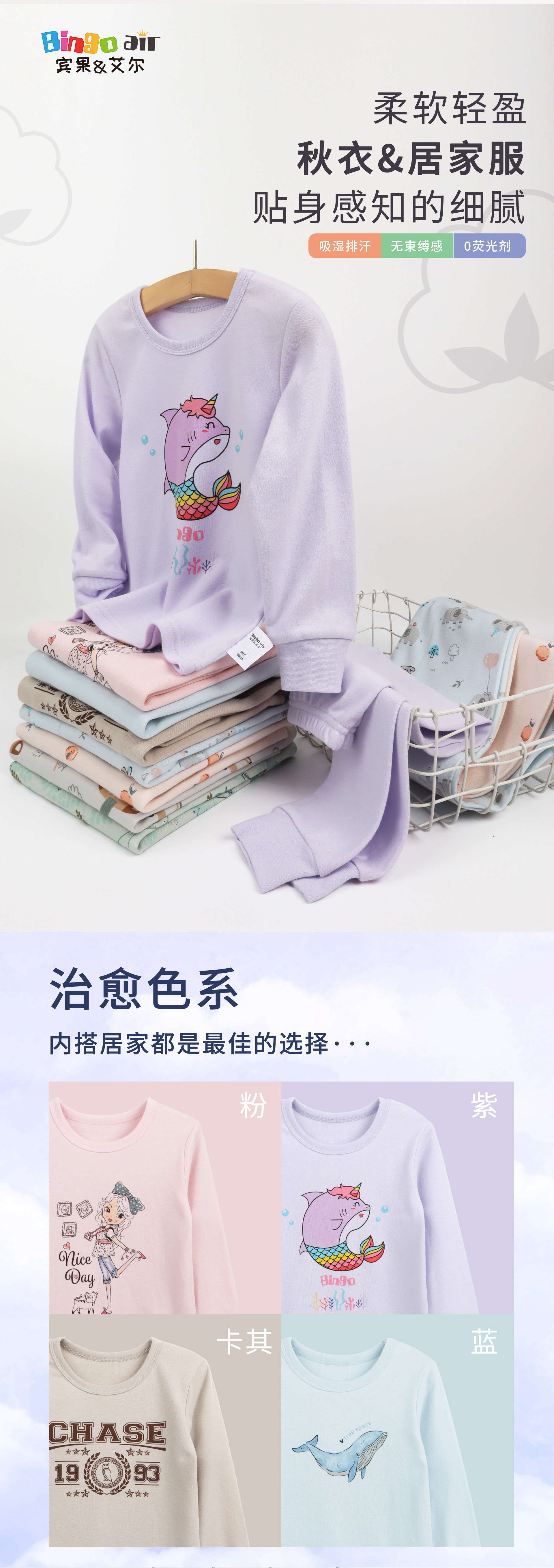 宾果艾尔儿童内衣套装纯棉男童全棉家居服女童秋衣秋裤 一件代发