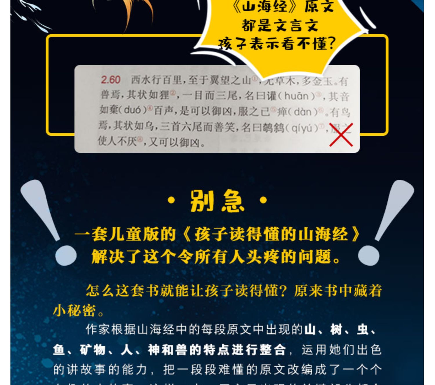 孩子读得懂的山海经全套3册正版原著儿童版故事书籍中国民间神话故事图书 青少年小学生阅读课外书必读二三四五年级8-16周岁少儿书