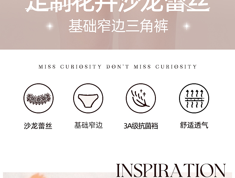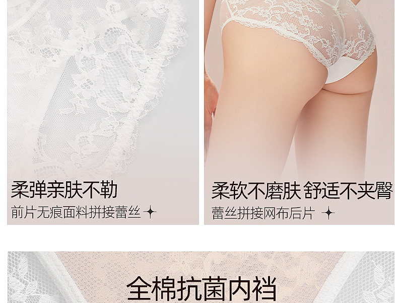 3条98元好奇蜜斯性感蕾丝内裤女士薄款低腰三角裤头纯棉裆新款-阿米娜、布瑞尔、凯蜜内裤