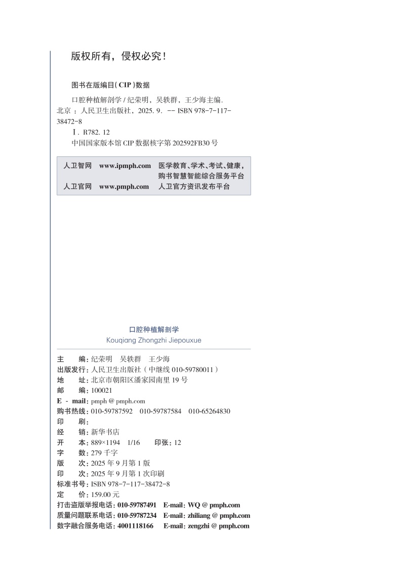 口腔种植解剖学 纪荣明 吴轶群 王少海 主编 内容均为口腔种植所需要的解剖结构 又配有正常人体结构的实物彩色图片人民卫生出版社