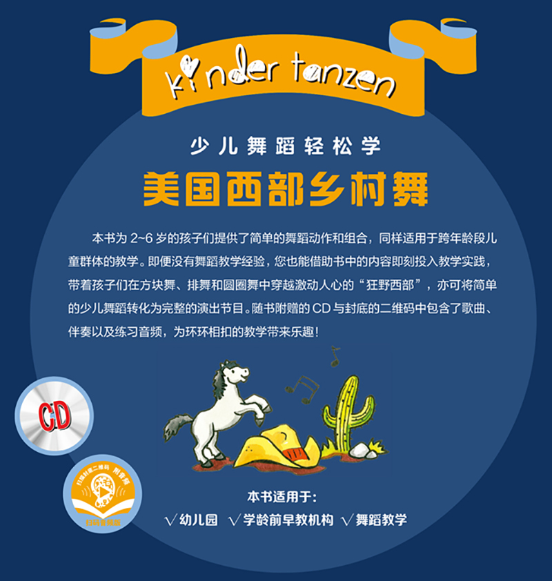 该丛书共分5册,本册为“美国西部乡村舞”,狂野的西部对孩子们有一种特殊的吸引力,西部音乐的开端正是起源于那些白天赶着牲口散步草原,晚上倚着营火在旷野中歌唱的牛仔们的描写。孩子们在跳这些舞时总是无比欢乐。