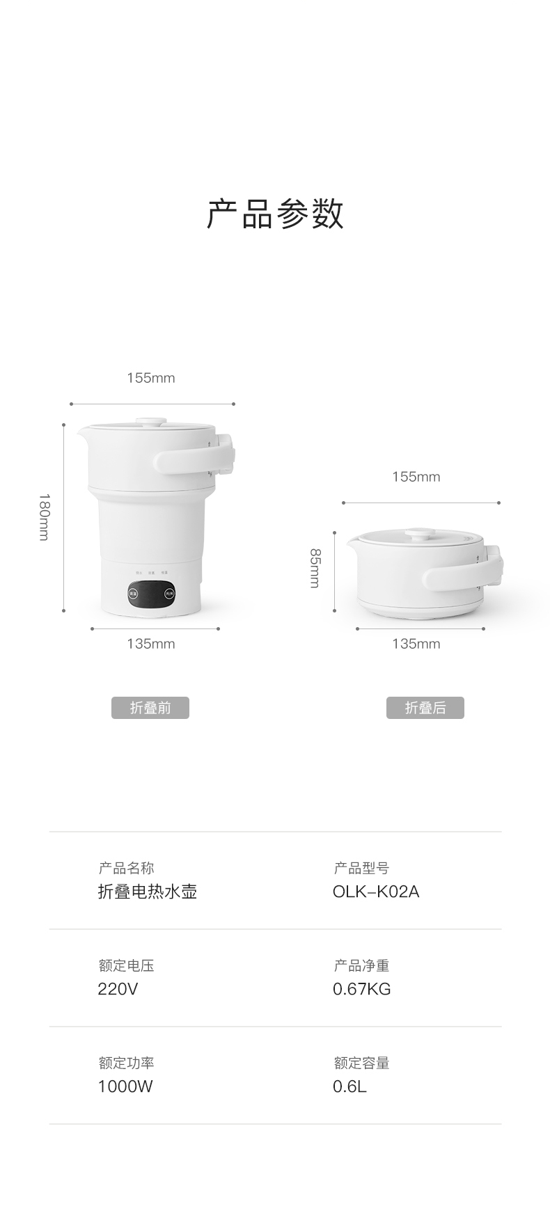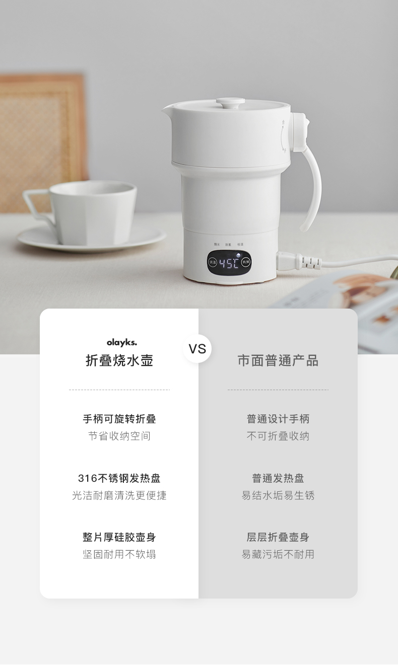 olayks折叠电热水壶家用烧水壶保温一体全自动迷你小型旅行便携式