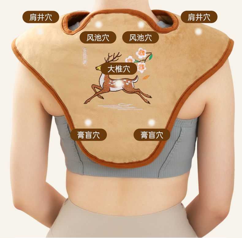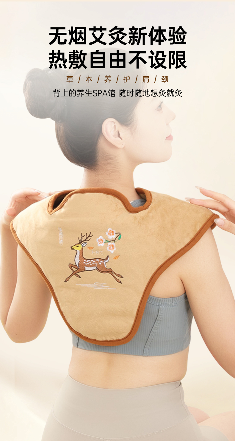 热敷披肩的设计理念源自传统草本云肩热灸法,遵循 “经脉通通,肩背轻松” 的养生之道,更从经典医籍《神灸经论》中汲取灵感。书中记载:“灸者,温暖经络宣通气血,使逆者得顺,滞者得行”,我们将这一古老智慧与现代科技巧妙结合,打造出这款贴合人体肩颈曲线的热敷披肩。