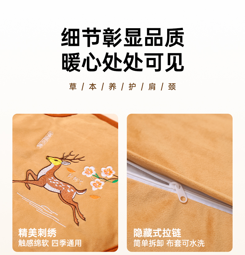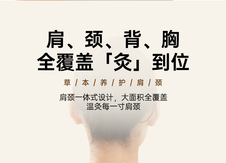 披肩采用肩颈一体式设计,打破传统热敷产品覆盖范围有限的局限,实现肩、颈、背、胸全覆盖,真正做到 “灸” 到位。