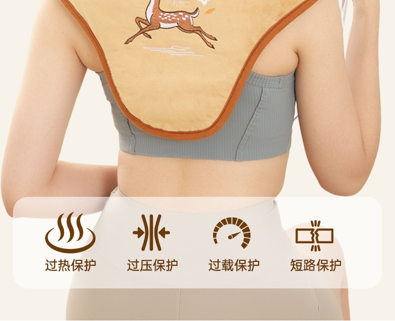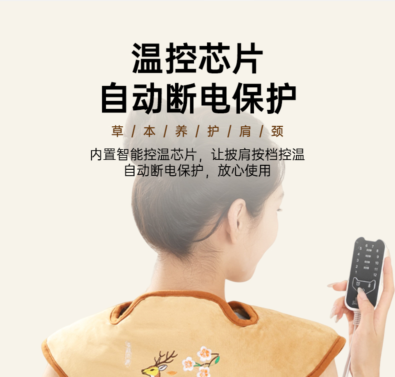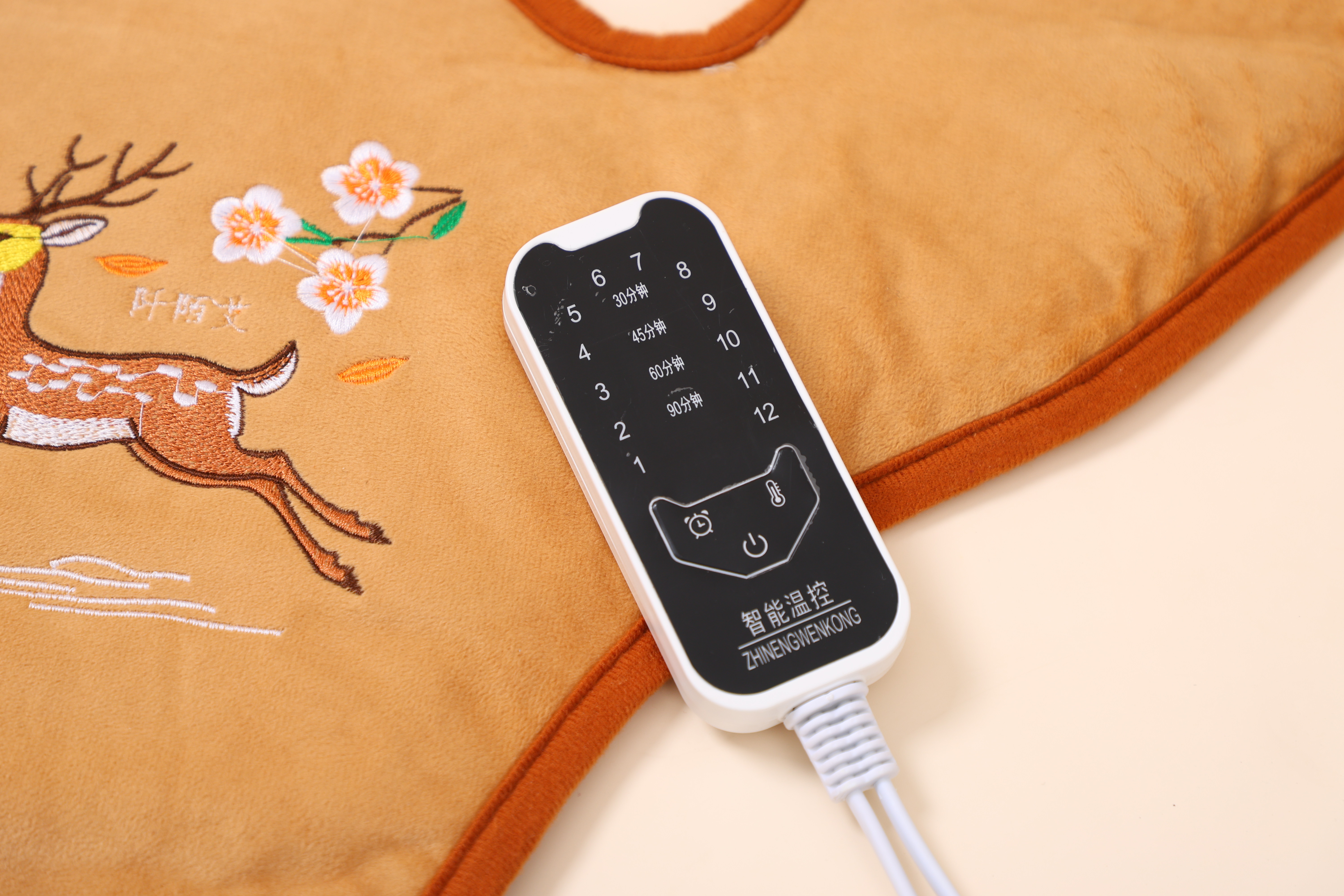 热敷披肩内置智能温控芯片,搭载自动断电保护功能。在使用过程中,芯片会实时监测披肩温度,当温度达到设定档位的上限或热敷时间结束时,将自动切断电源,有效避免因温度过高或忘记关闭电源而引发的安全隐患。