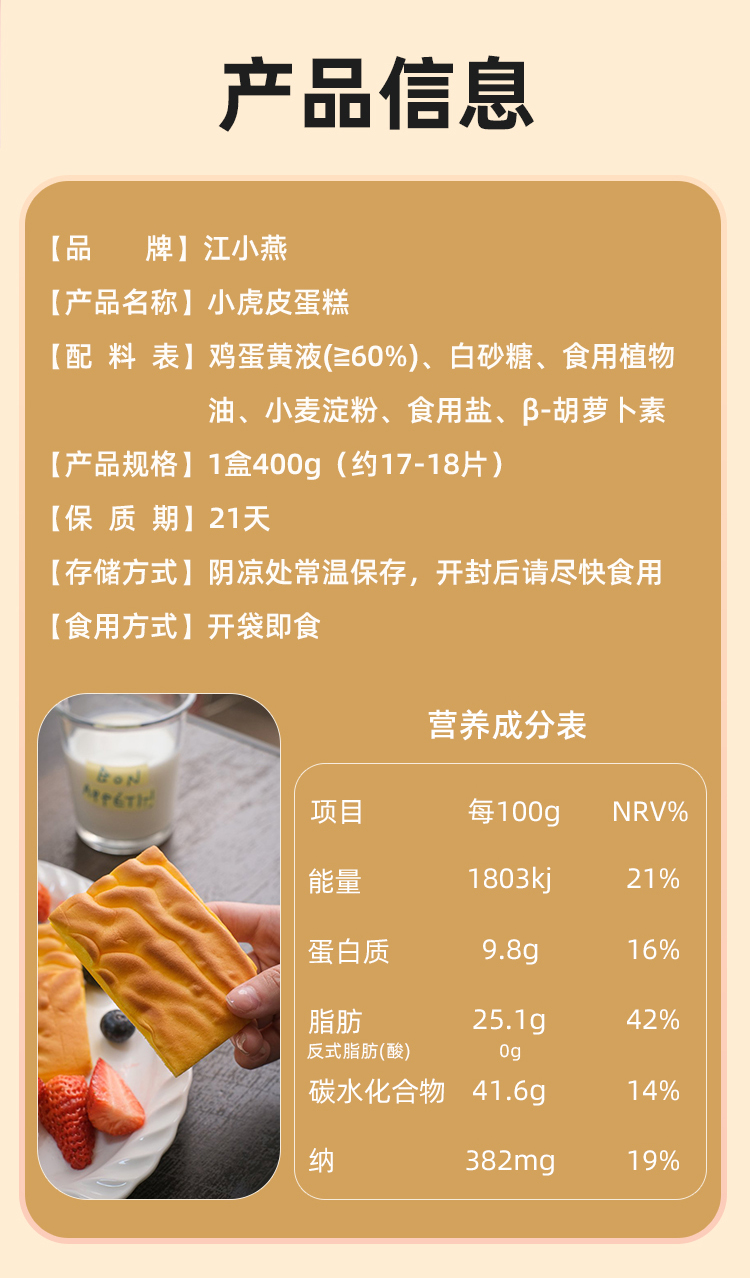 江小燕小虎皮蛋糕 新鲜短保 绵润松软口感 0反式脂肪 商品图3