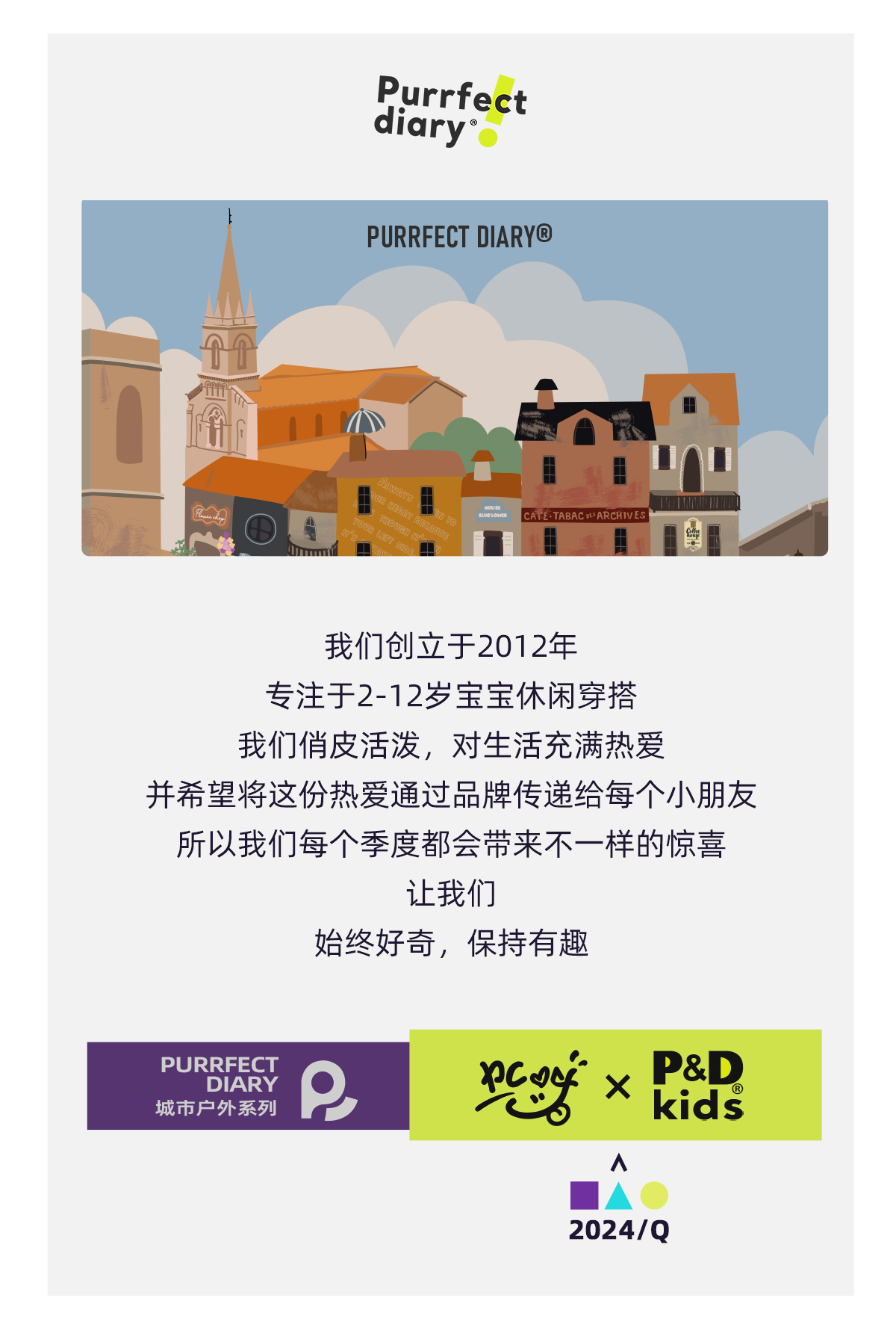 - Purrfect-Diary专注于贴近自然随性的穿着概念,轻奢平价的童装文化传播,在产品设计上更加注重婴童穿着的舒适性、安全性、更出众的国际化品牌,将欧美的育婴文化在中国进行深入的传播与推广。