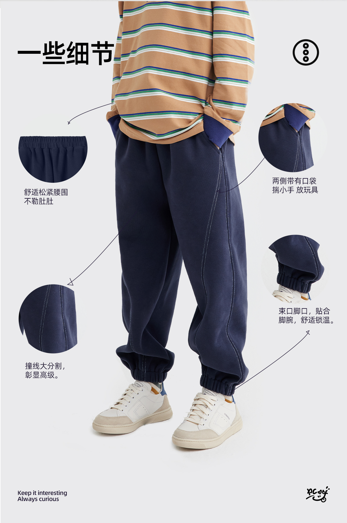 【大麦空气棉 280高克重】儿童明线设计休闲卫裤 PQK2426