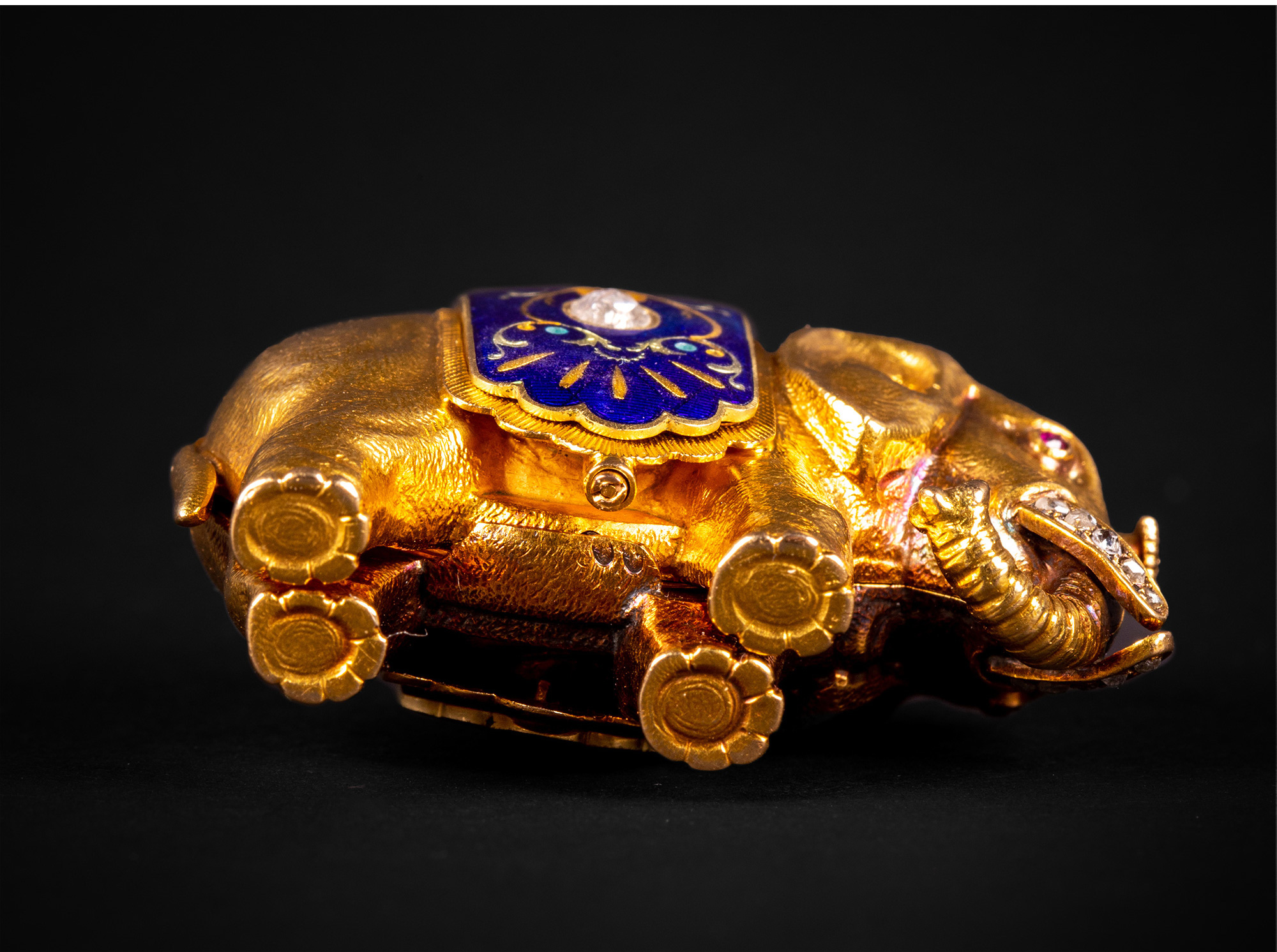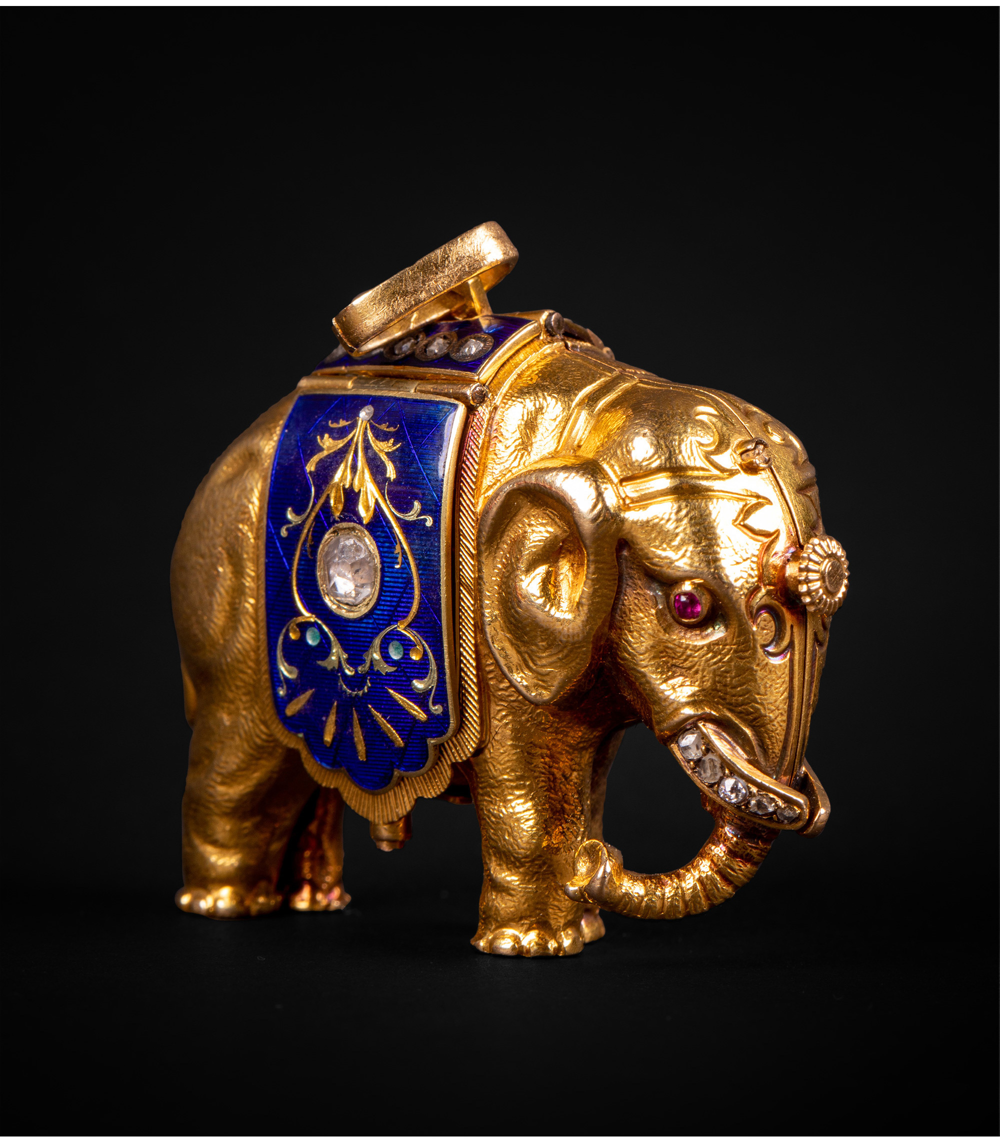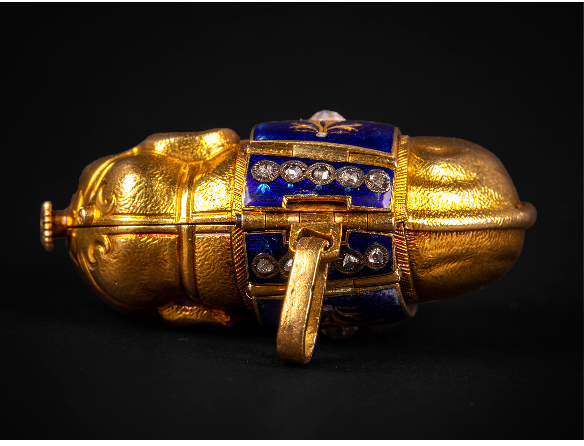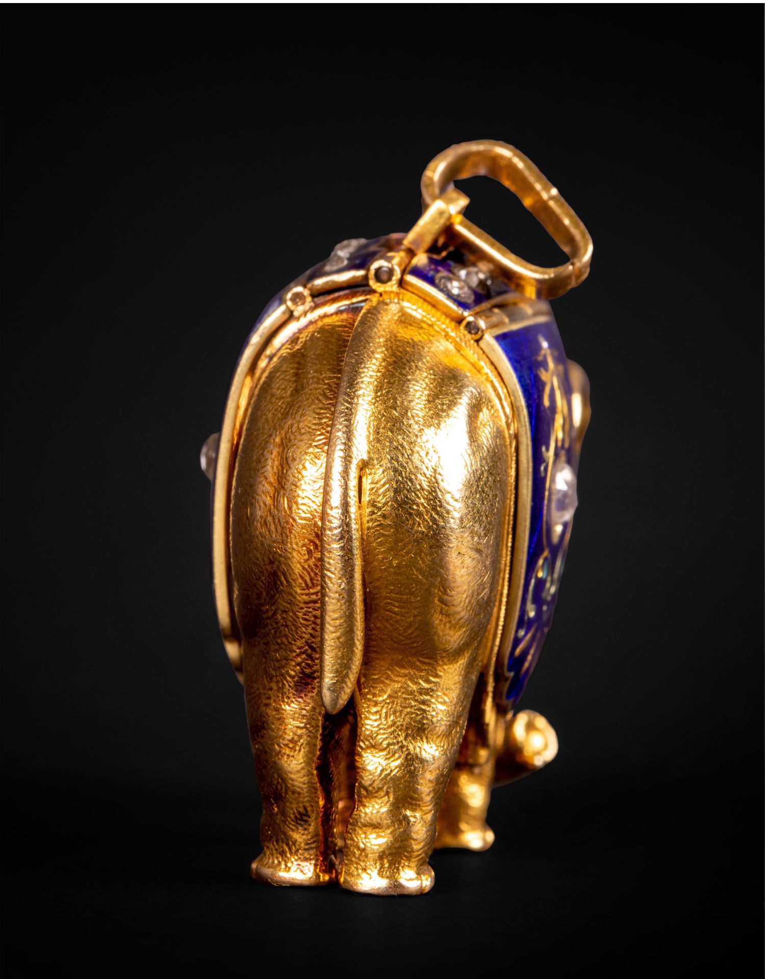 独角鹿西洋古董钟表瑞士珐琅饰黄金镶嵌钻石大象造型吊坠式怀表