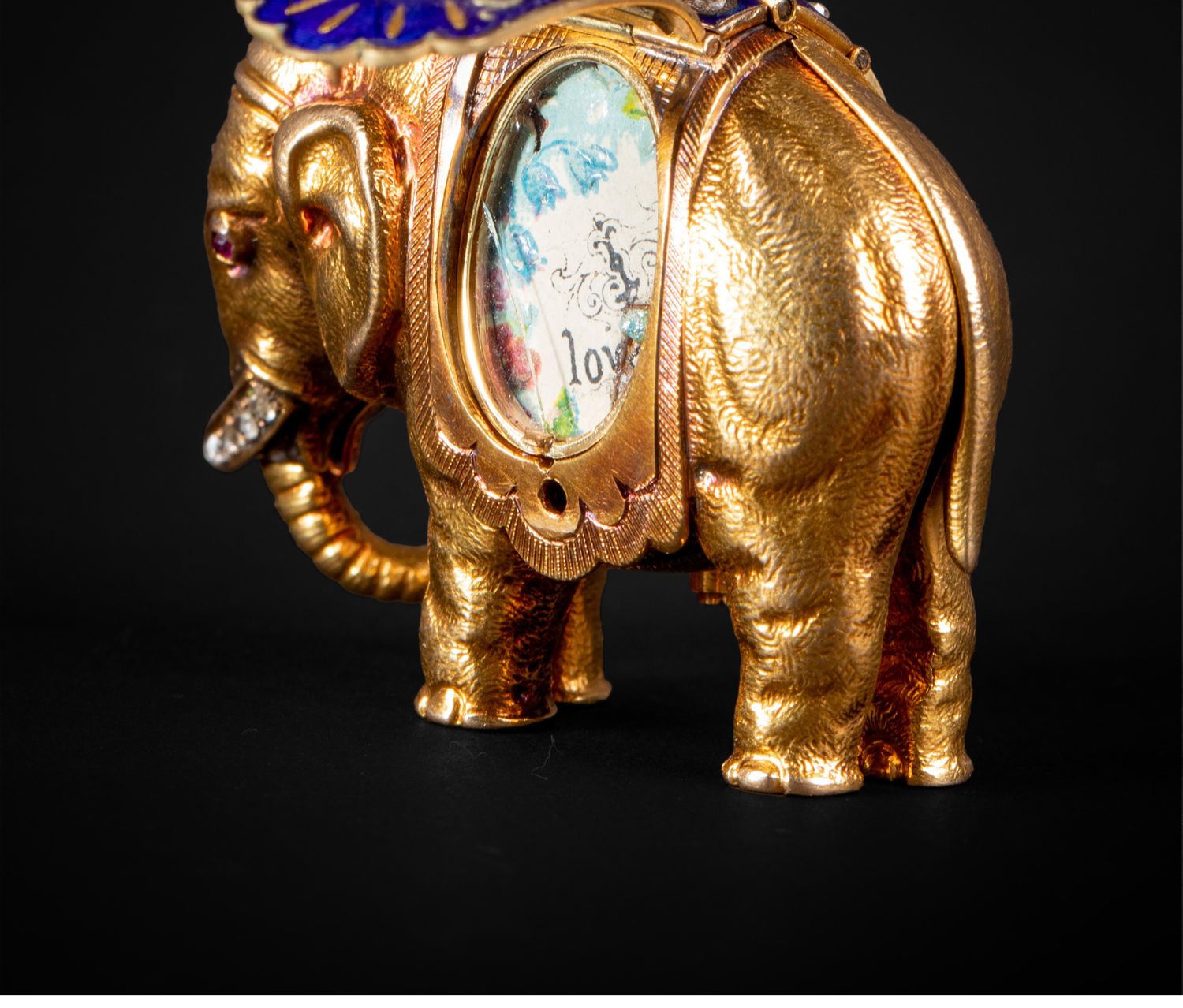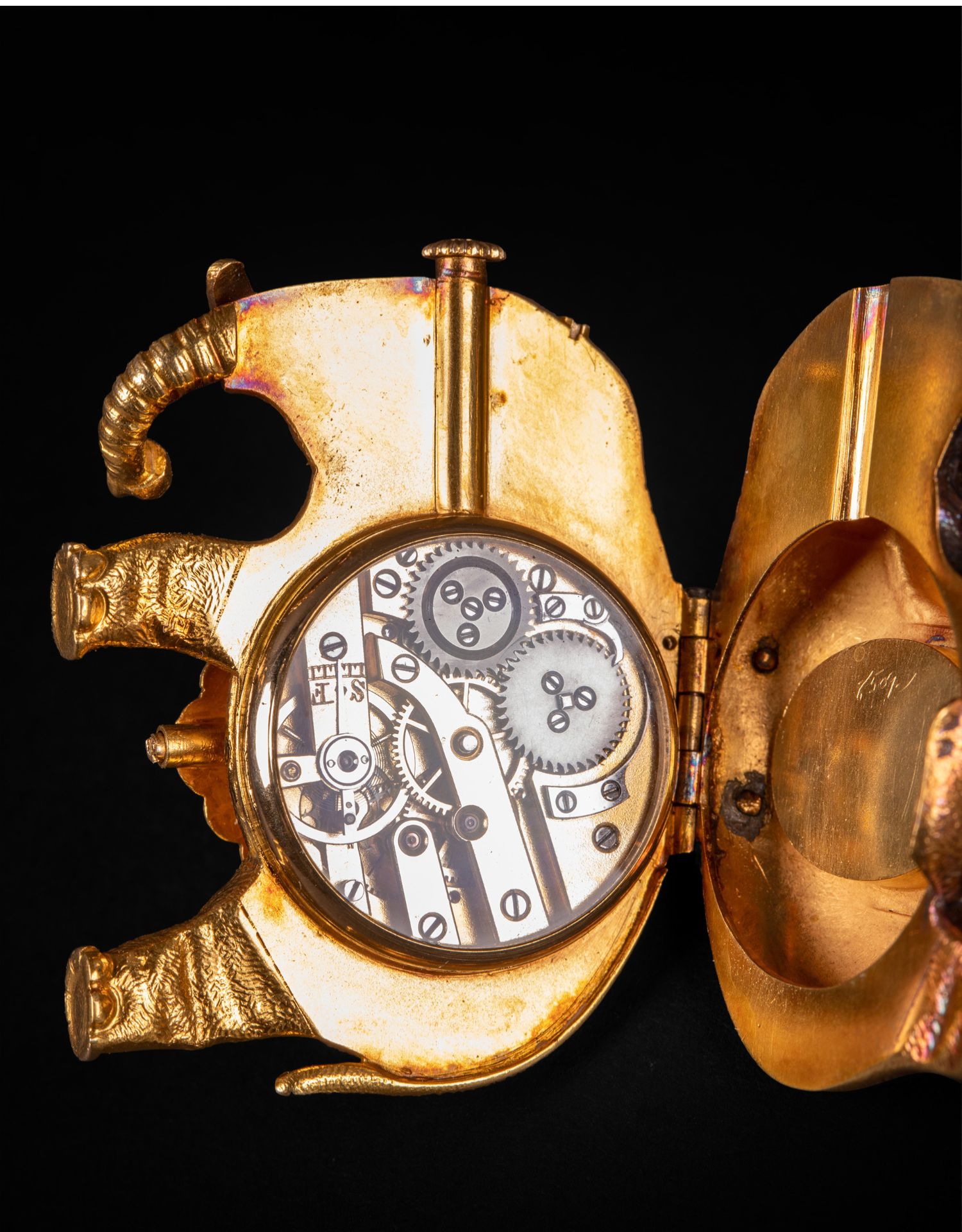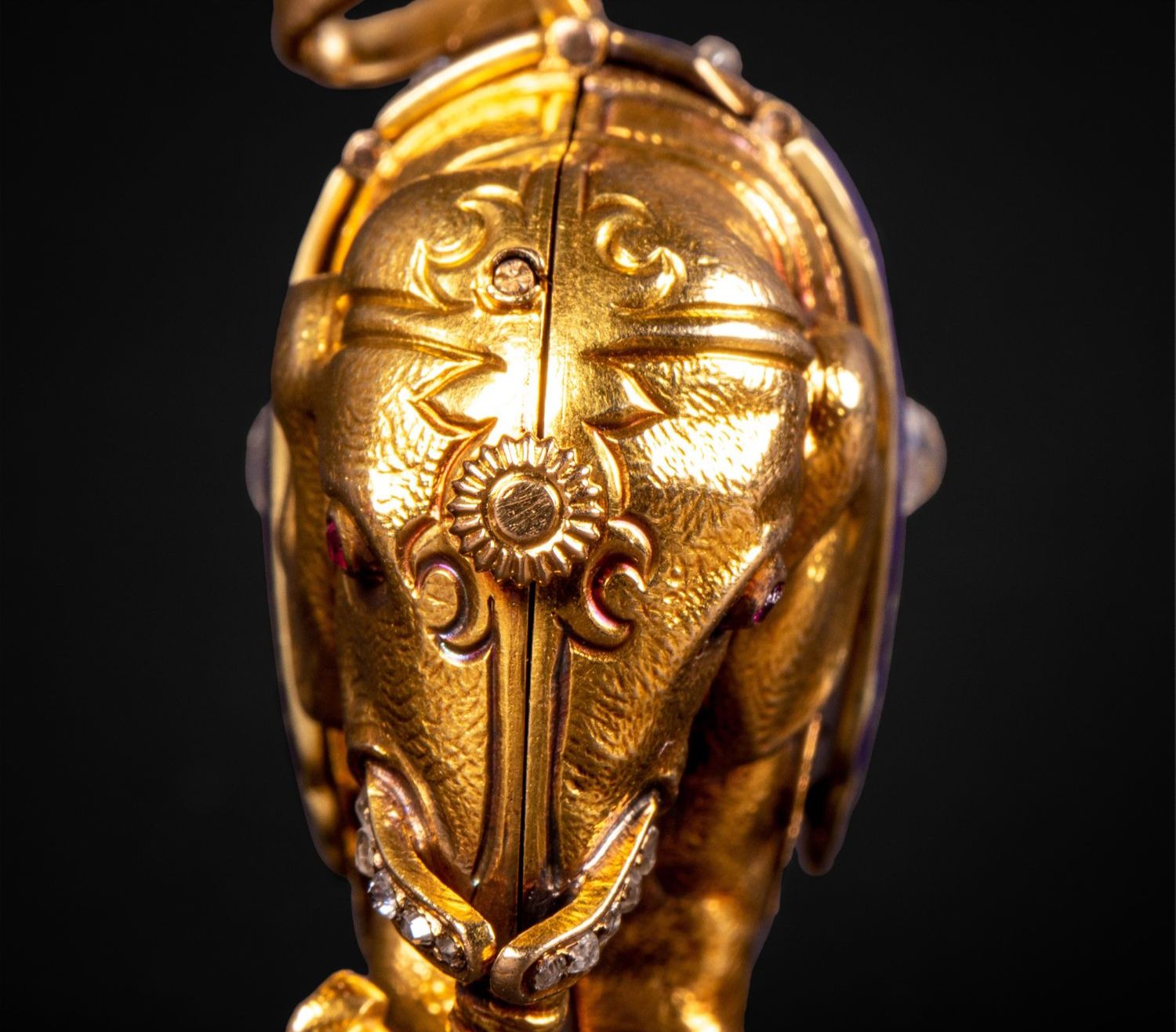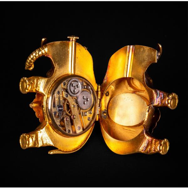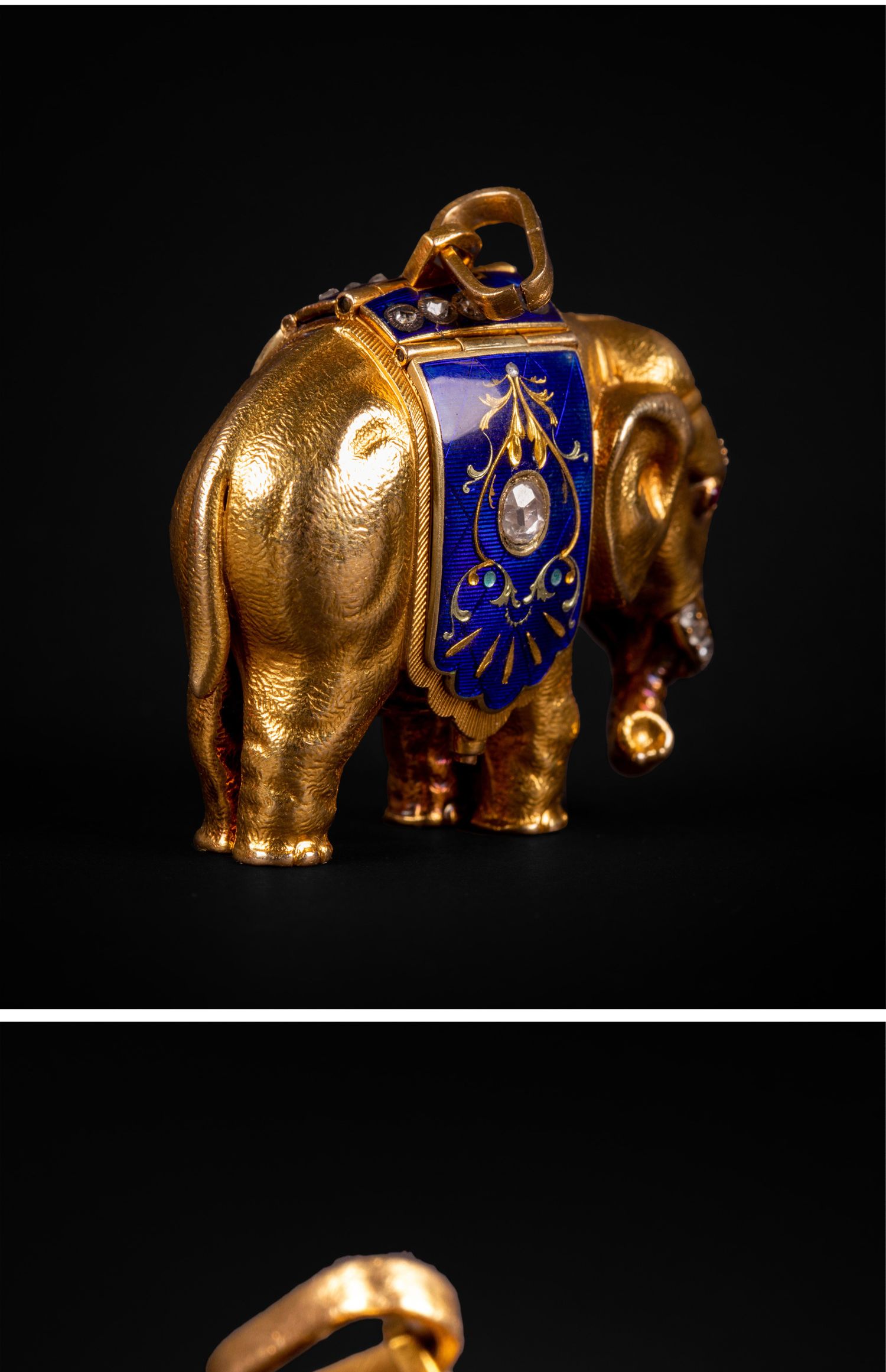 独角鹿西洋古董钟表瑞士珐琅饰黄金镶嵌钻石大象造型吊坠式怀表