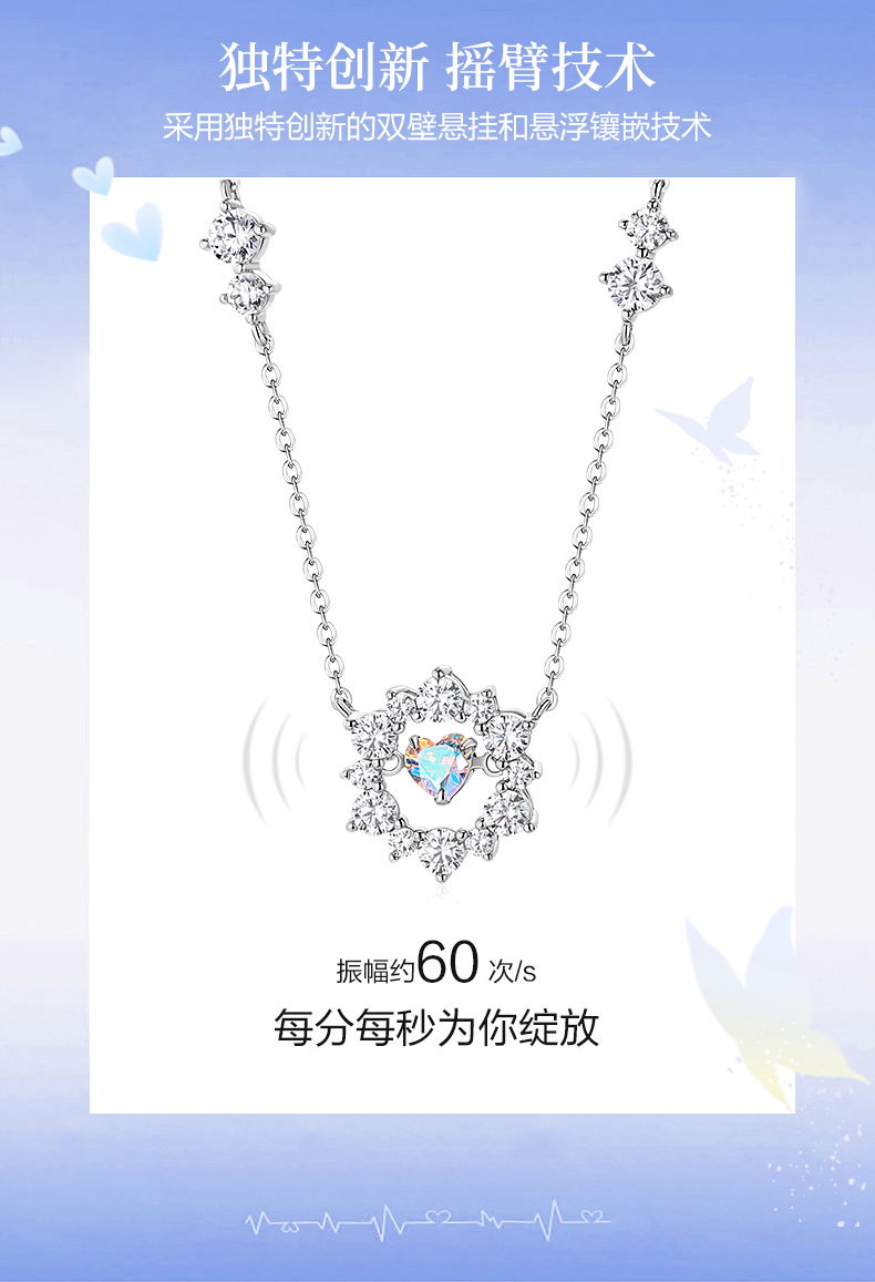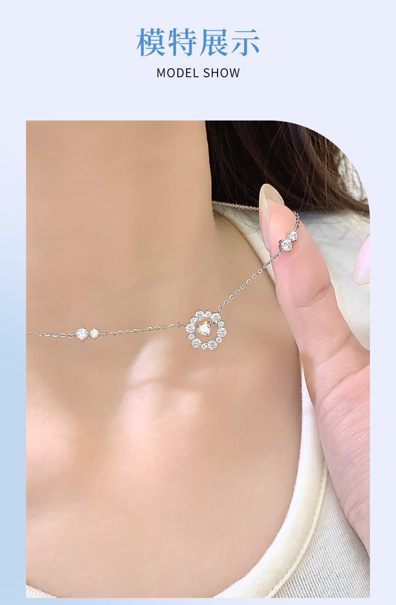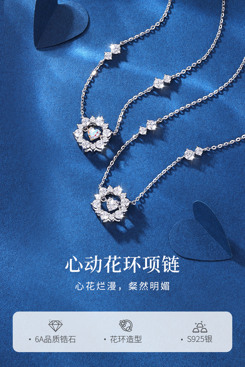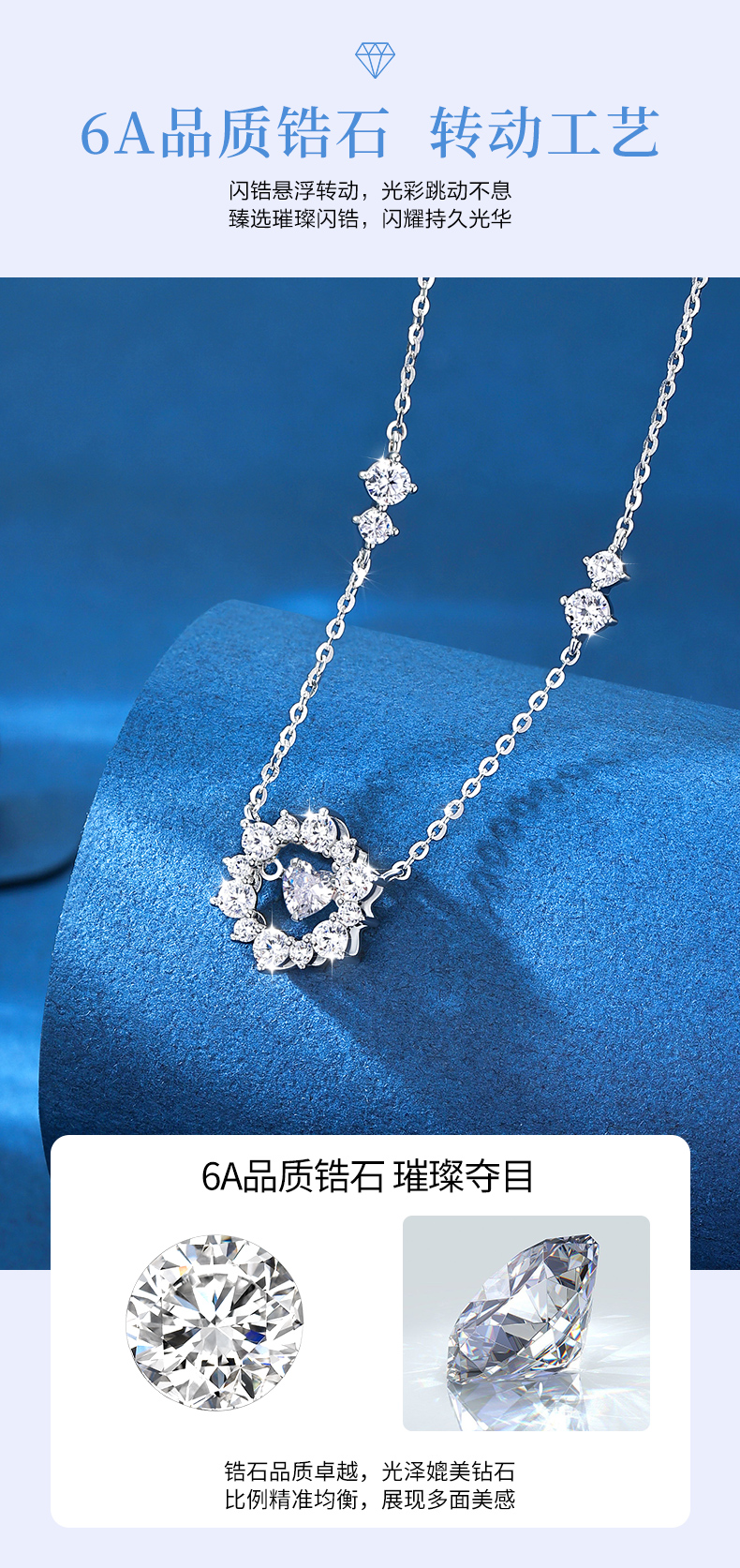 卡蒂罗/KADER 心动花环项链 满钻镶嵌大颗爱心锆石闪耀吸睛百搭小众可调节锁骨链 甜美爱心无尽浪漫吊坠