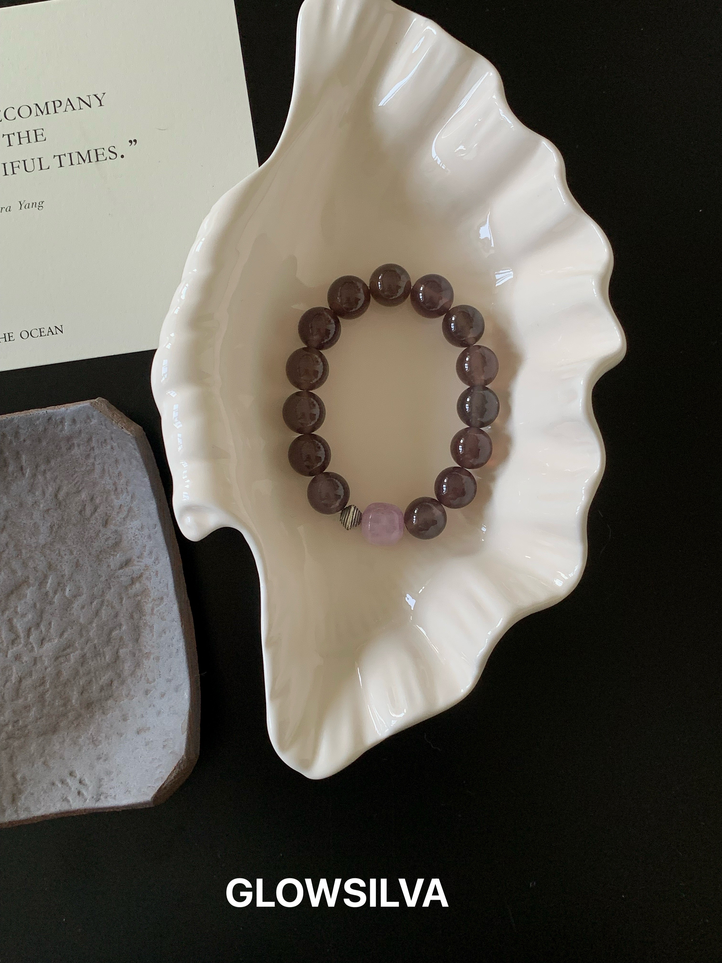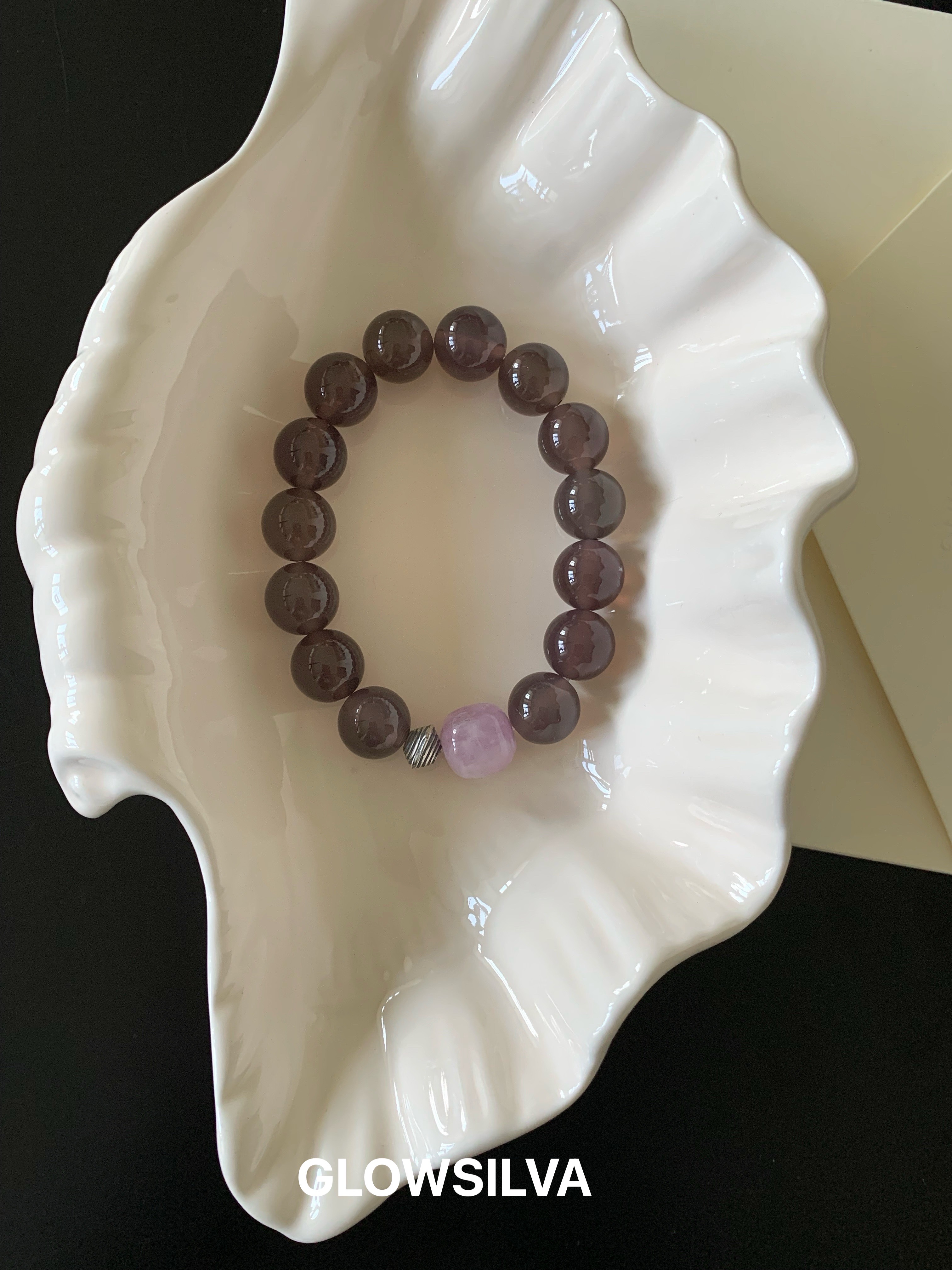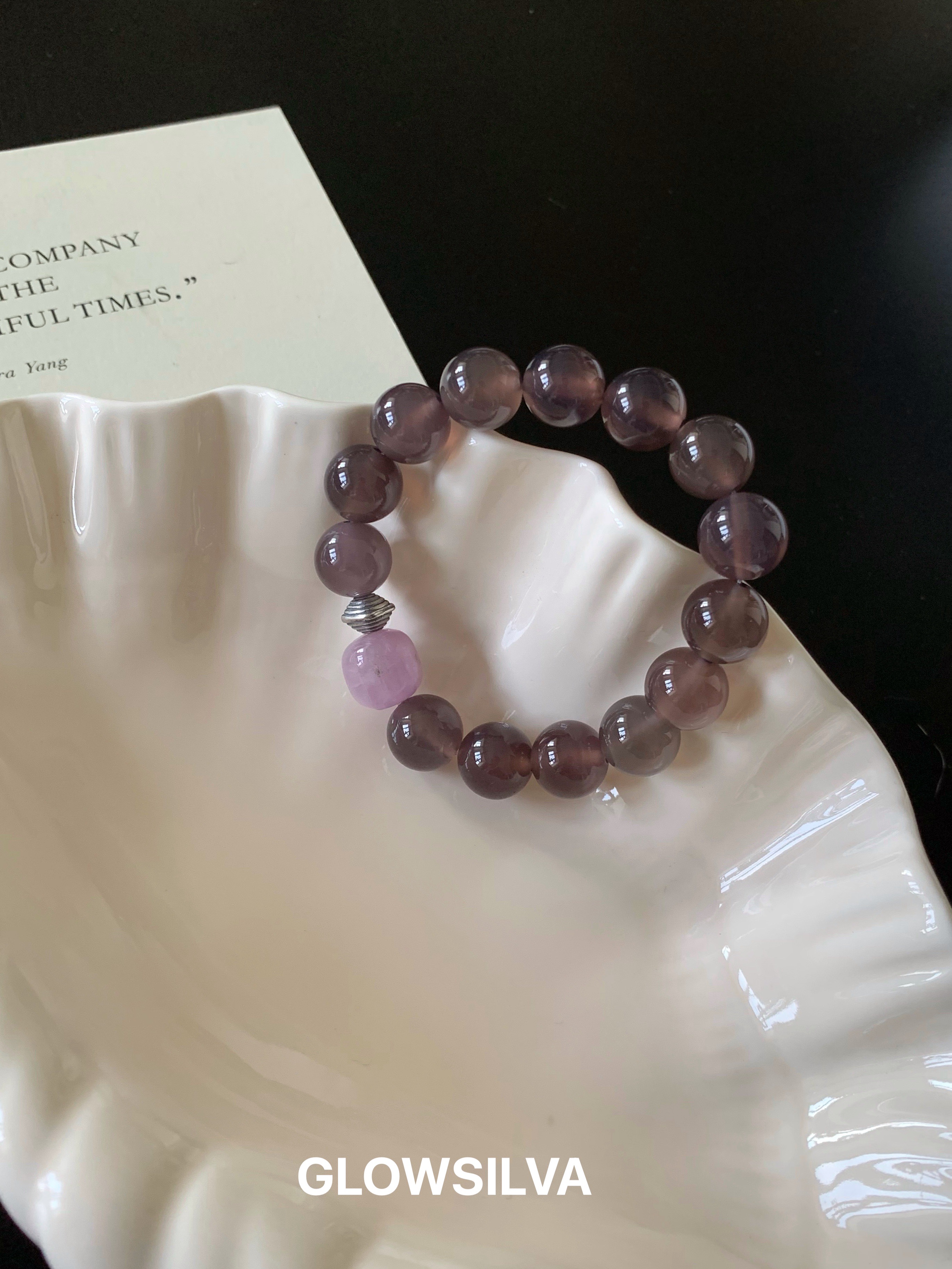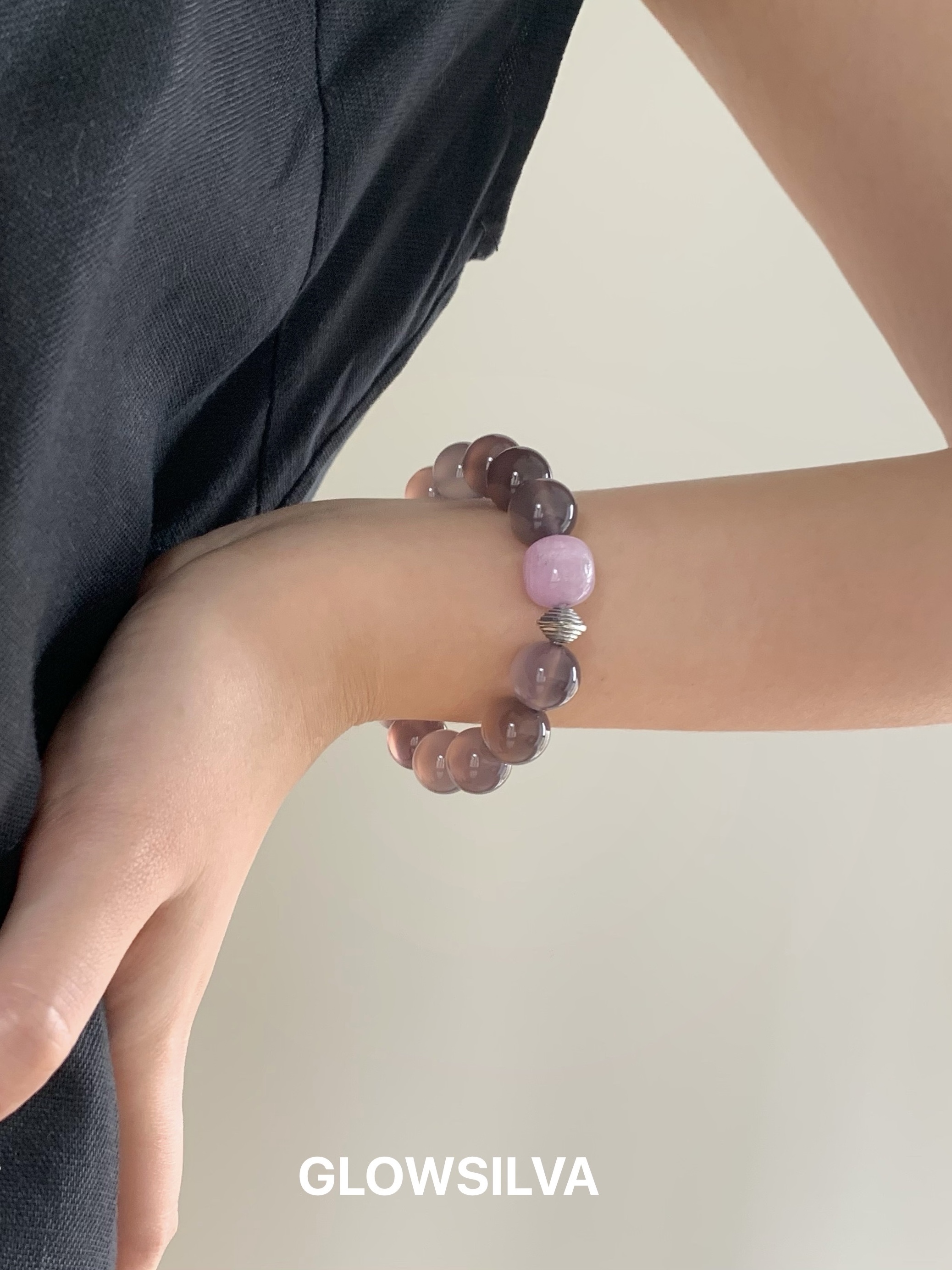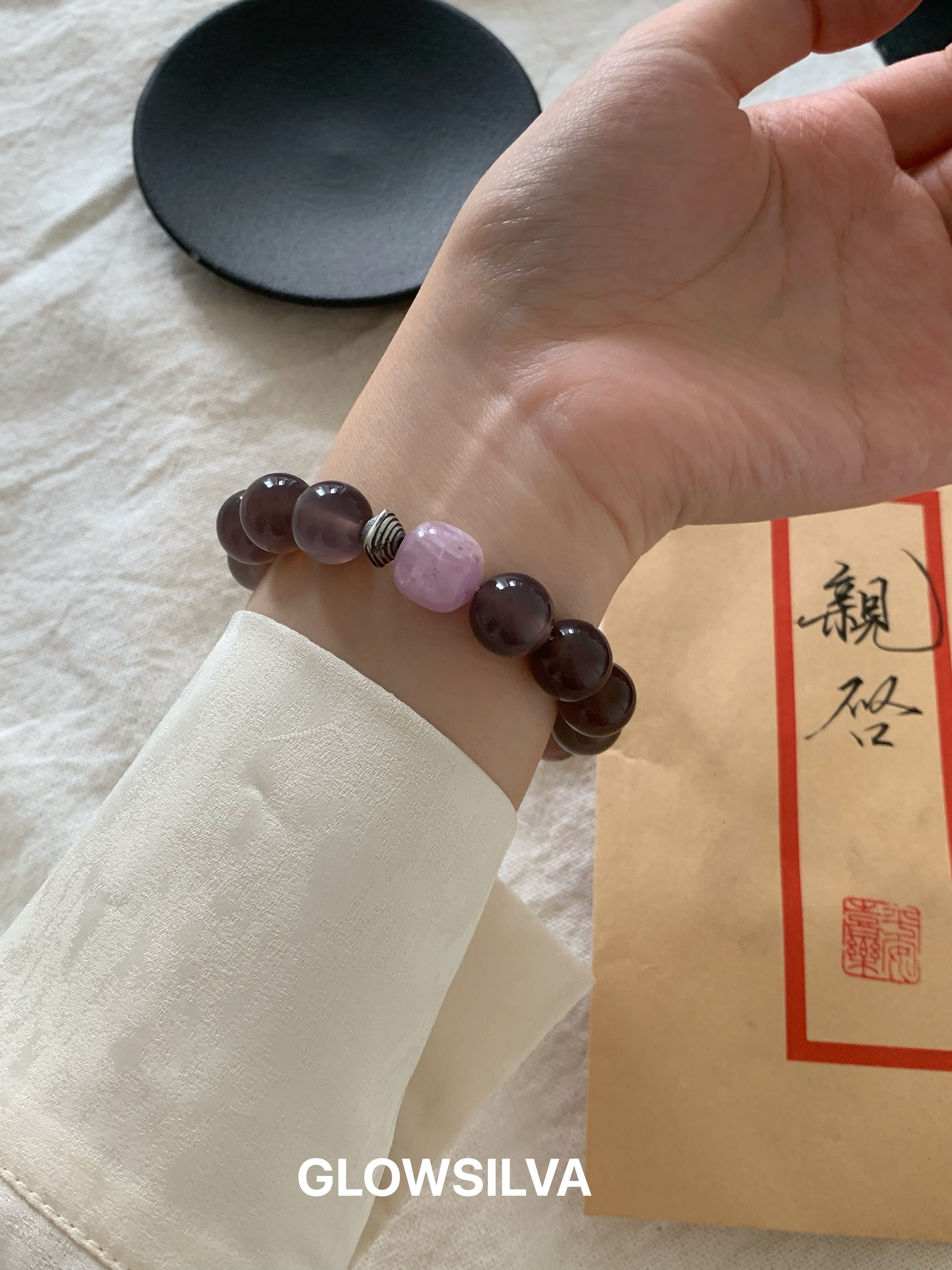 主色调是高级中性的烟紫色 搭配一颗浅紫的紫锂辉与厚重的手工泰银 中式中又带着一股梦幻浪漫 浓郁与仙气的紫相结合 很有层次感