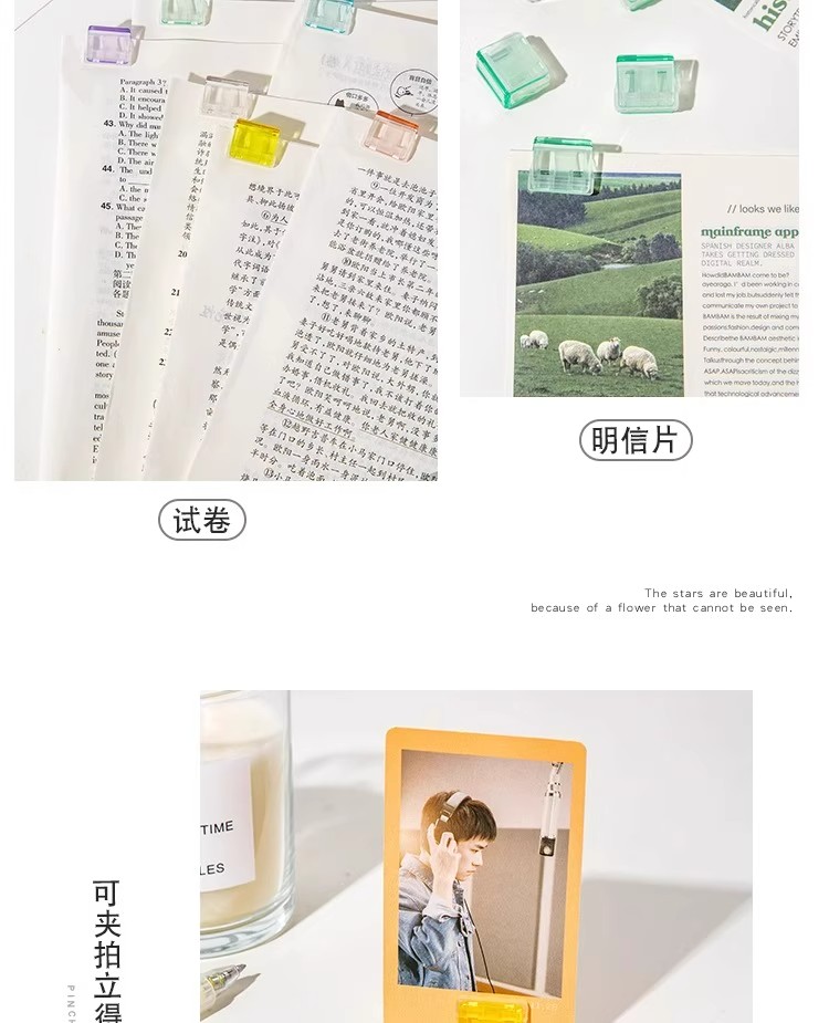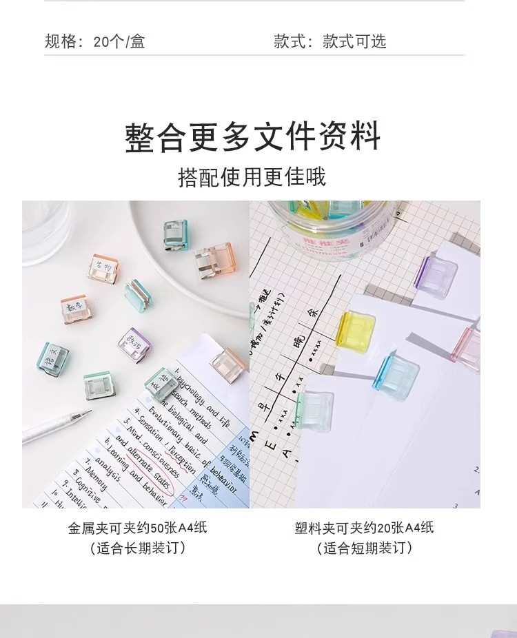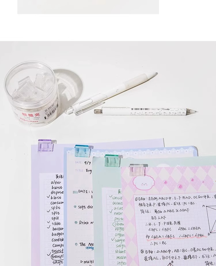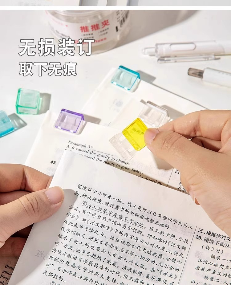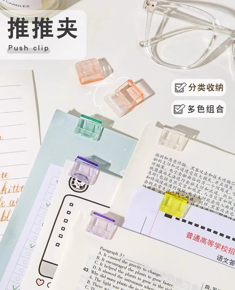 开学季福利!【可重复使用 随机50个】糖果透明推推夹防卷试卷固定器收纳推拉彩色夹子a4活页纸夹推夹器