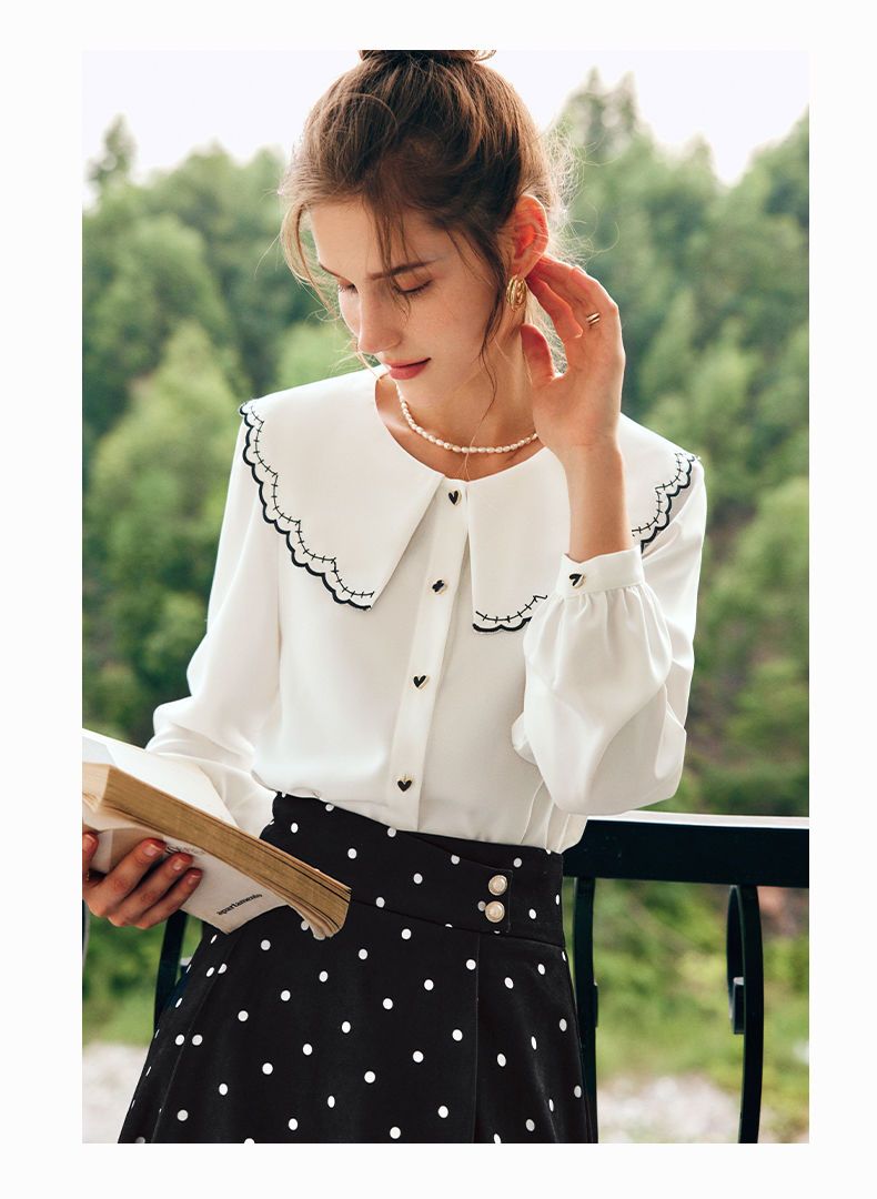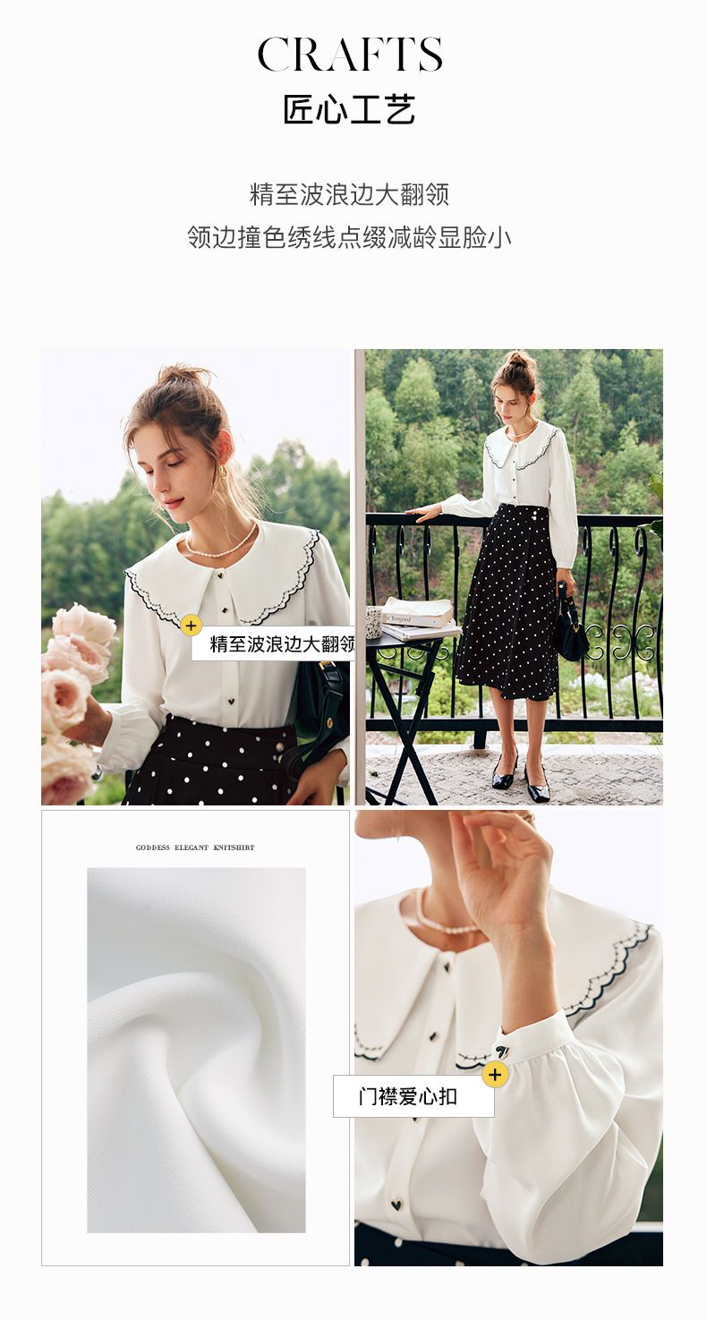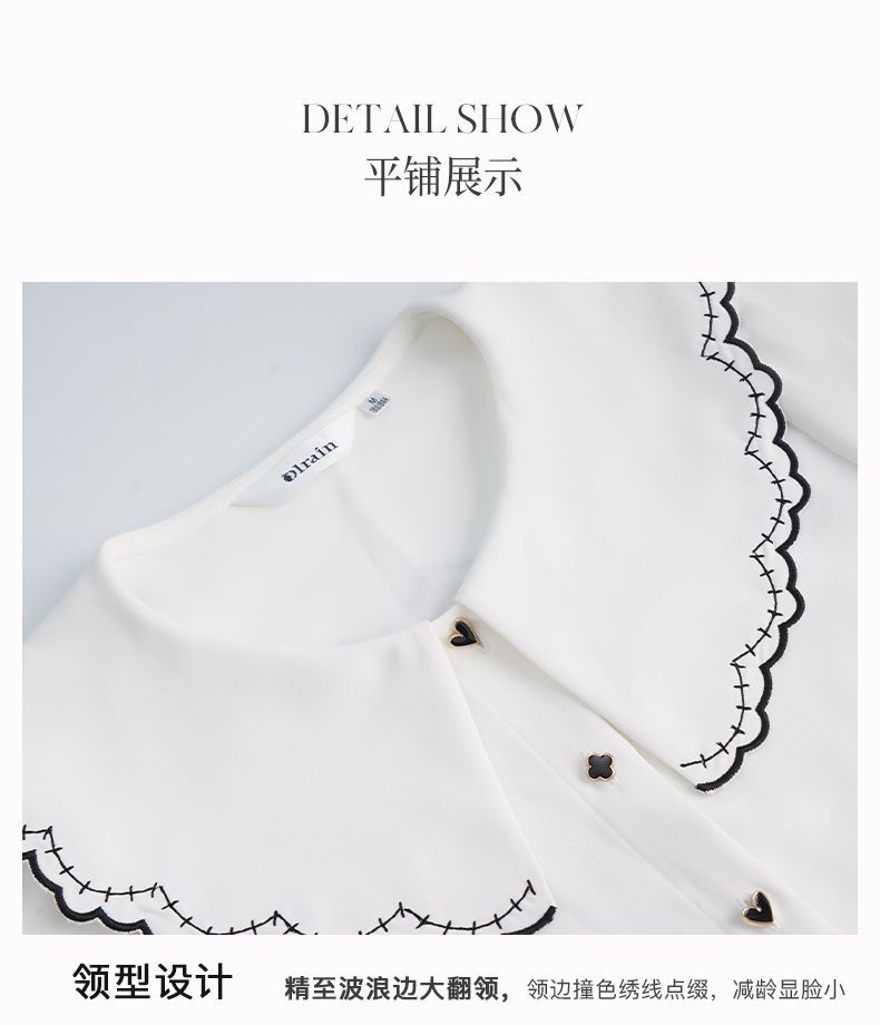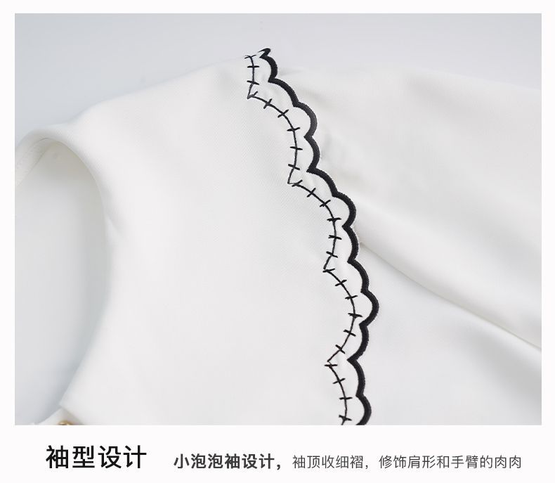 Olrain欧芮儿娃娃领白色上衣女2022年秋季新款短袖法式雪纺衫女