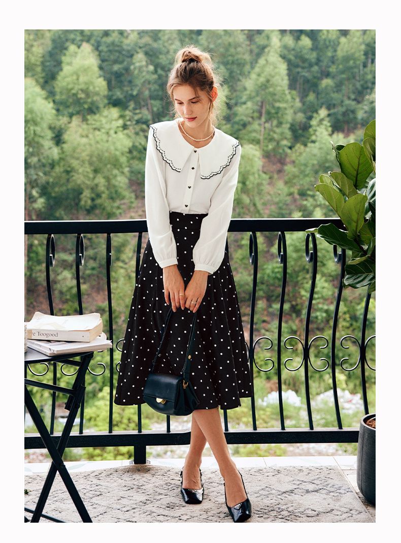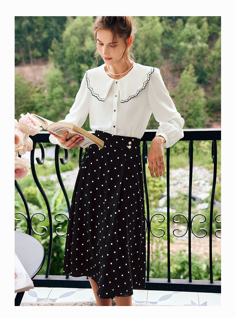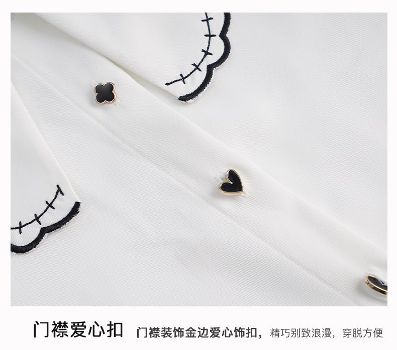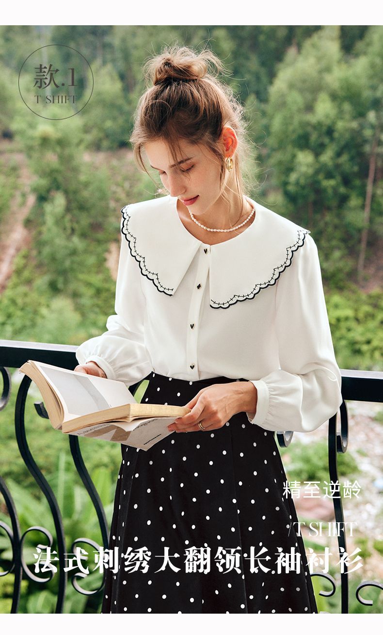 Olrain欧芮儿娃娃领白色上衣女2022年秋季新款短袖法式雪纺衫女
