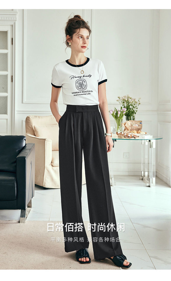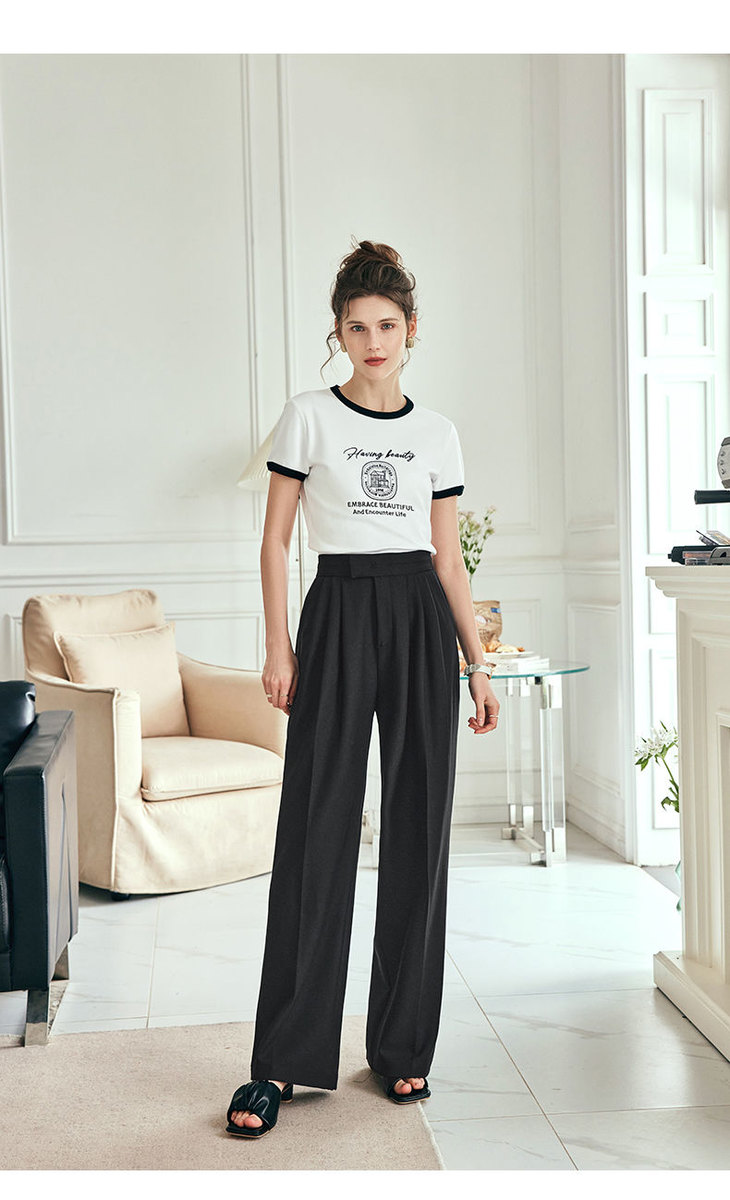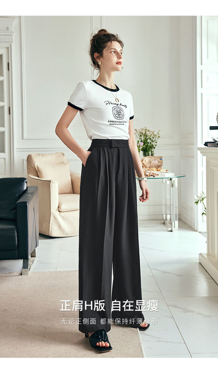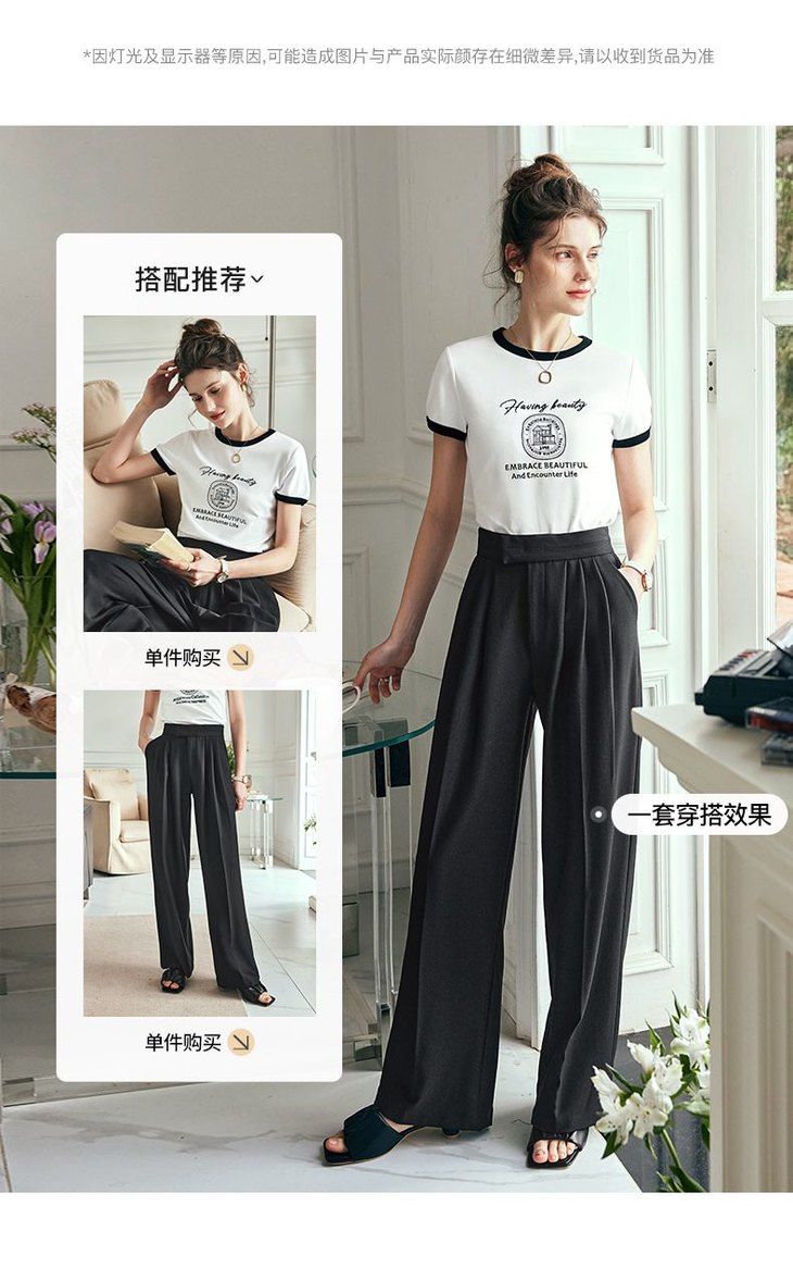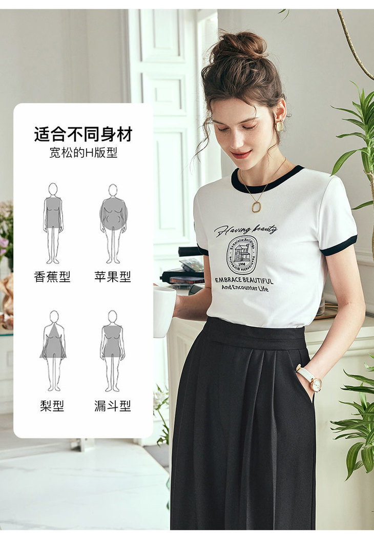 OLrain欧芮儿法式短袖T恤女夏季2023年新款黑白撞色刺绣别致上衣