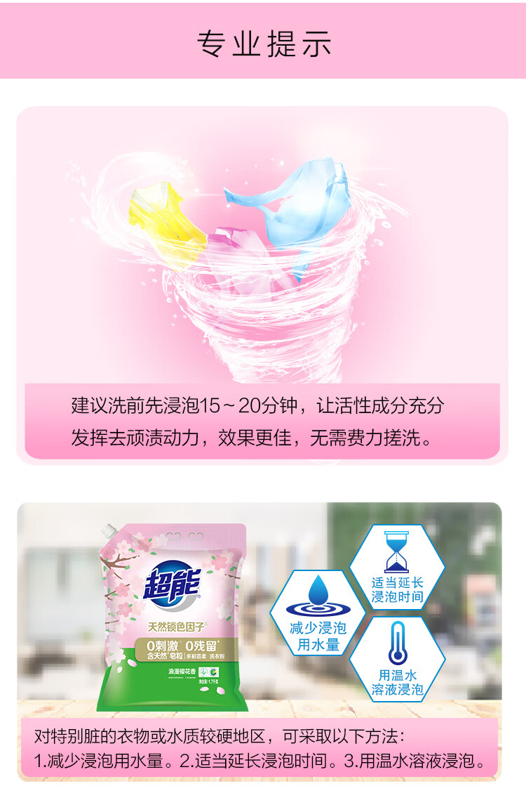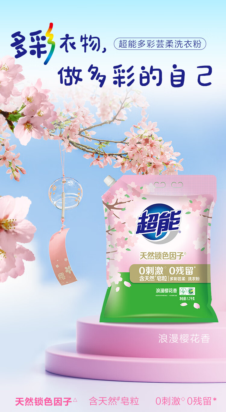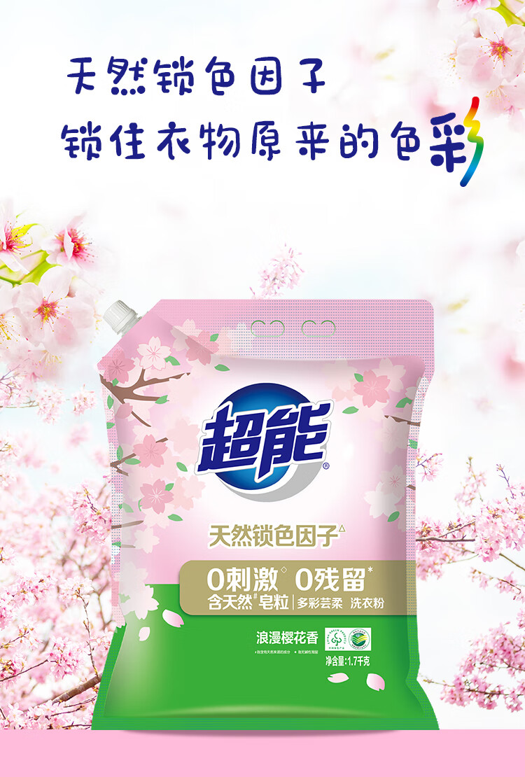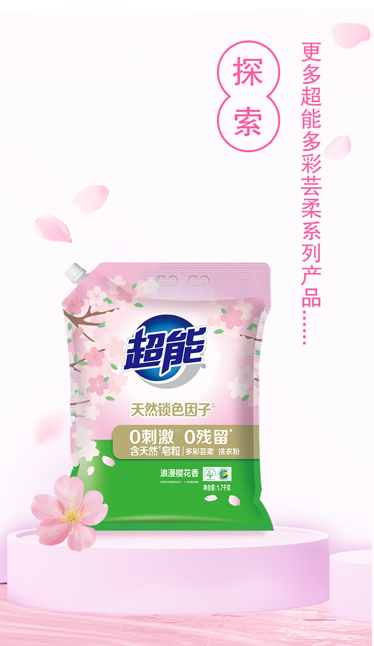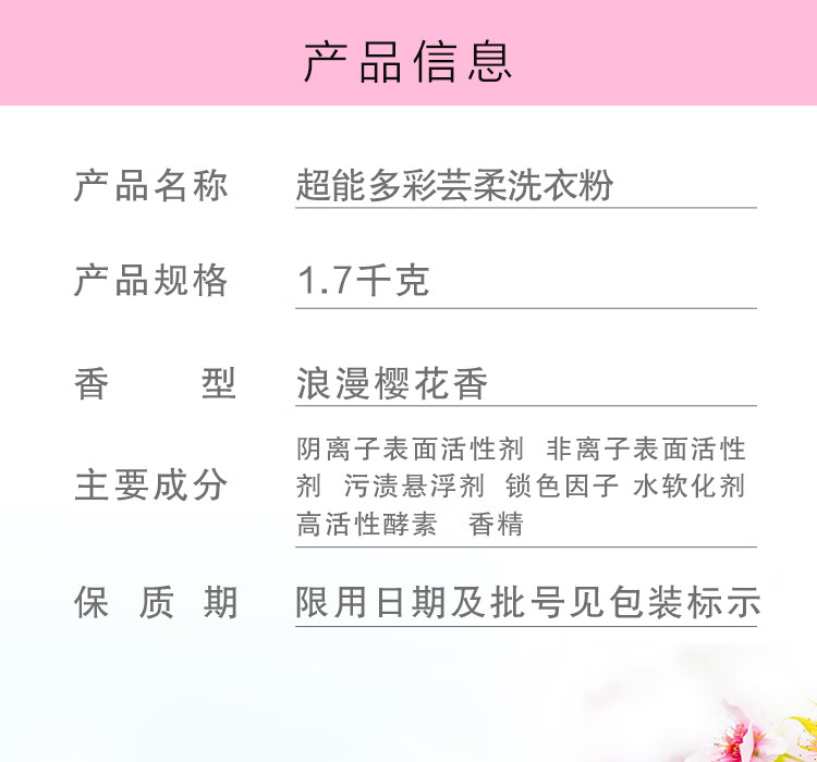 超能多彩芸柔洗衣粉浪漫樱花香1.7kg