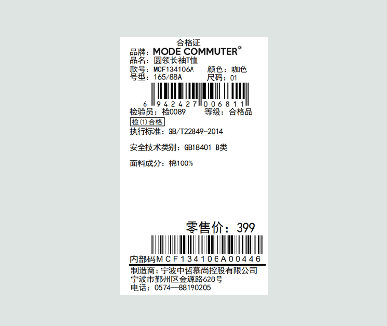 MODE COMMUTER | MC春季100%优质棉纱精纺圆领短袖T恤MCF134106A