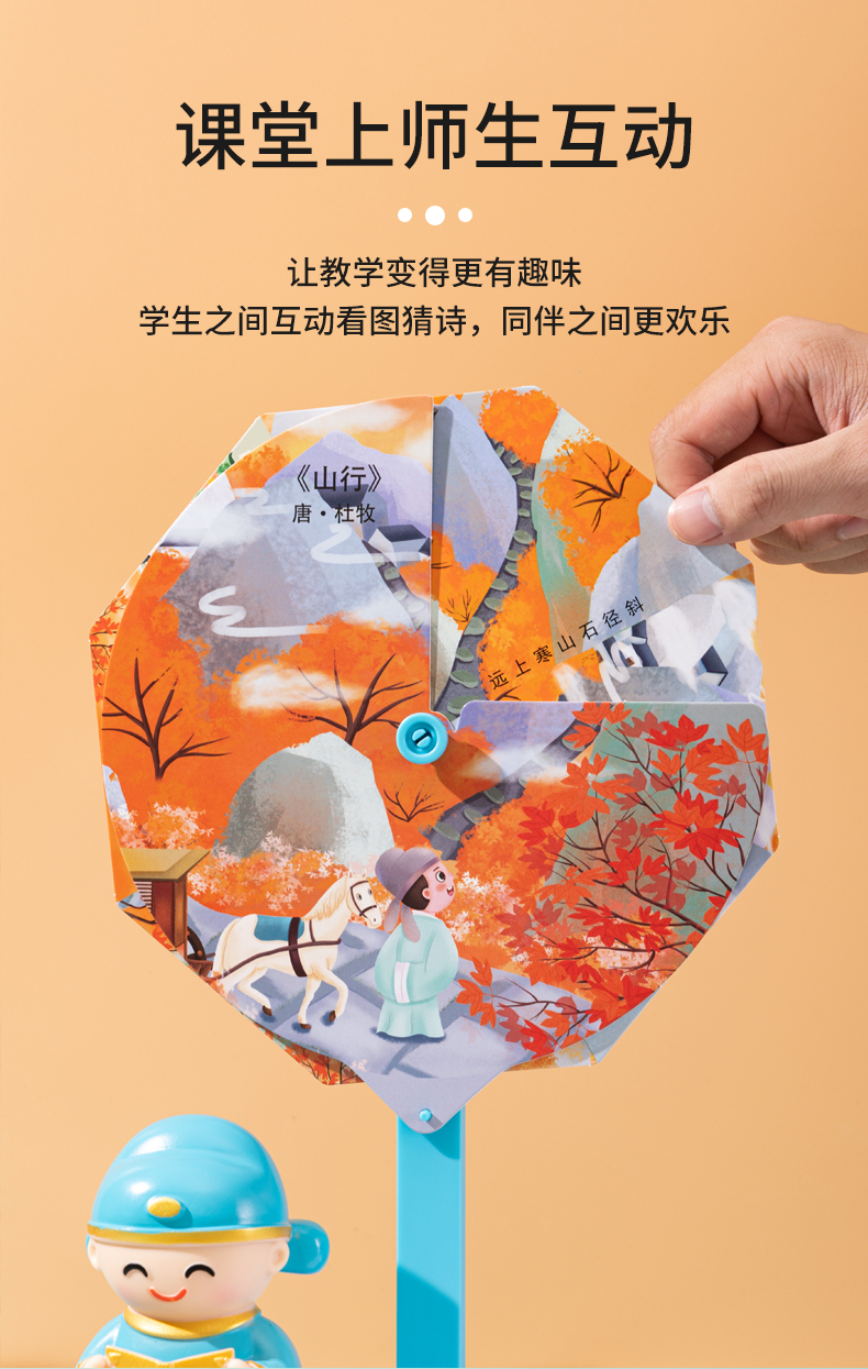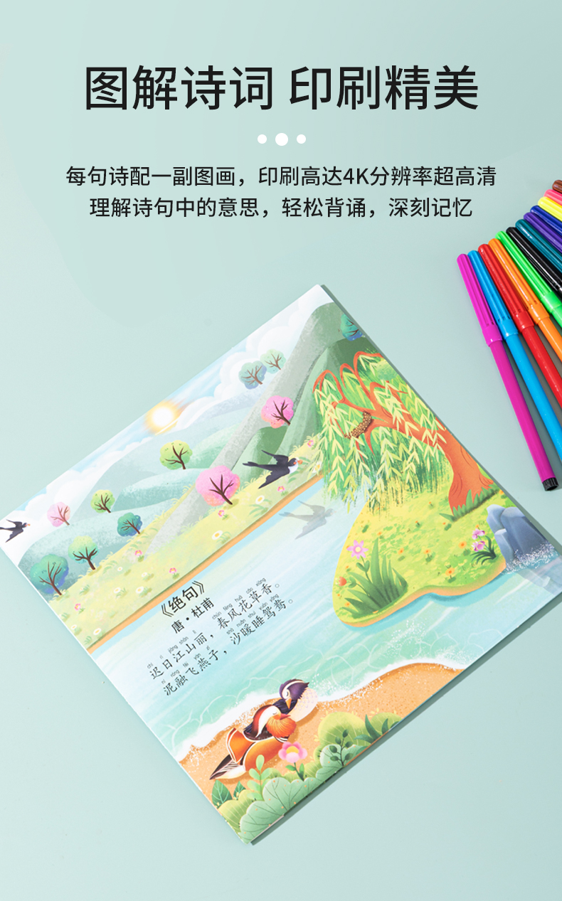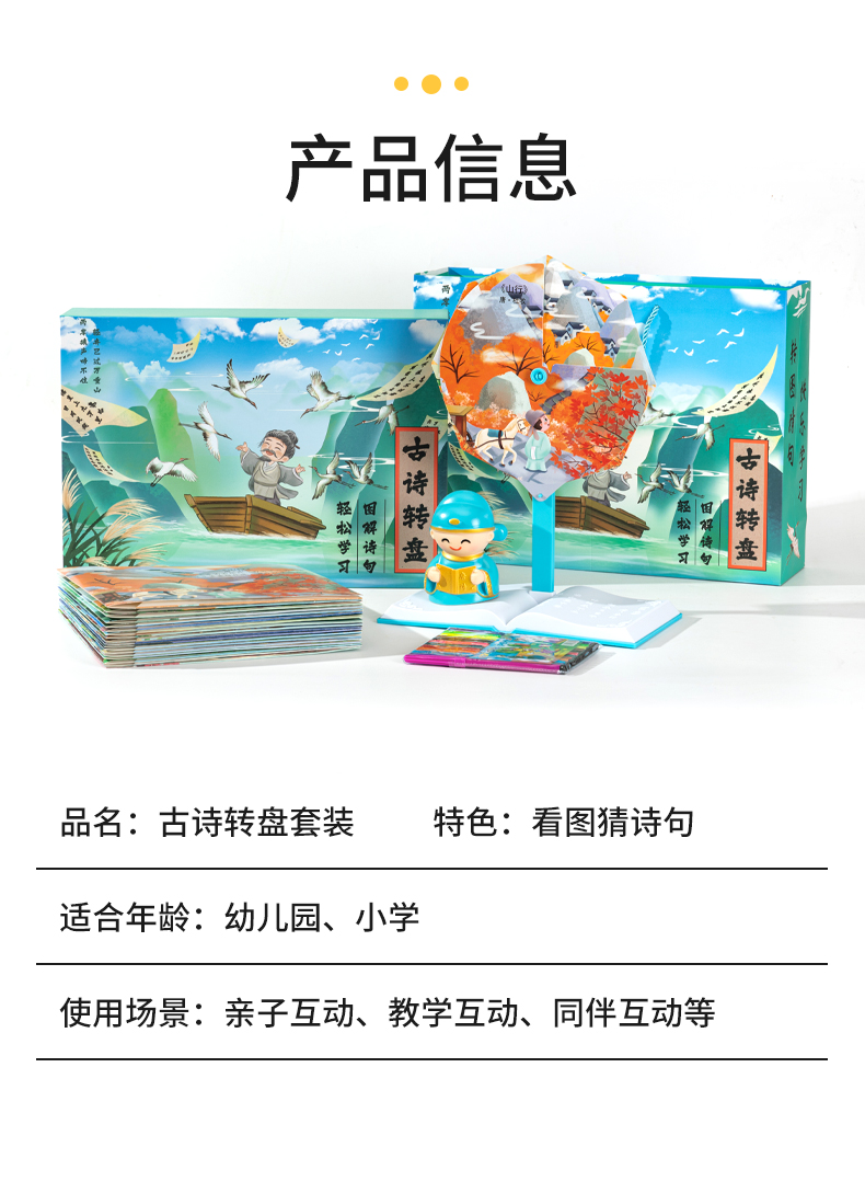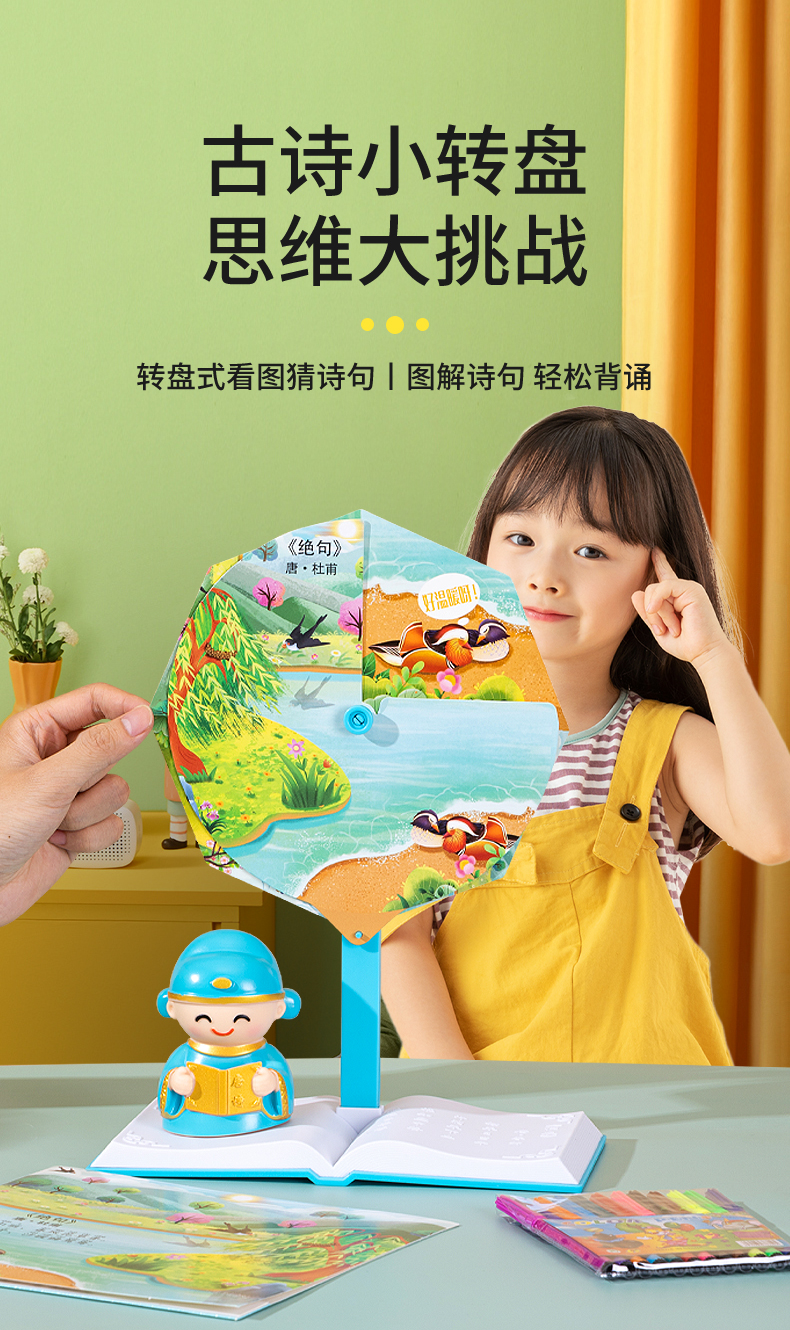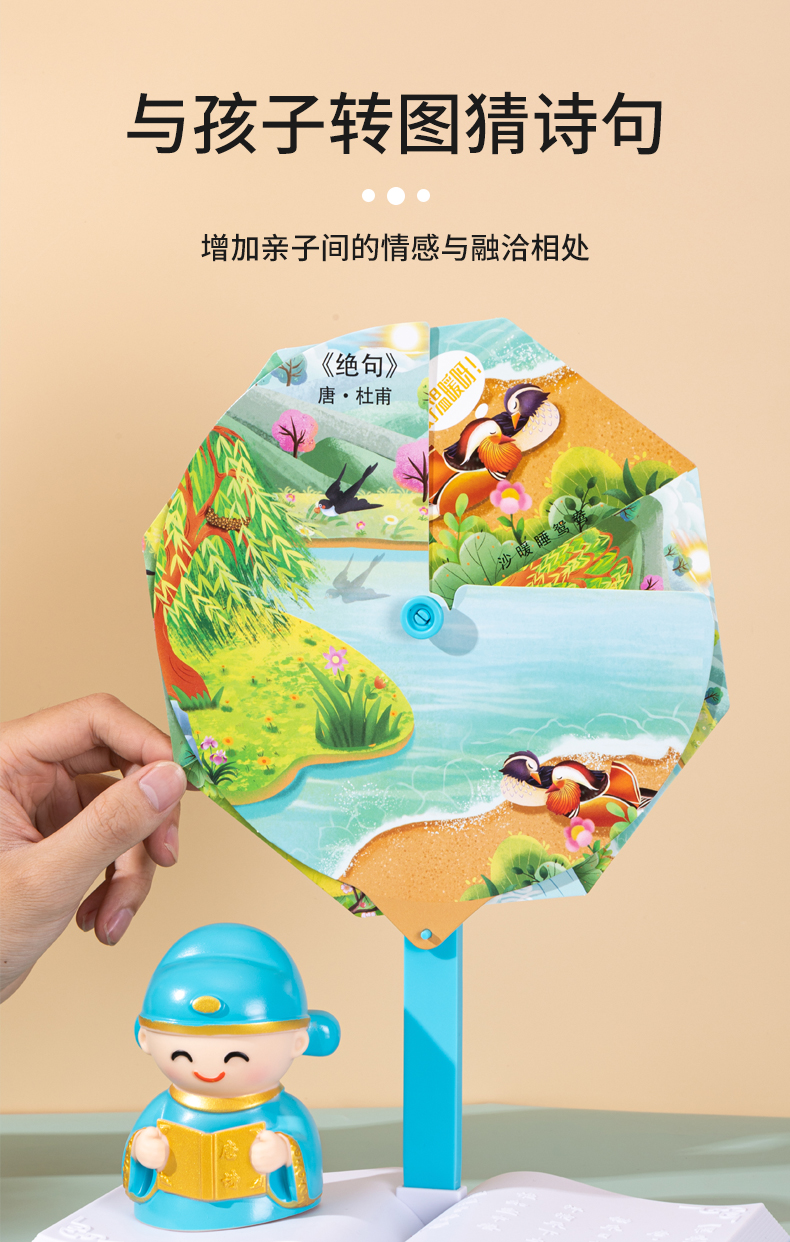 [赠礼袋+12色彩笔]【图解诗句 带娃轻松背古诗】幼儿园/小学古诗转盘 转盘式看图猜诗句 让孩子在玩中学会背古诗 快乐学习