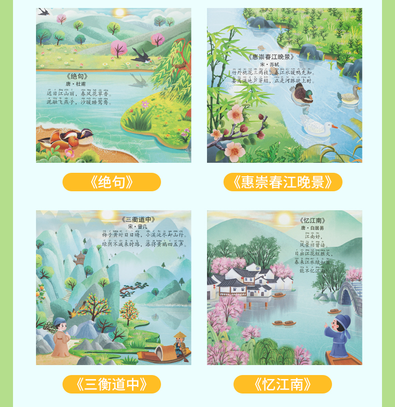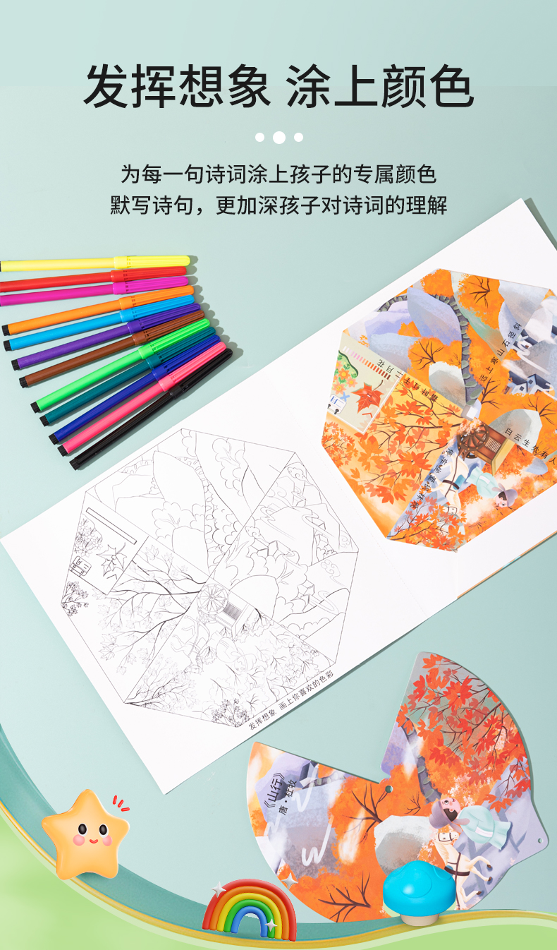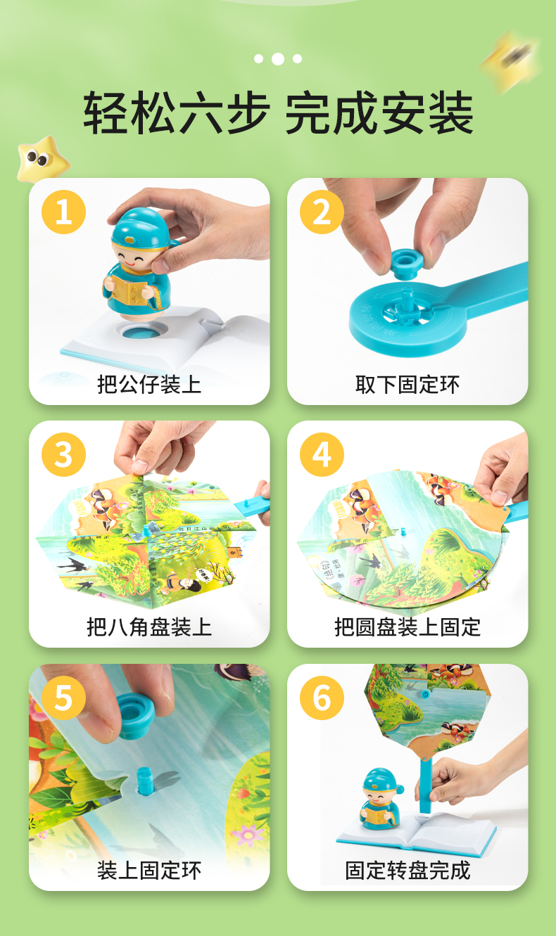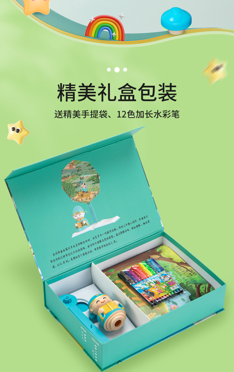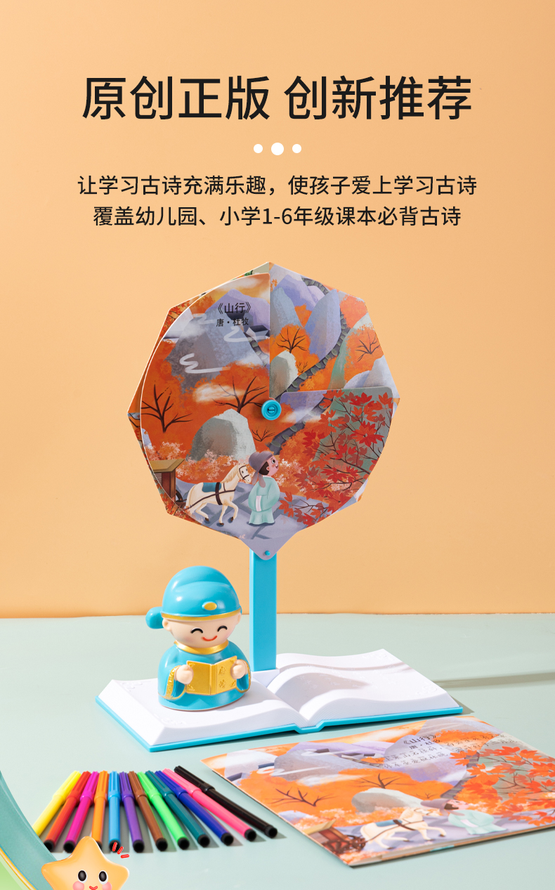 [赠礼袋+12色彩笔]【图解诗句 带娃轻松背古诗】幼儿园/小学古诗转盘 转盘式看图猜诗句 让孩子在玩中学会背古诗 快乐学习