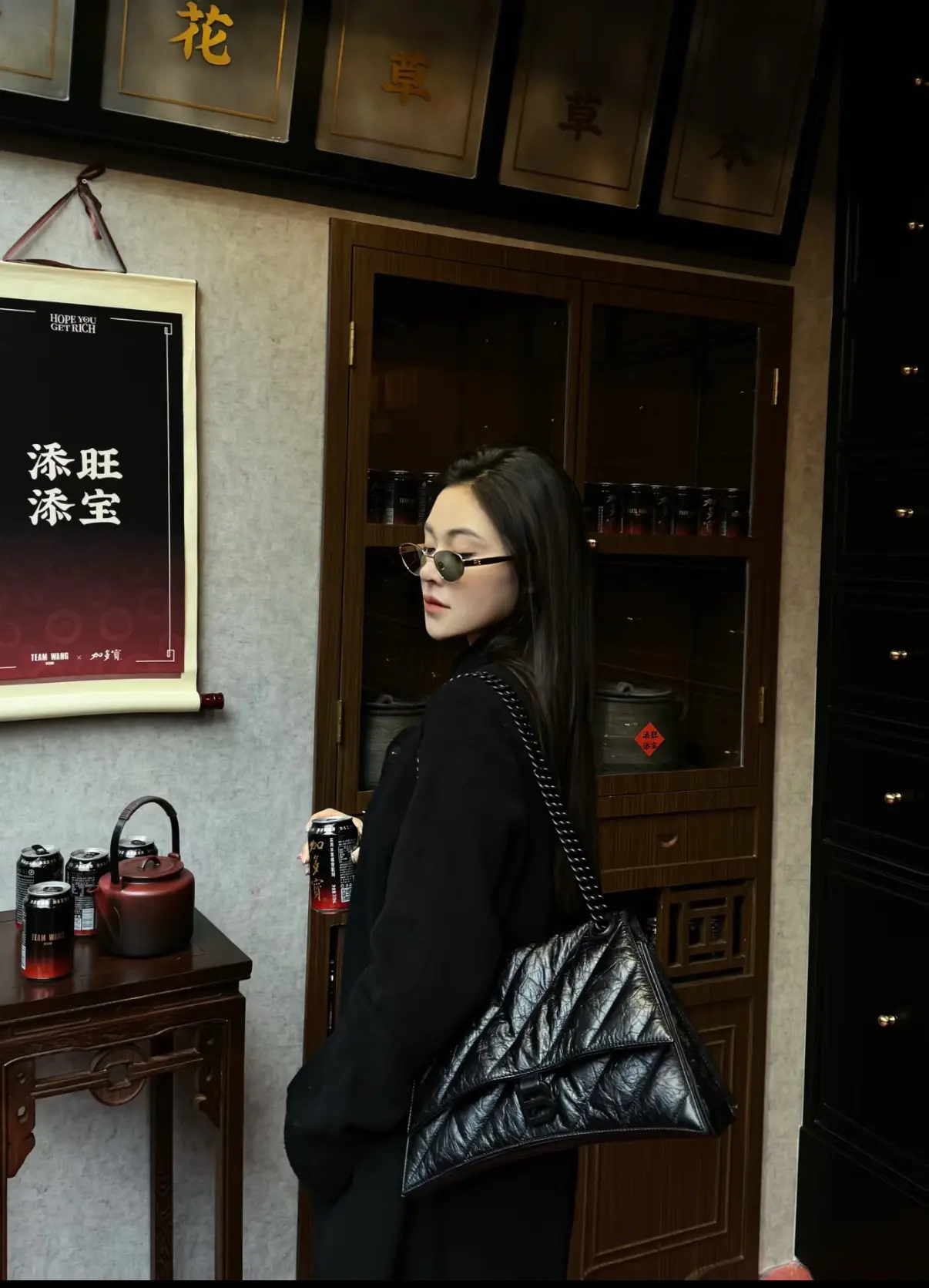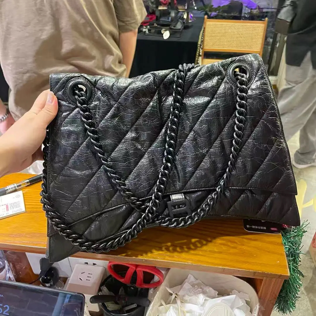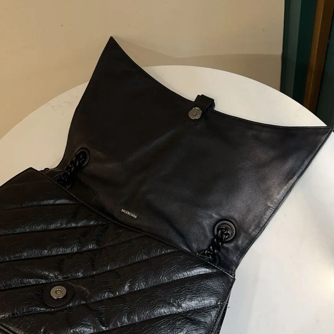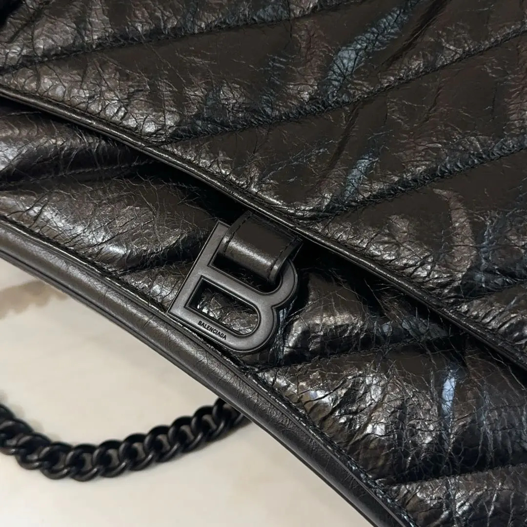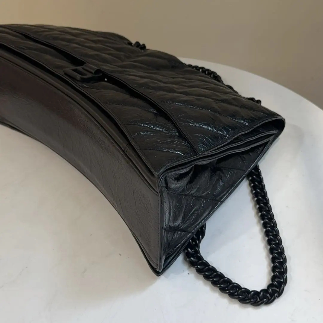 【商品详情】正品二手 巴黎世家 crush so black 油蜡牛皮 大号 沙漏包⏳97新 40*27。oversaiz 不撞款