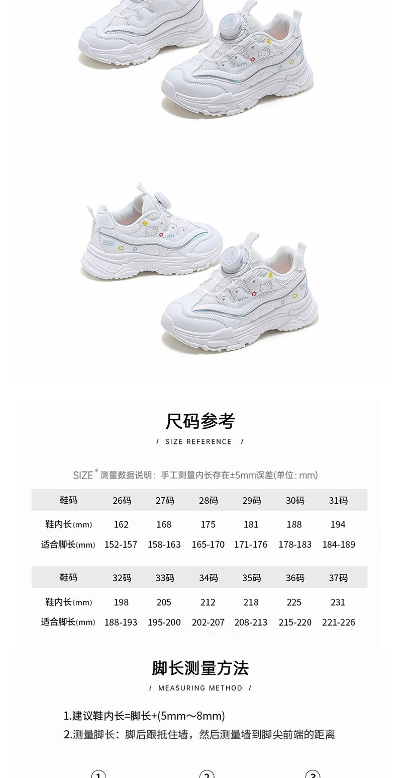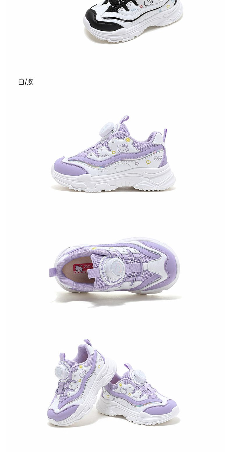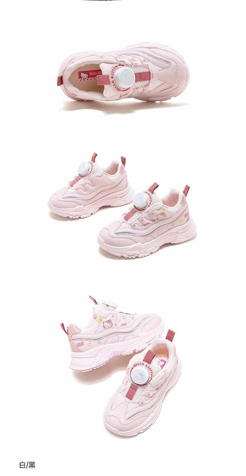 HelloKitty童鞋春季新款女童轻便透气小白鞋儿童防滑旋钮运动鞋