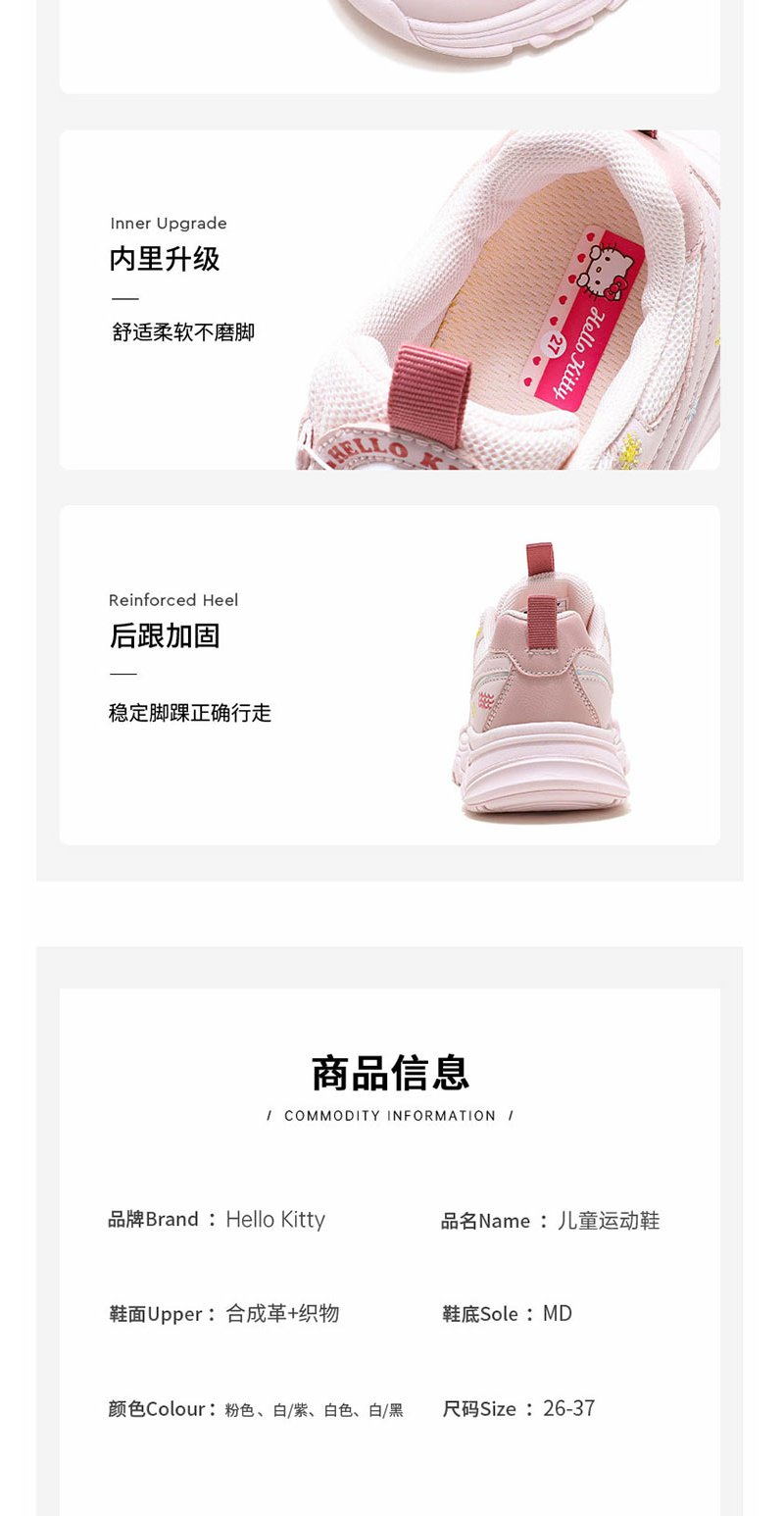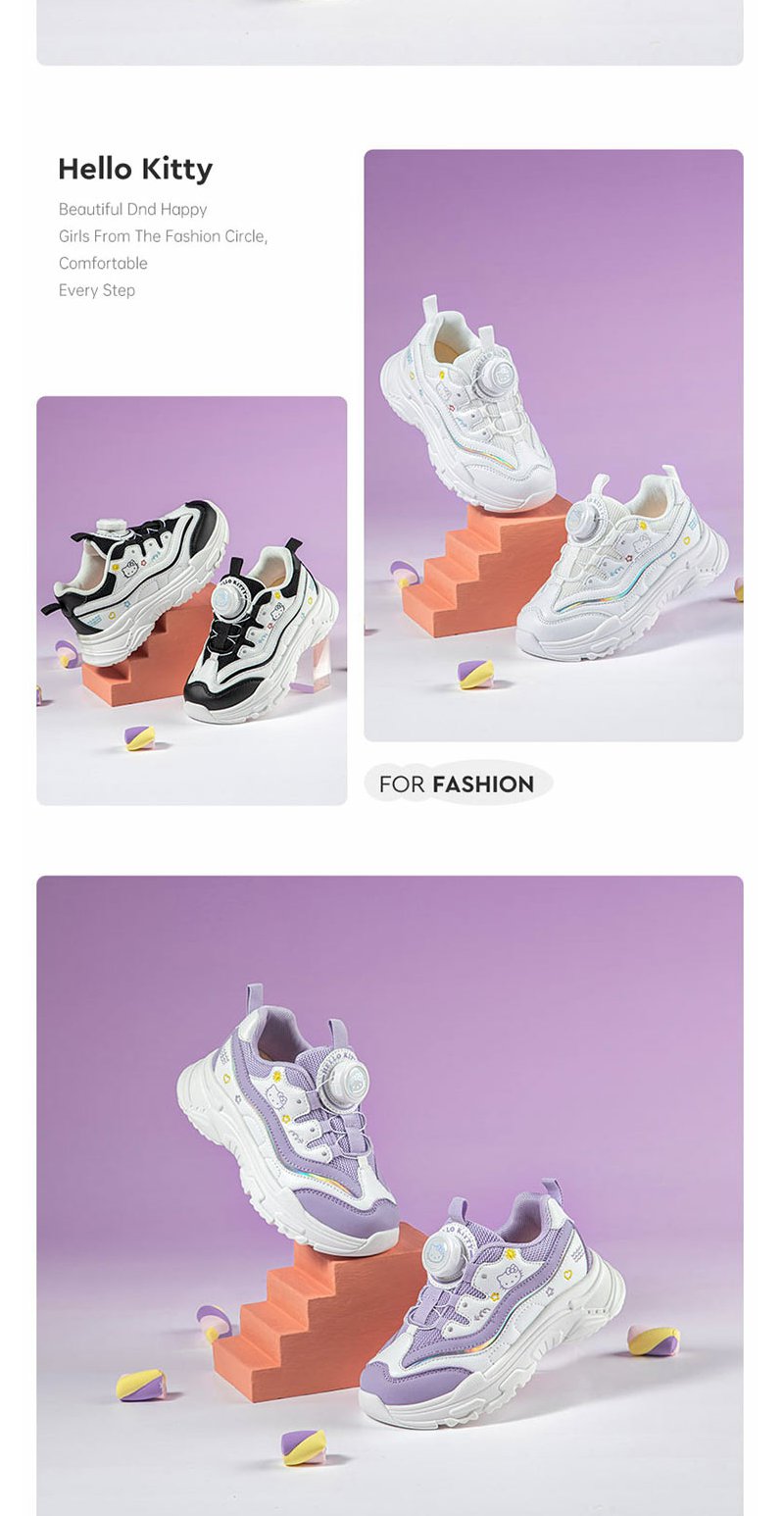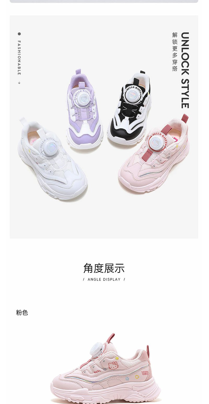 HelloKitty童鞋春季新款女童轻便透气小白鞋儿童防滑旋钮运动鞋