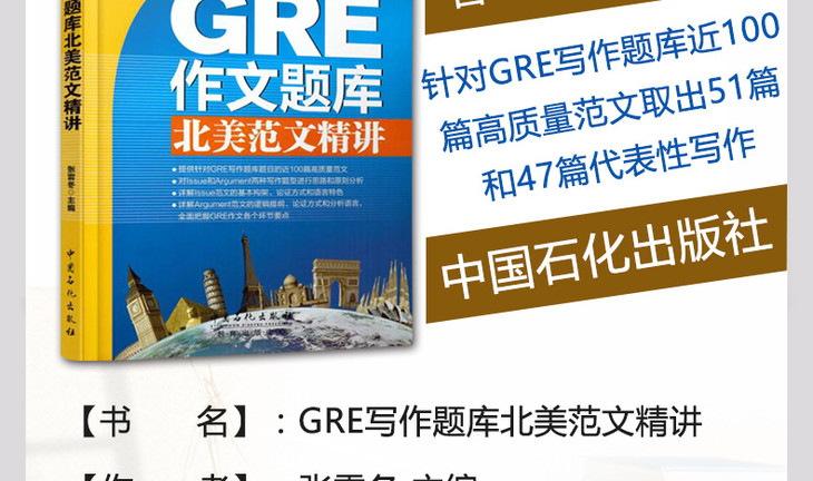 GRE作文题库北美范文精讲 第二版 gre词汇 长难句 gre阅读 单词 gre写作 真题 出国留学范文 核心考点 考试备考教材书籍