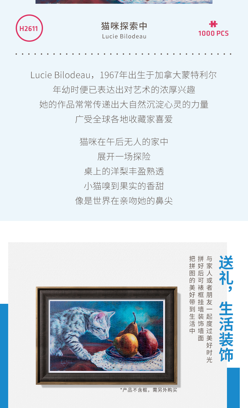 【折扣商品 不退不换】1000片 平面拼图 塑料拼图 H2611 Lucie Bilodeau-貓咪探索中