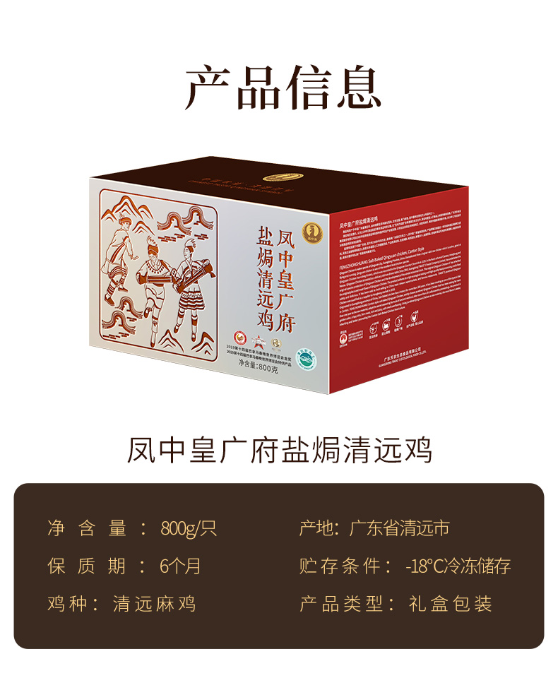 凤中皇广府盐焗清远鸡800g 巴拿马礼盒限定