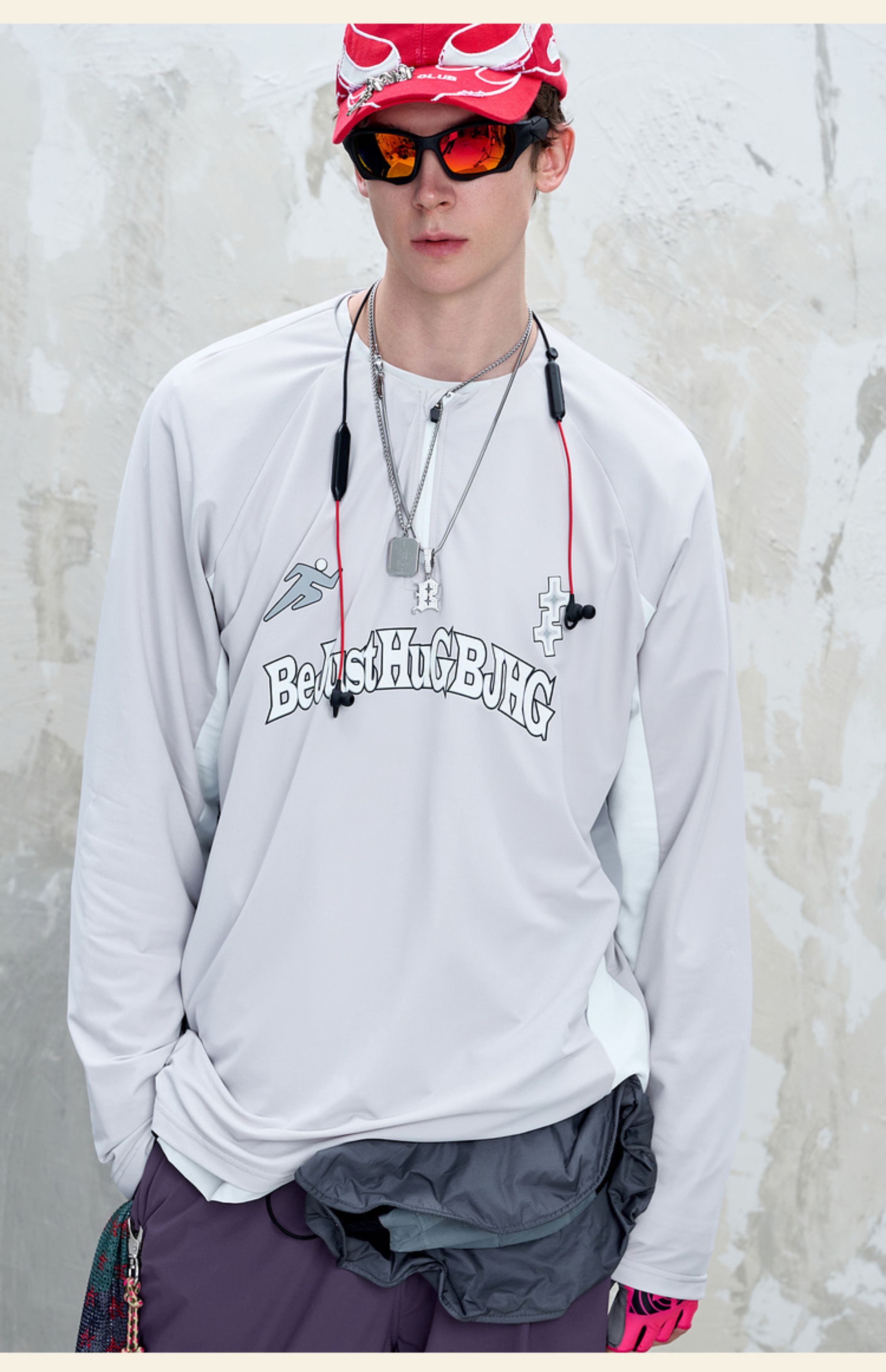 BJHG不计后果 凉感长袖t恤男夏季2025新款运动休闲透气撞色骑行服