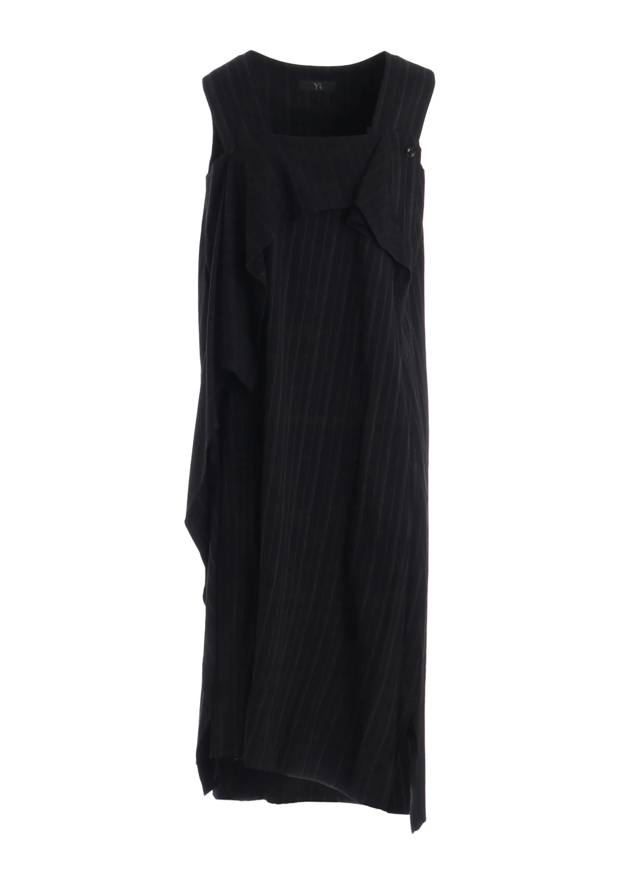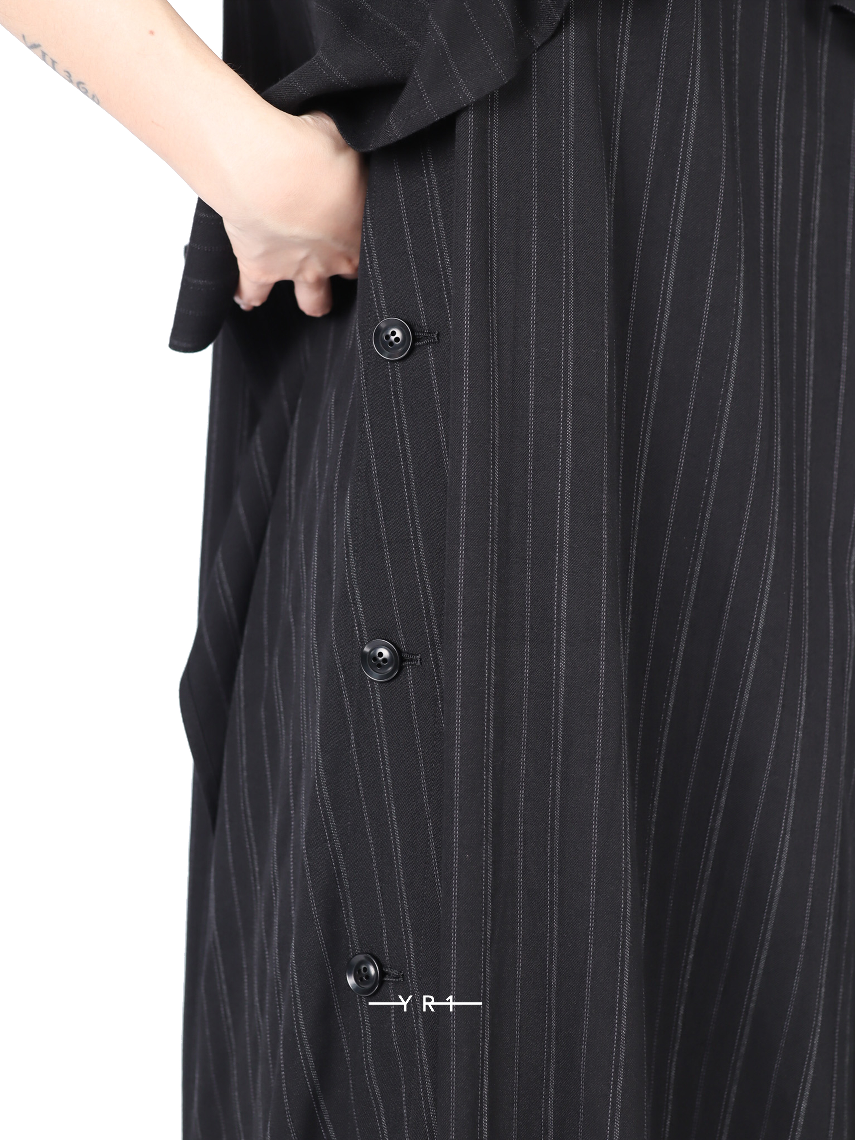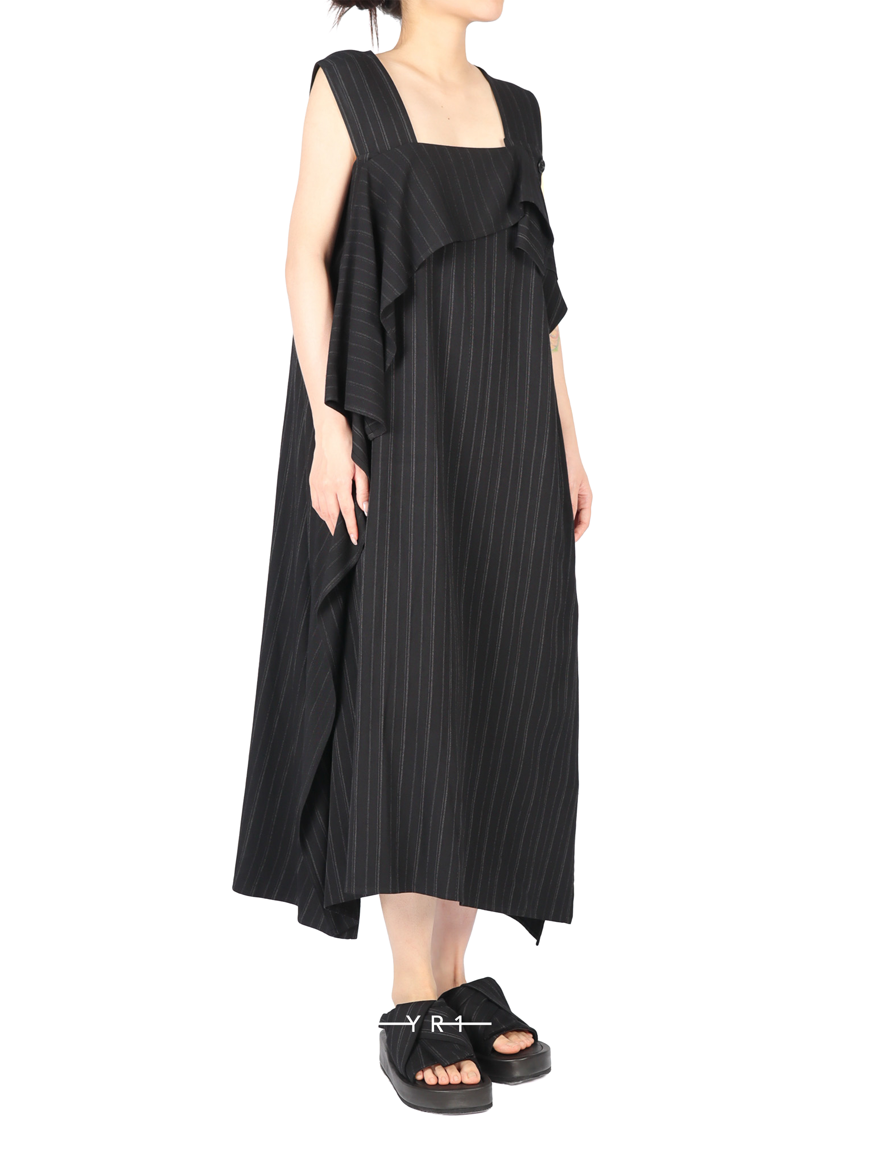 这款DRESS采用人造丝材质,展现经典的条纹图案,灵感源于男装面料,并被巧妙地运用在人造丝上。设计的关键特征是从领口延伸到下摆的优雅垂褶。