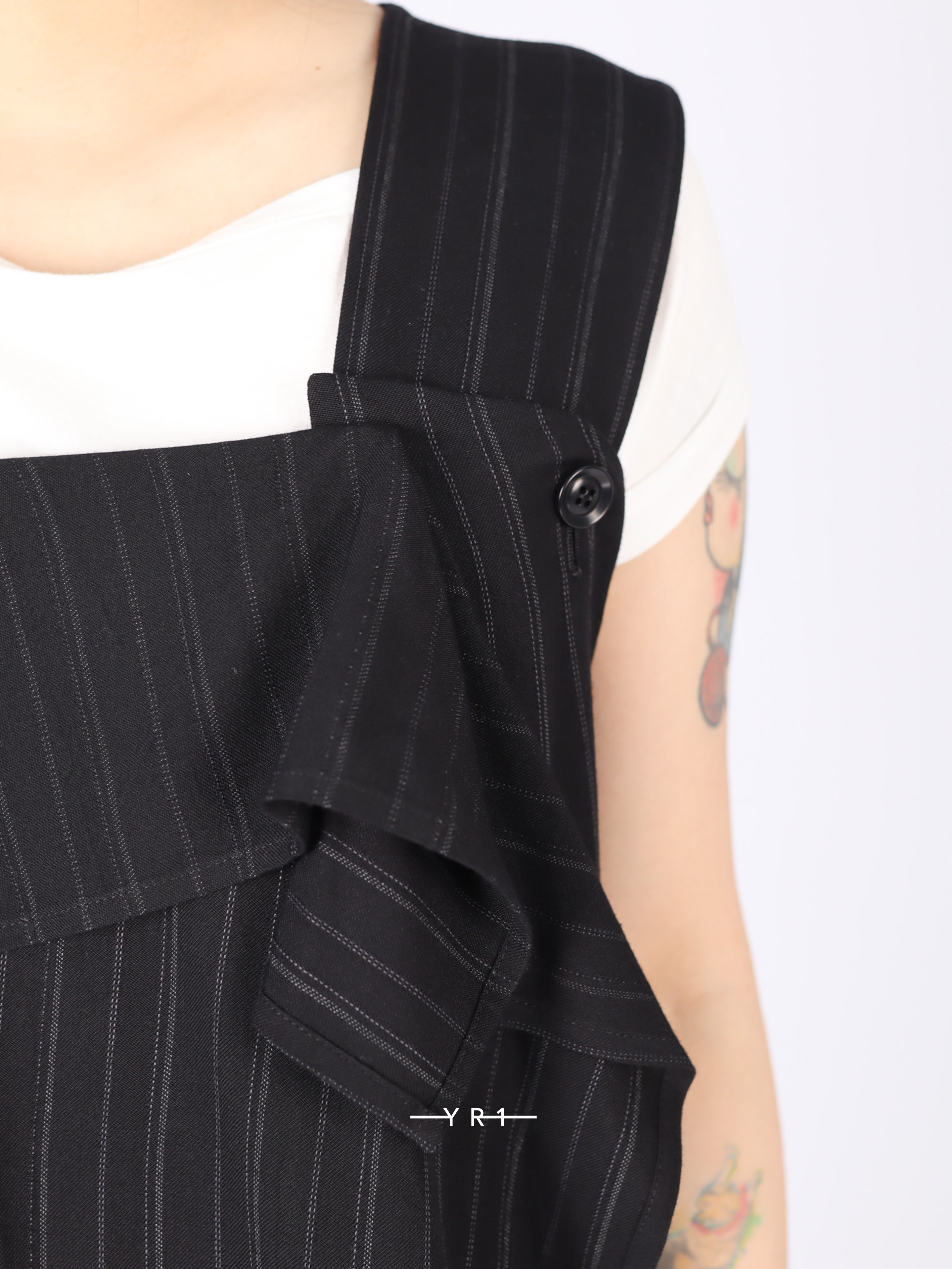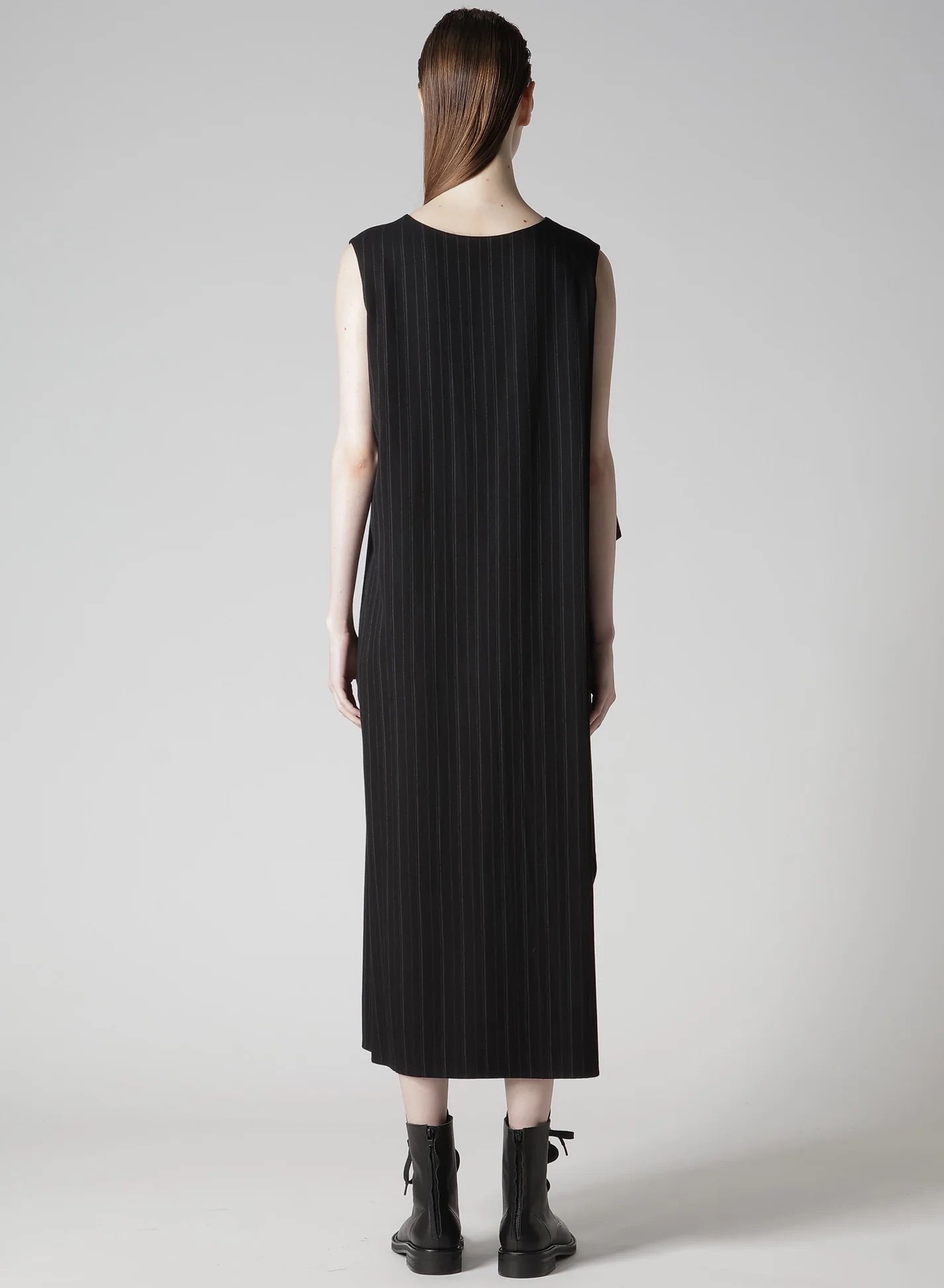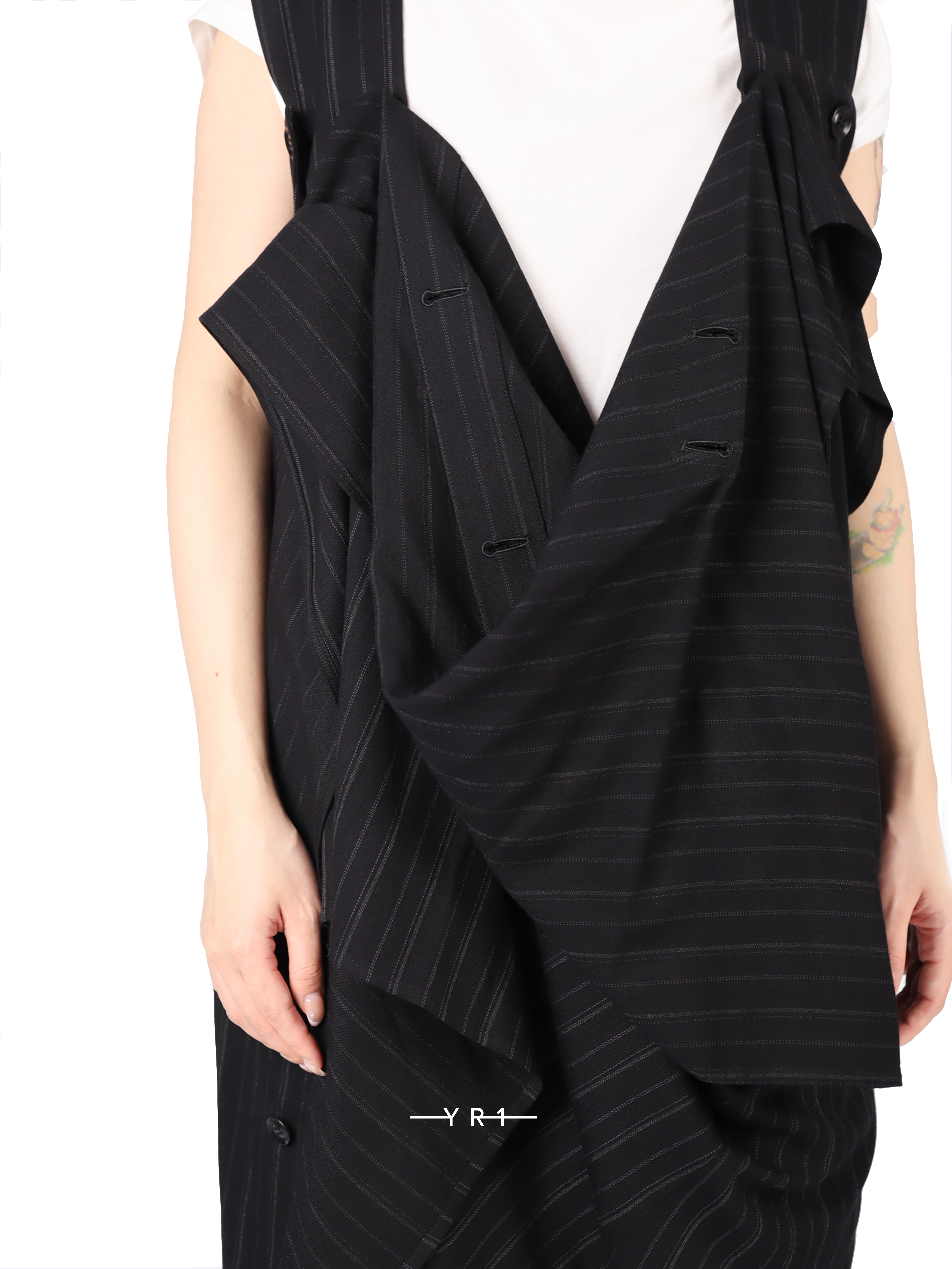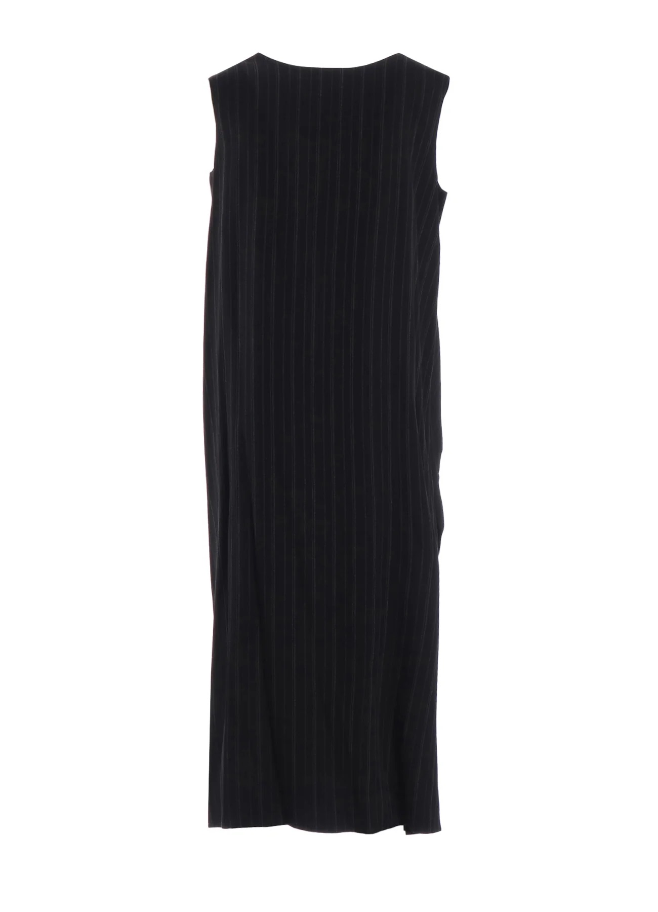 这款DRESS采用人造丝材质,展现经典的条纹图案,灵感源于男装面料,并被巧妙地运用在人造丝上。设计的关键特征是从领口延伸到下摆的优雅垂褶。