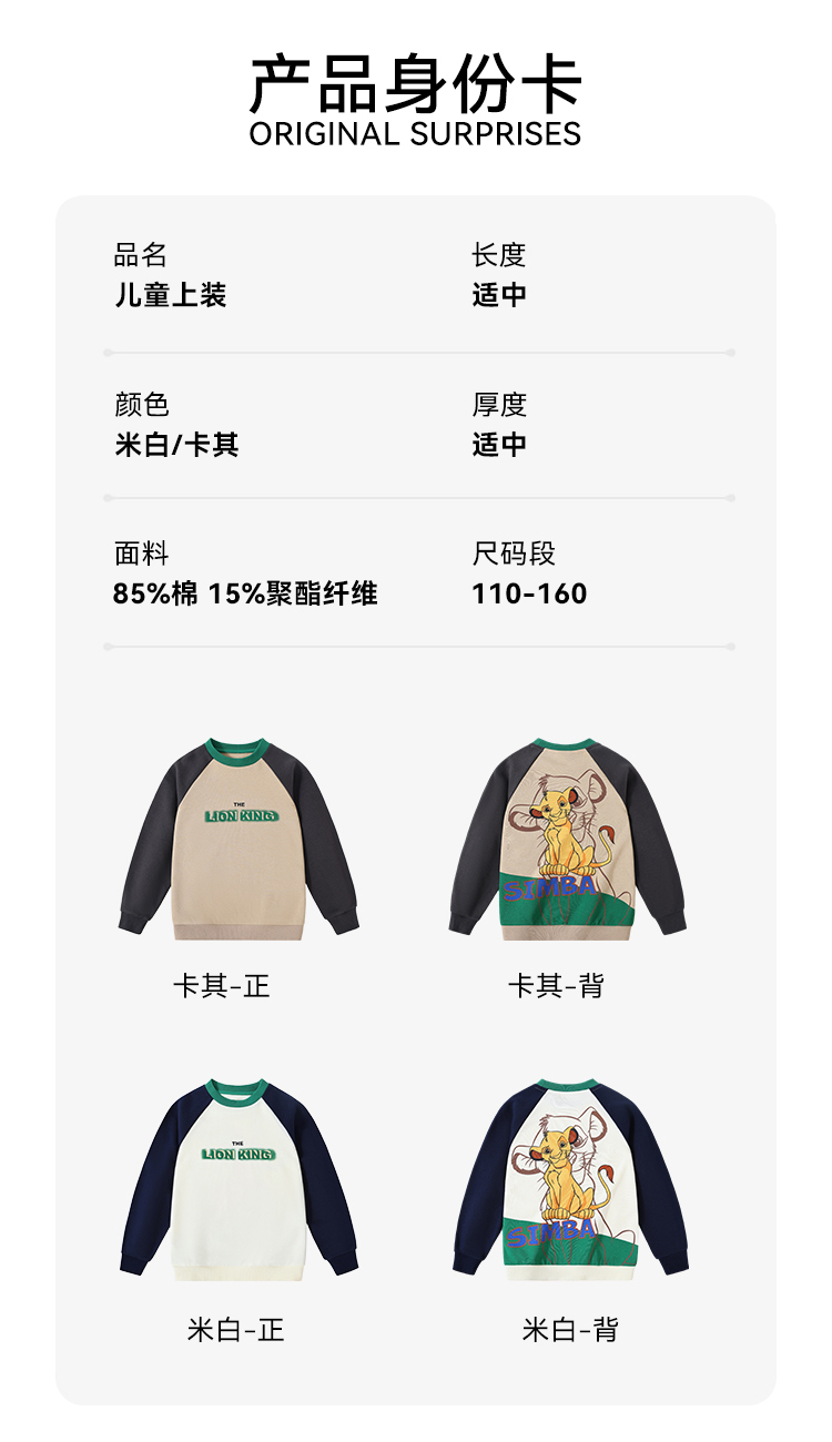 【110-160】【迪士尼】男童春秋款插肩袖卫衣