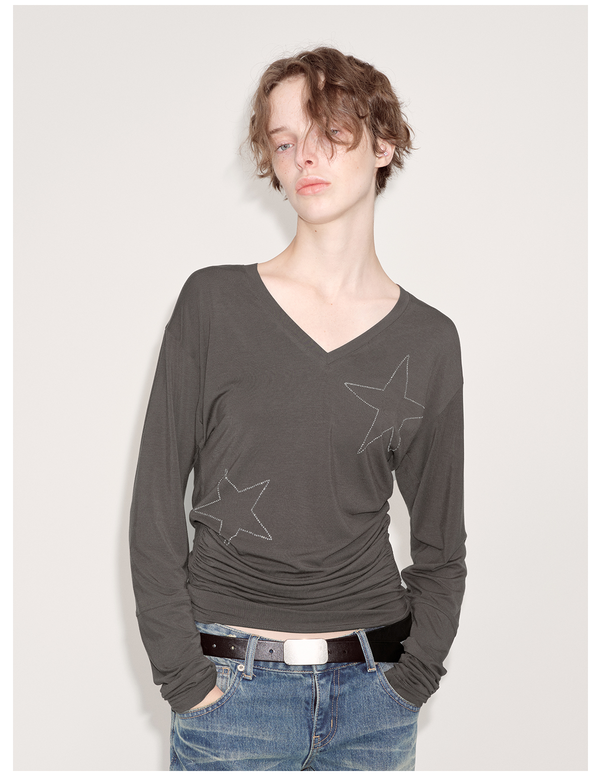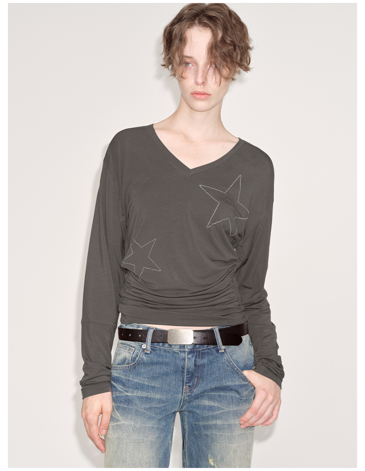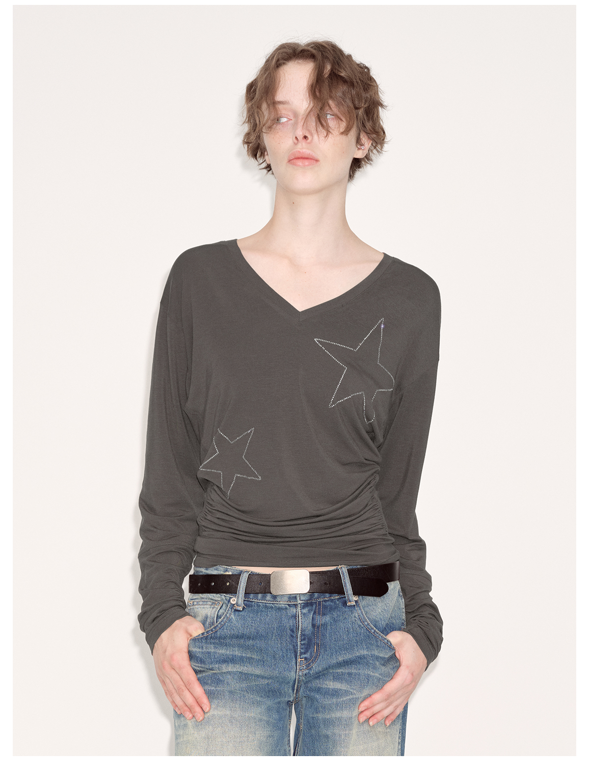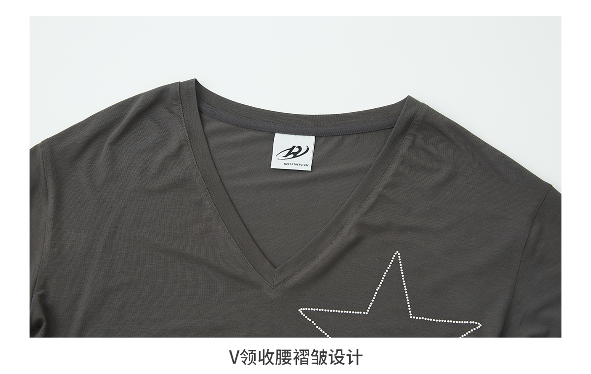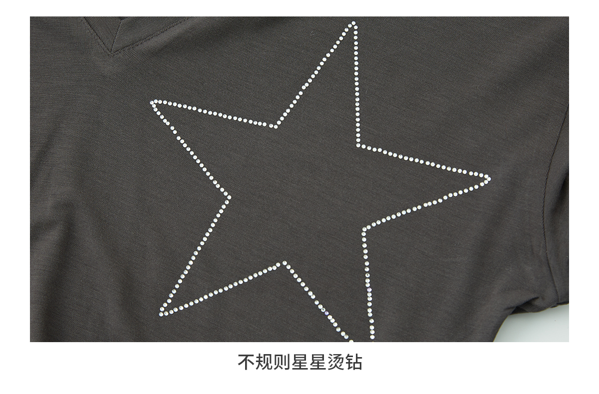 出逃赤岗西/24AWT101/莱赛尔星星烫钻修身显瘦打底衫