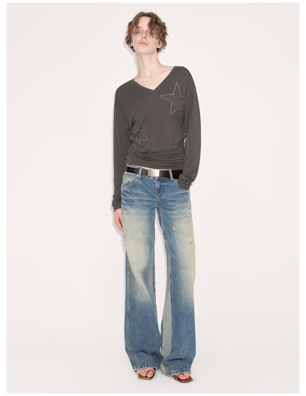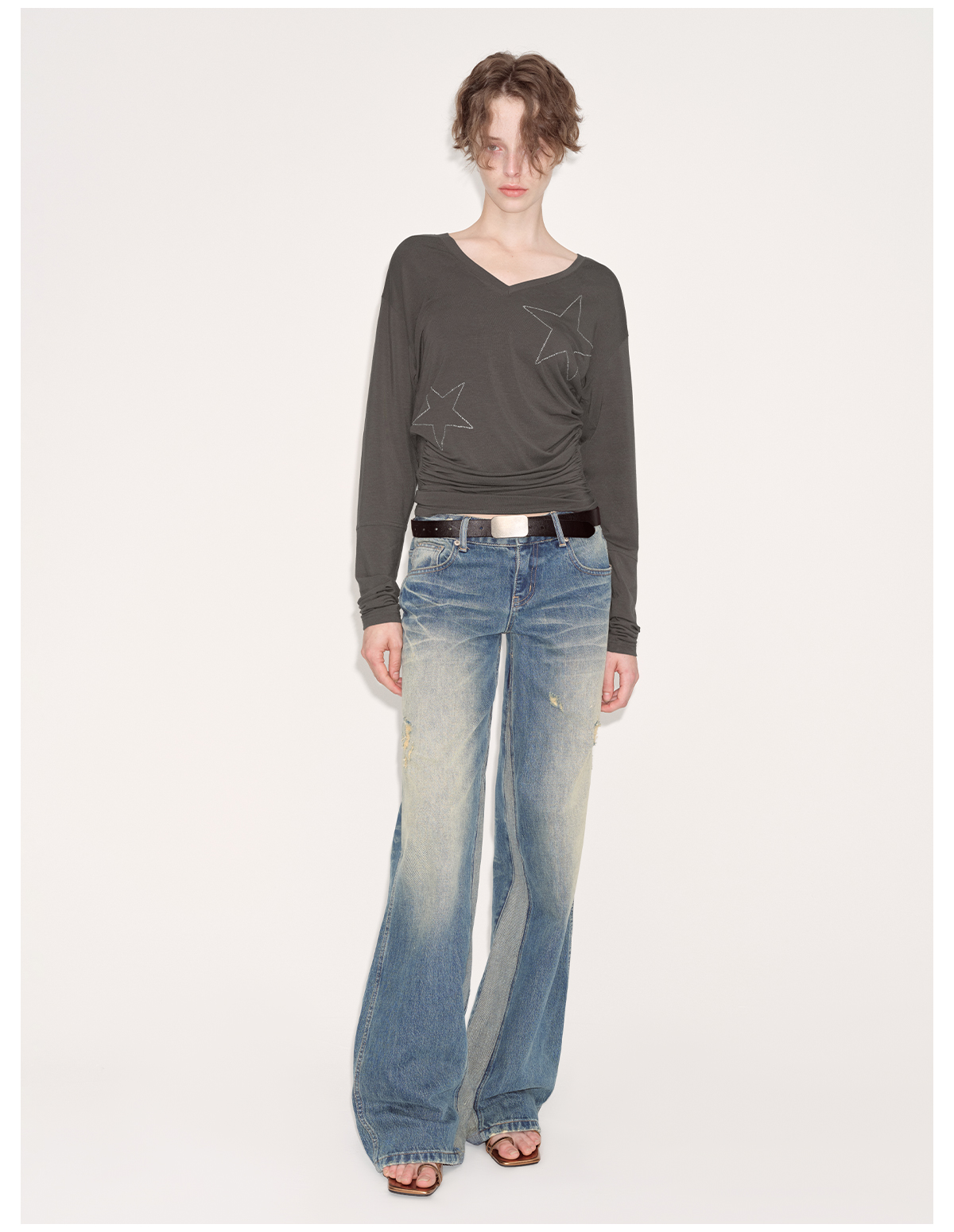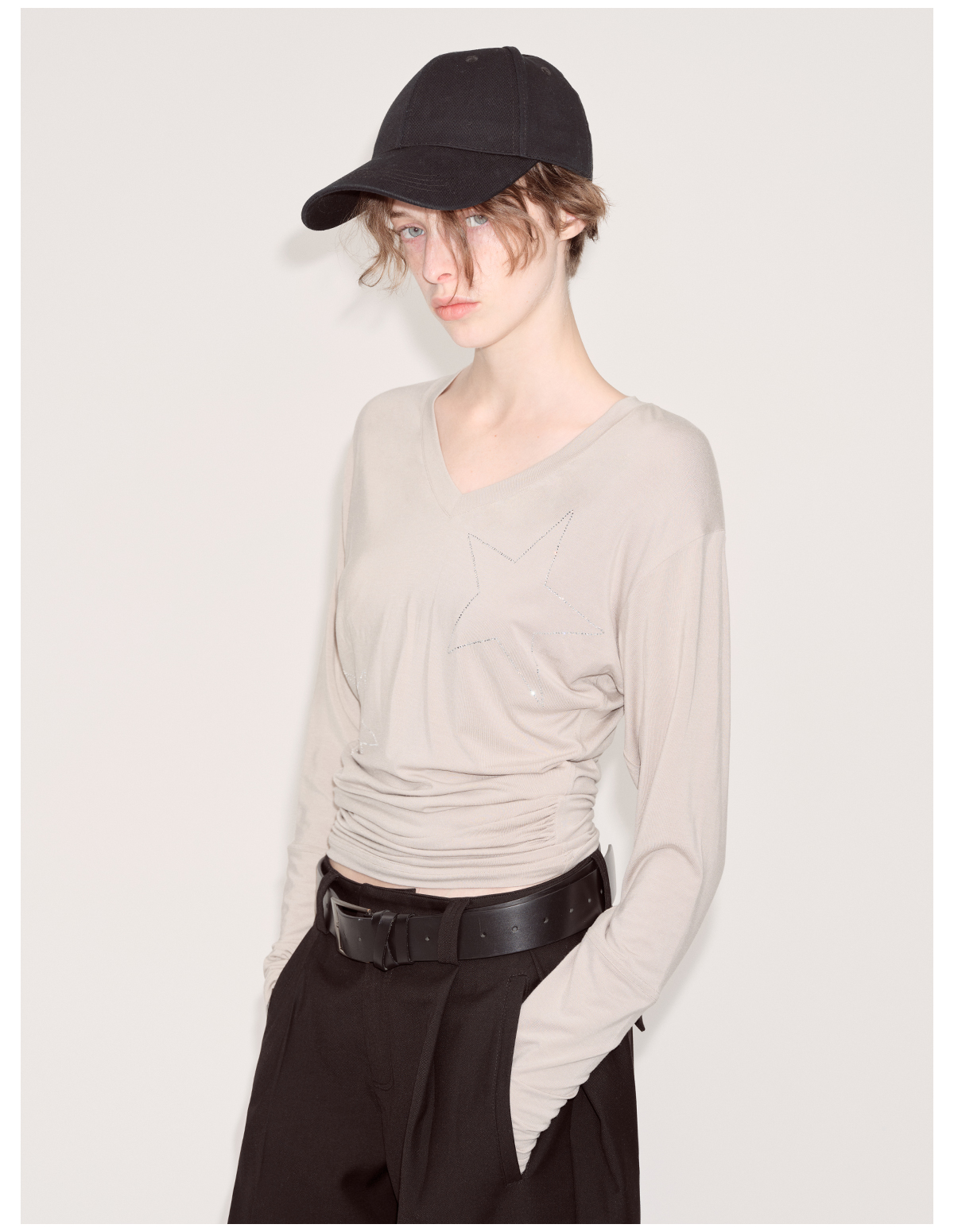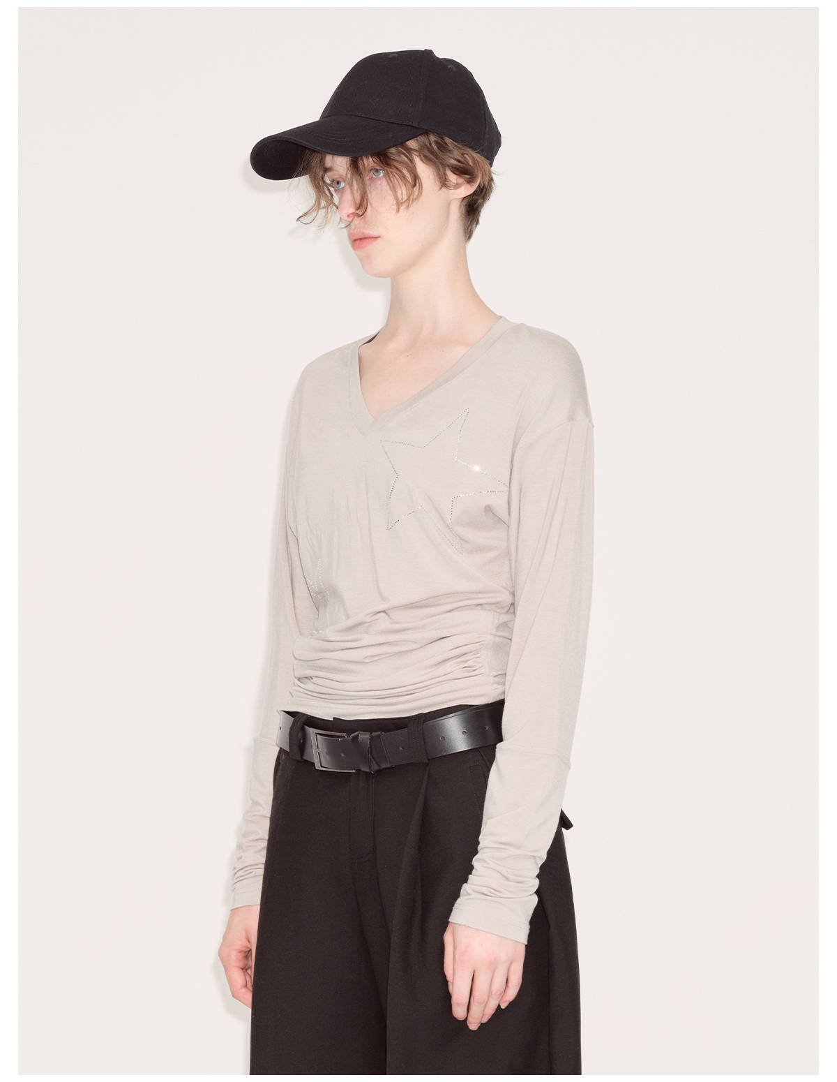 出逃赤岗西/24AWT101/莱赛尔星星烫钻修身显瘦打底衫