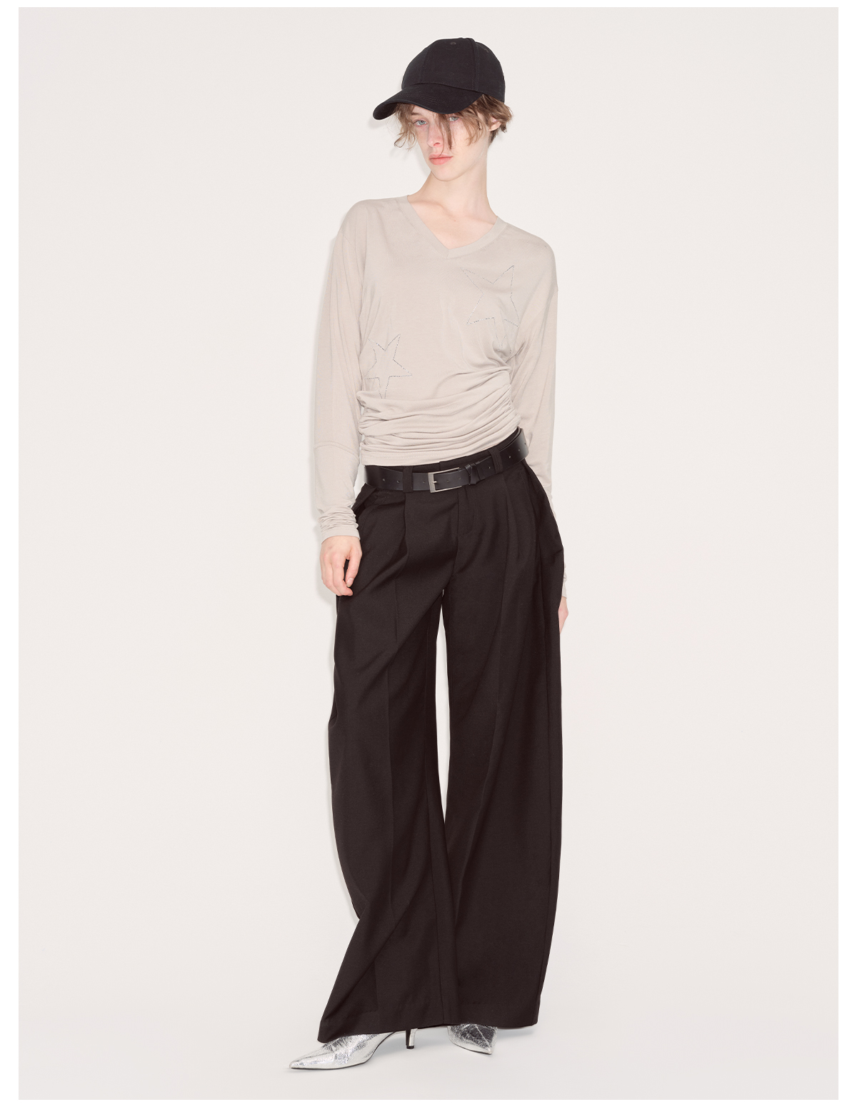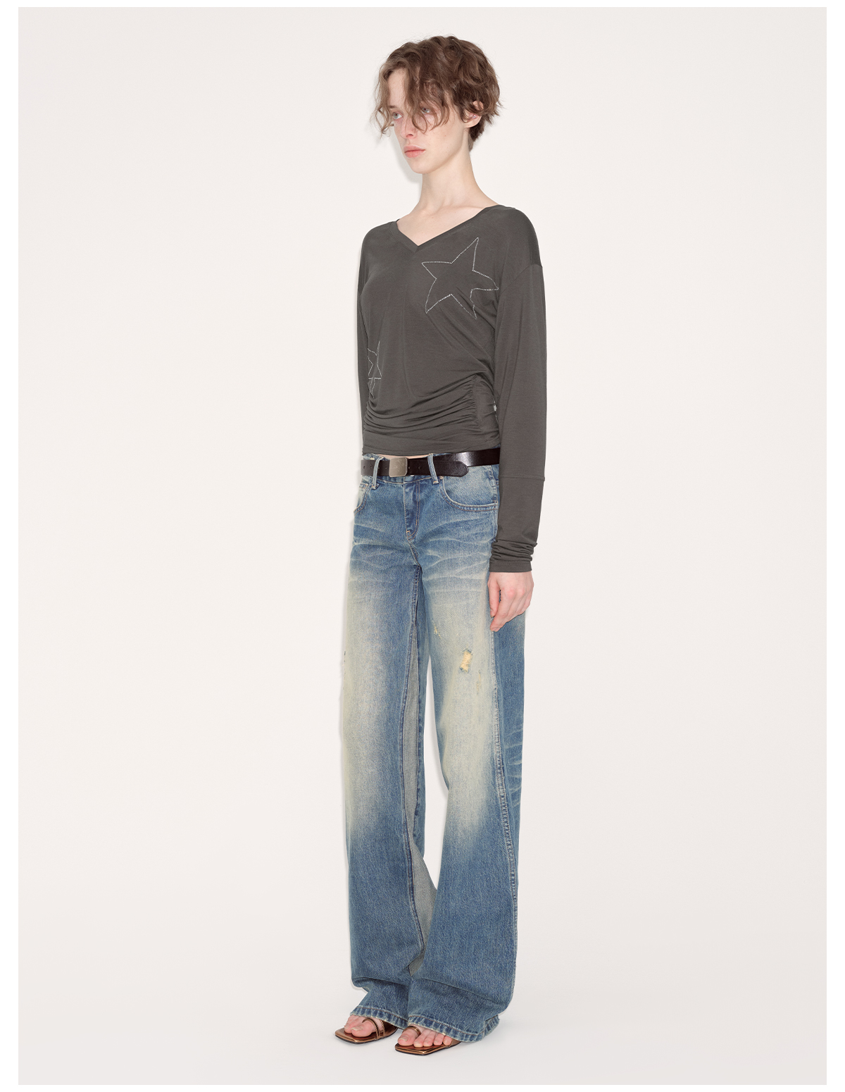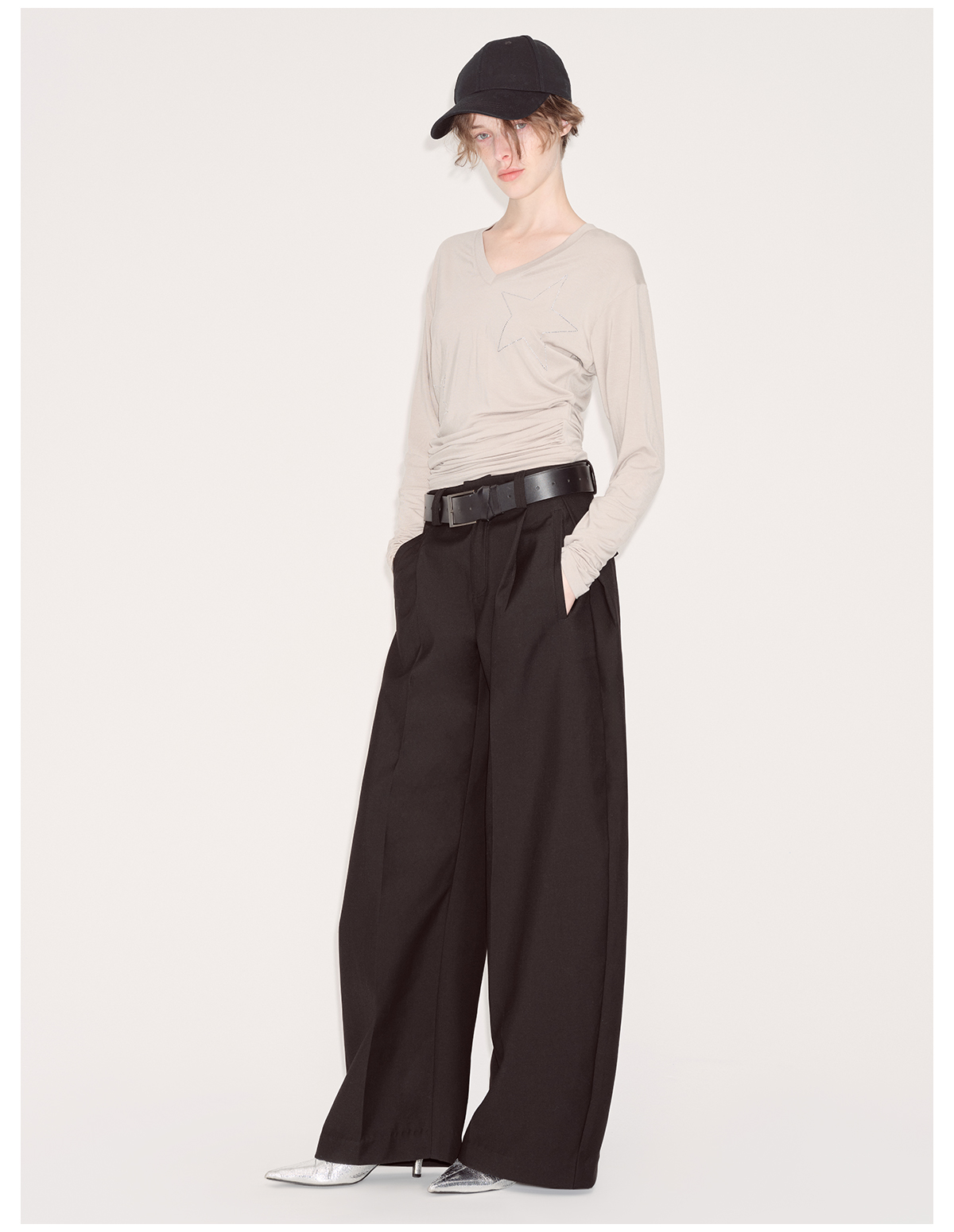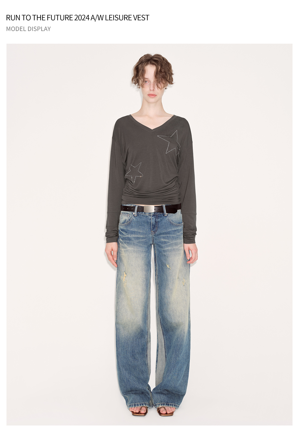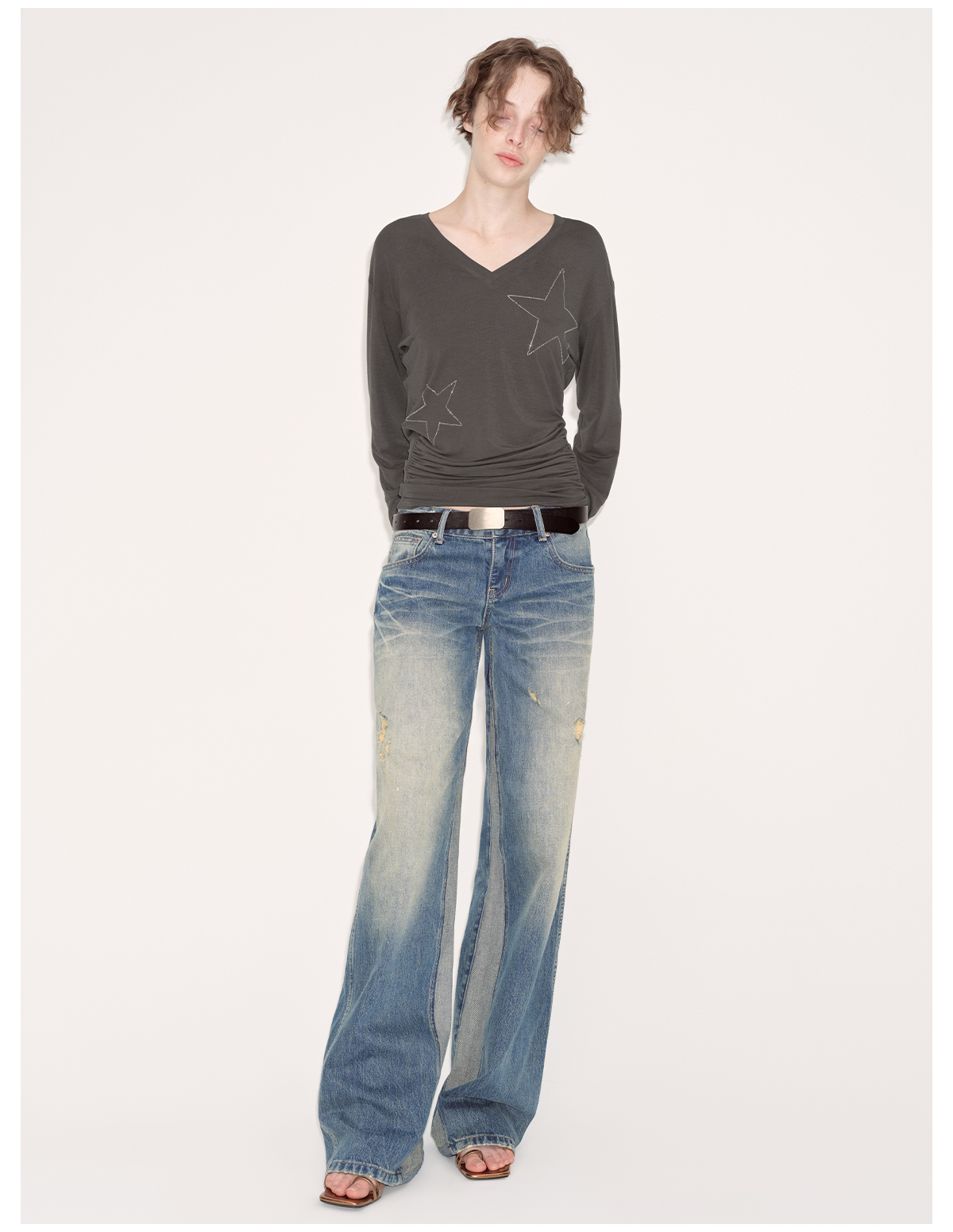 出逃赤岗西/24AWT101/莱赛尔星星烫钻修身显瘦打底衫