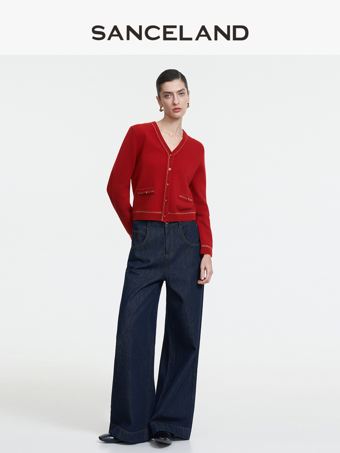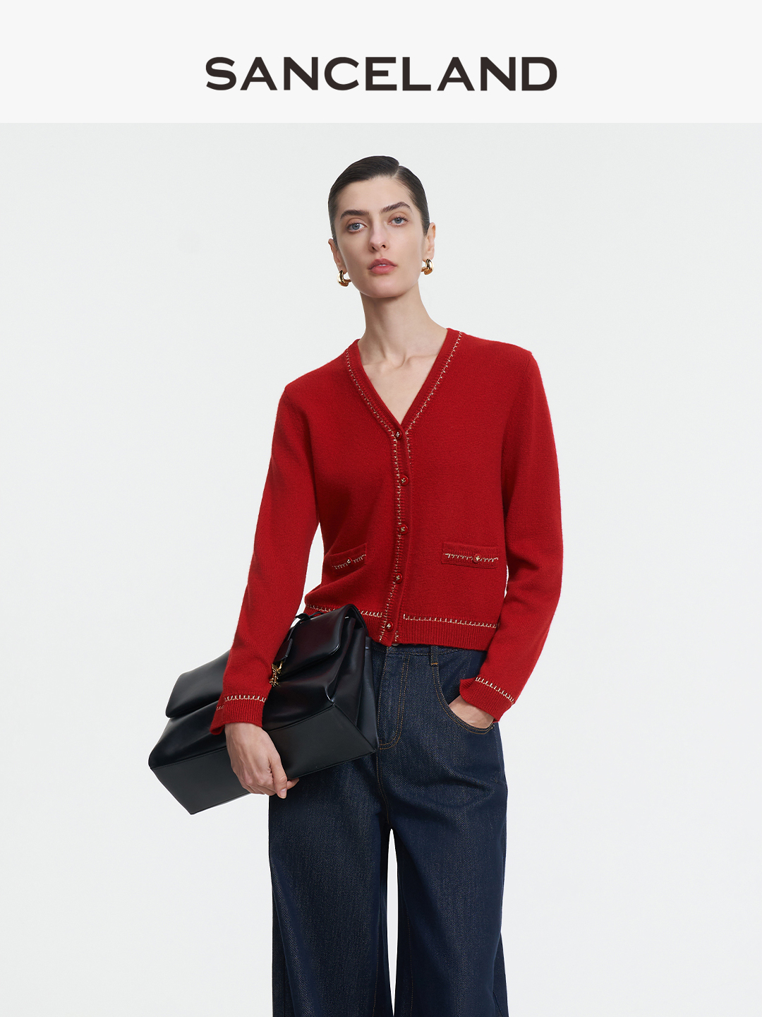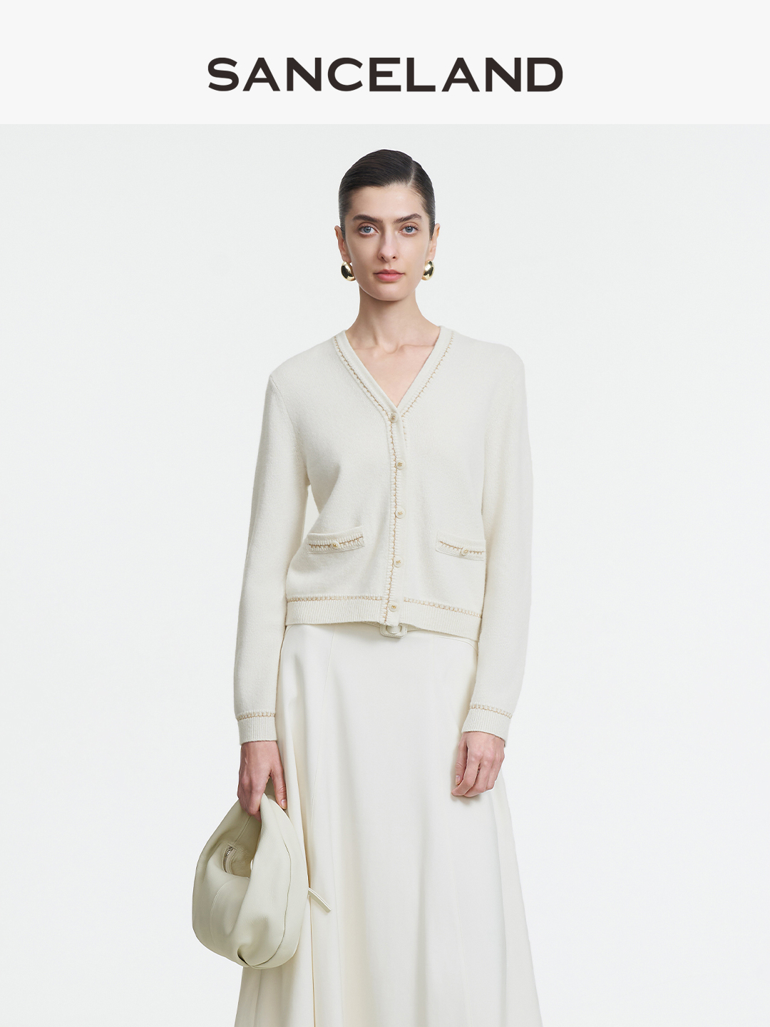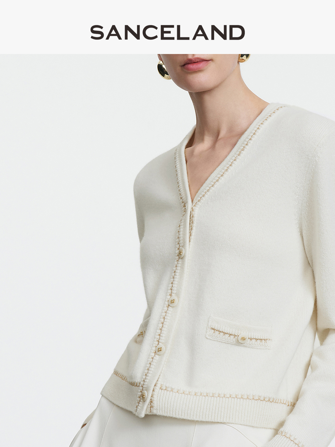 三石一澜SANCELAND女装春季羊毛羊绒V领开衫SK15501046