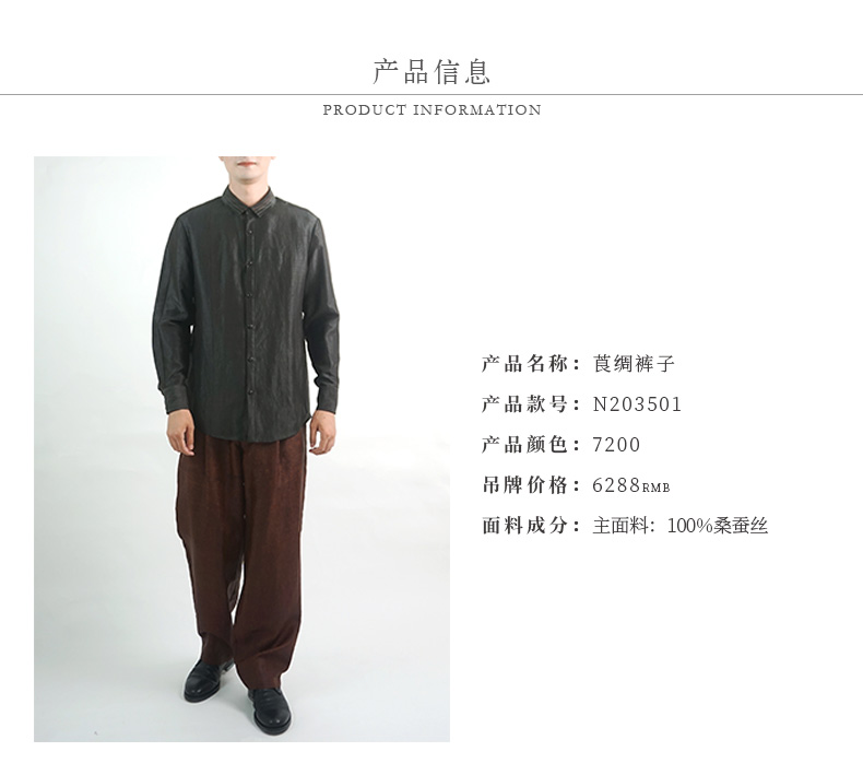 TANGY Collection/天意精品春夏新品香云纱男装男士真丝莨绸休闲裤