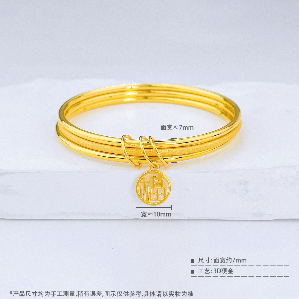 【限时克减150元】足金 3D硬金空心固口三生三世手镯镂空福字吊饰福牌手镯(AR3DSZ00004)(预售产品下单后不退款不退货不换货不补差价)(预售产品下单后不退款不退货不换货不补差价)