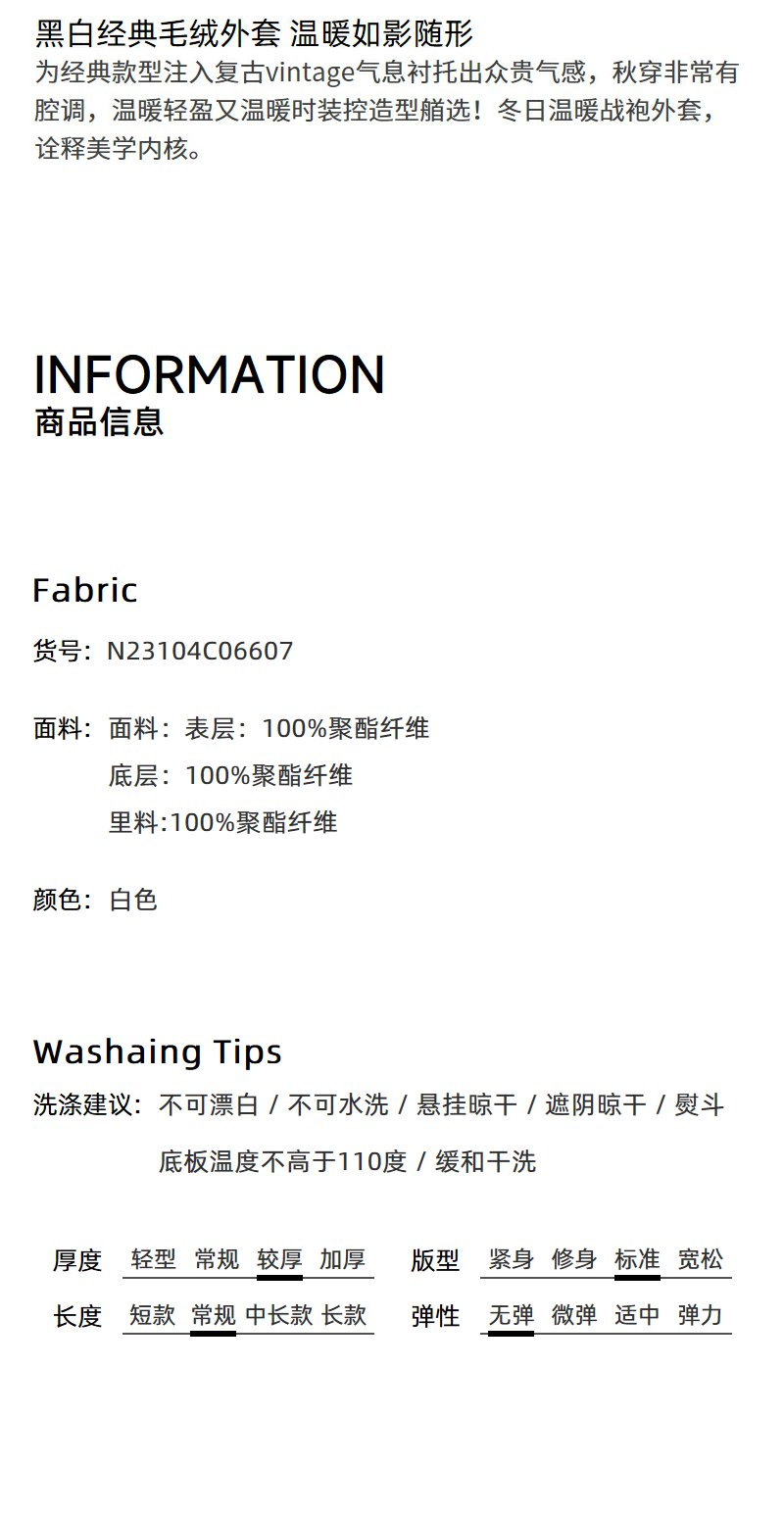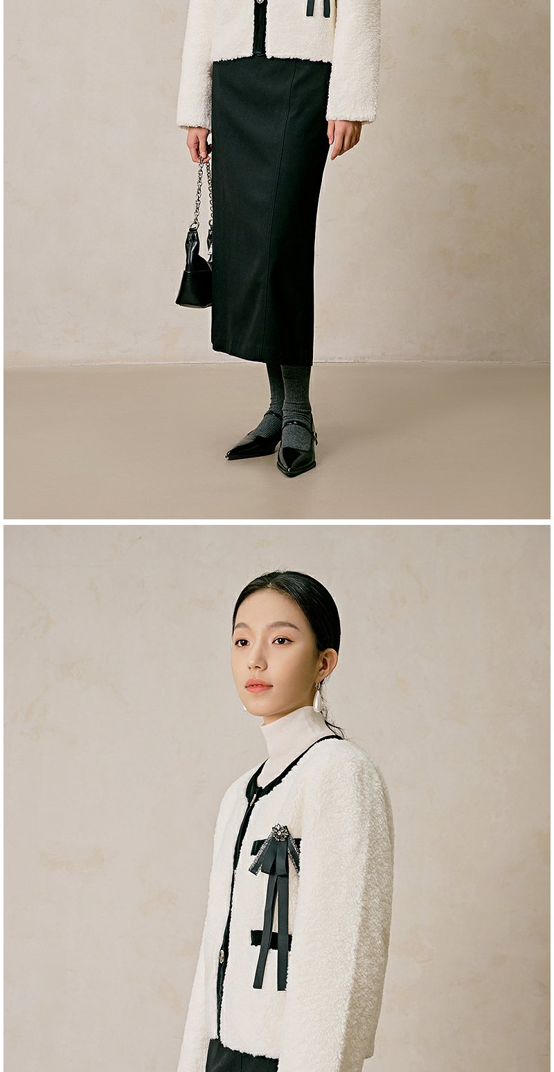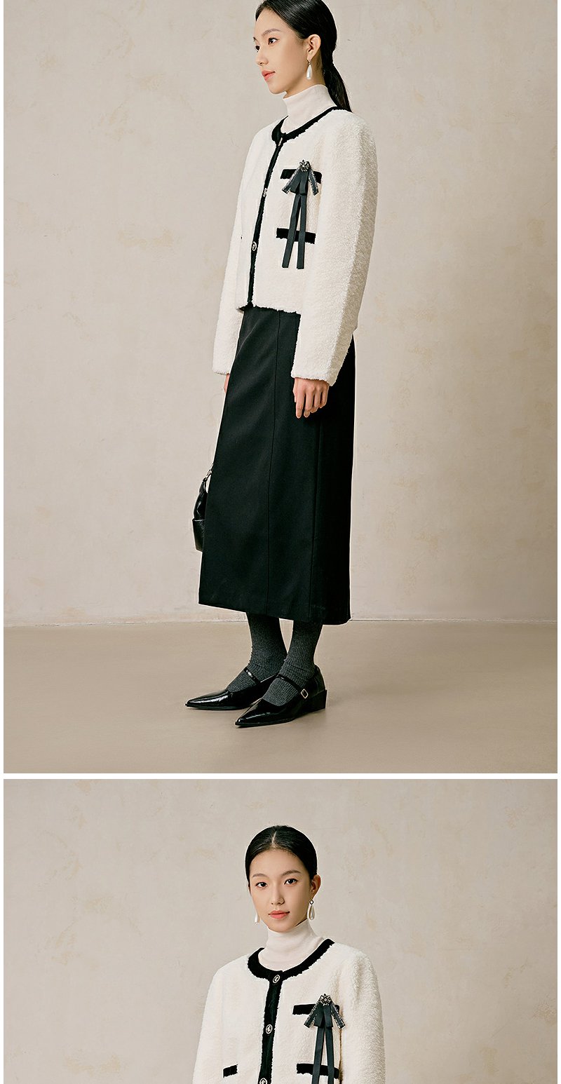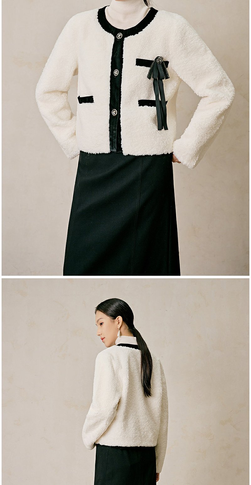 NEELLY纳俪商场同款冬季新款法式小香风黑白撞色毛绒感短外套女N23104C06607
