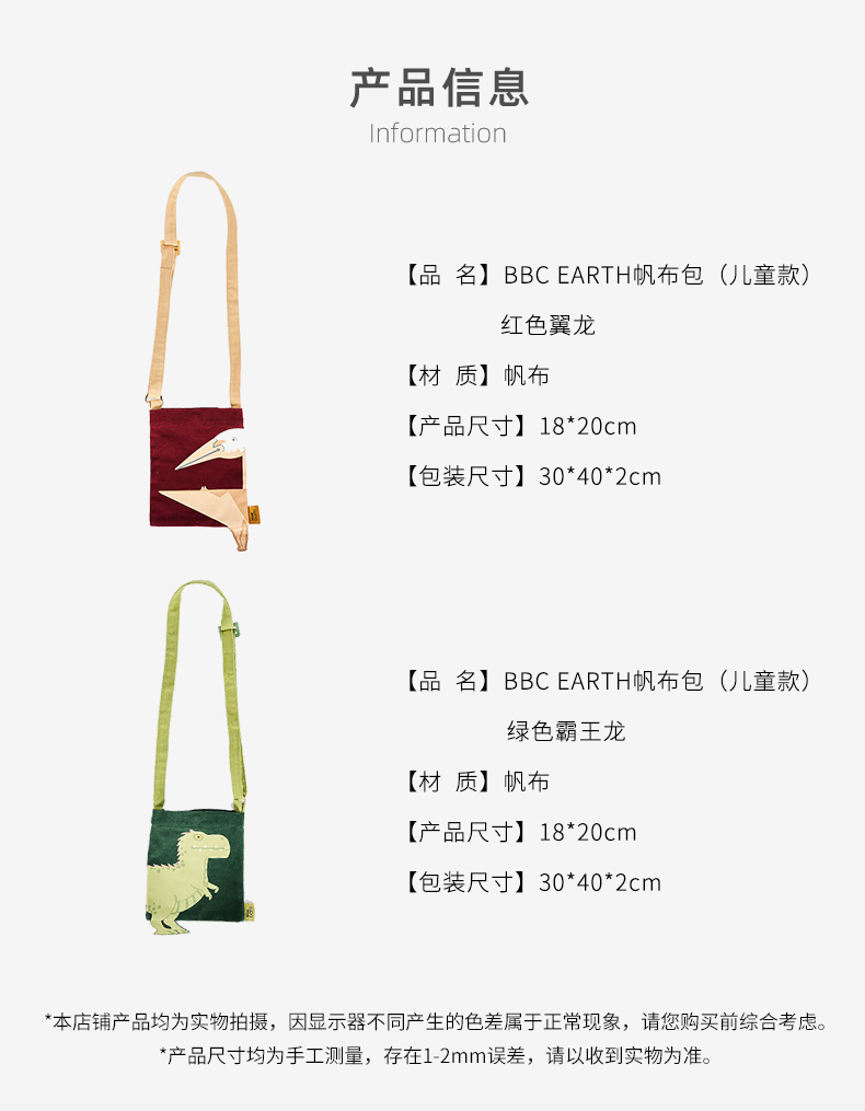 BBC EARTH霸王龙翼龙萌趣潮流成人儿童异形环保全棉帆布包