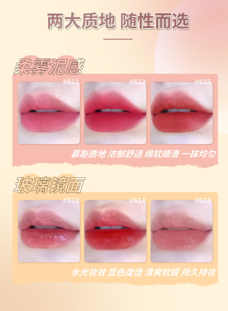 依咕迪咕【如约而至唇釉】哑光雾面丝绒唇泥 素颜显白镜面口红