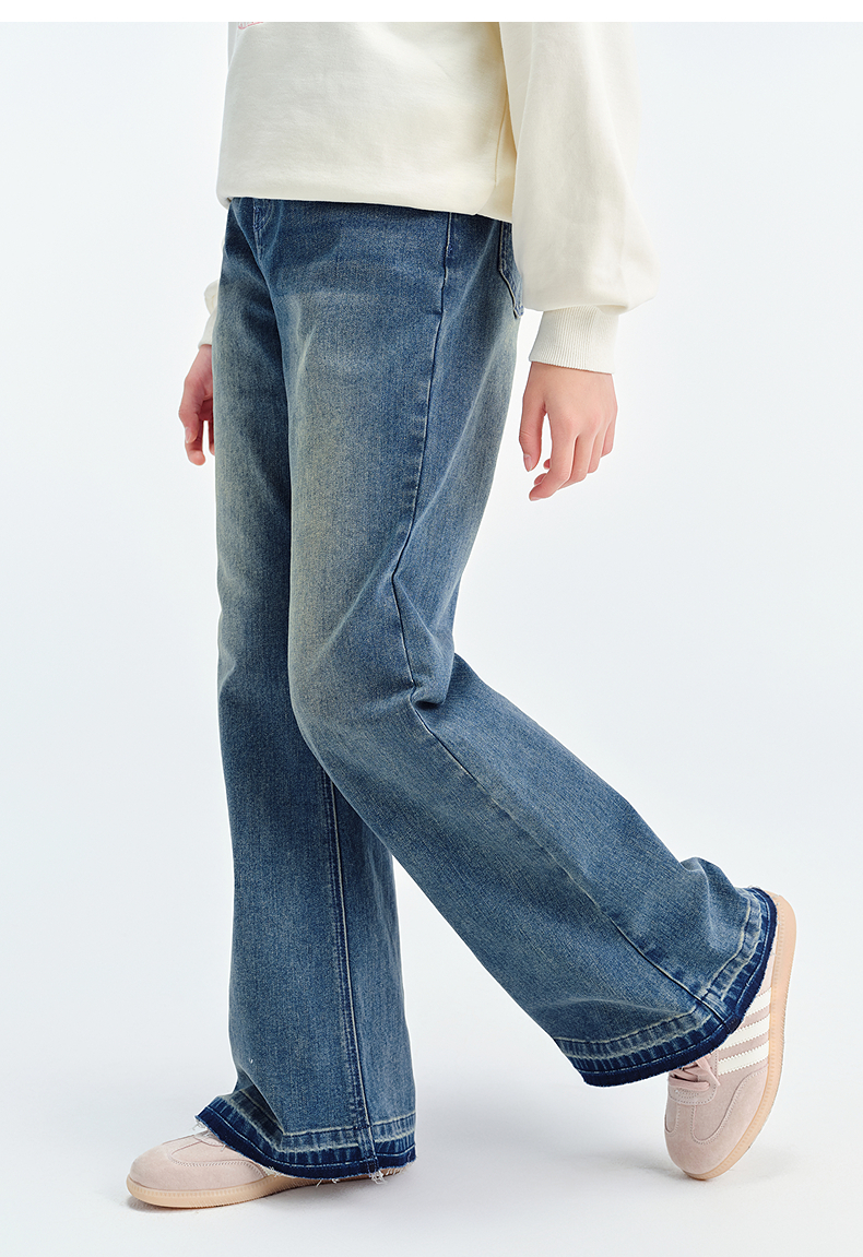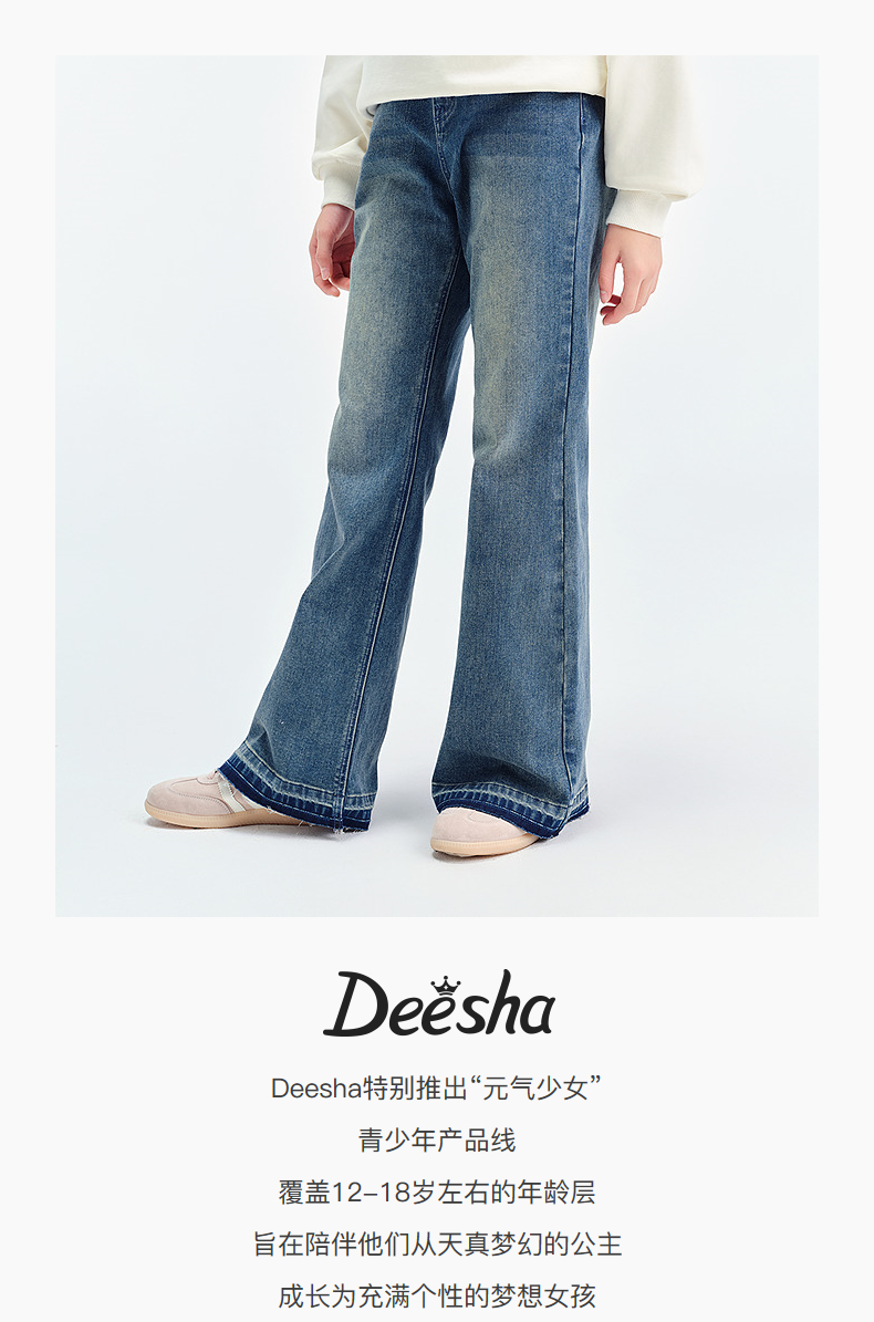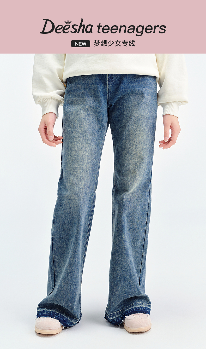 笛莎Deesha青少年女童裤子2025春季女童牛仔微喇裤