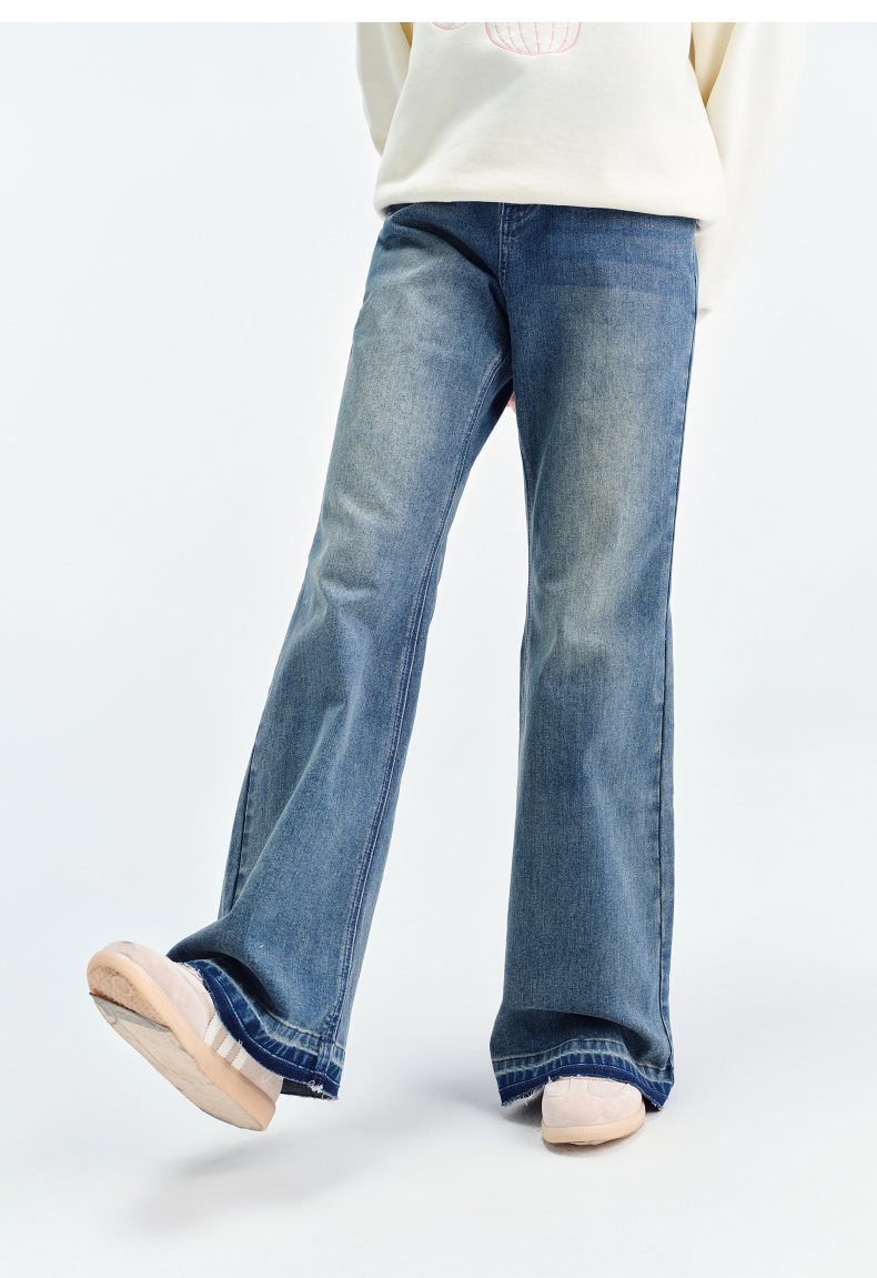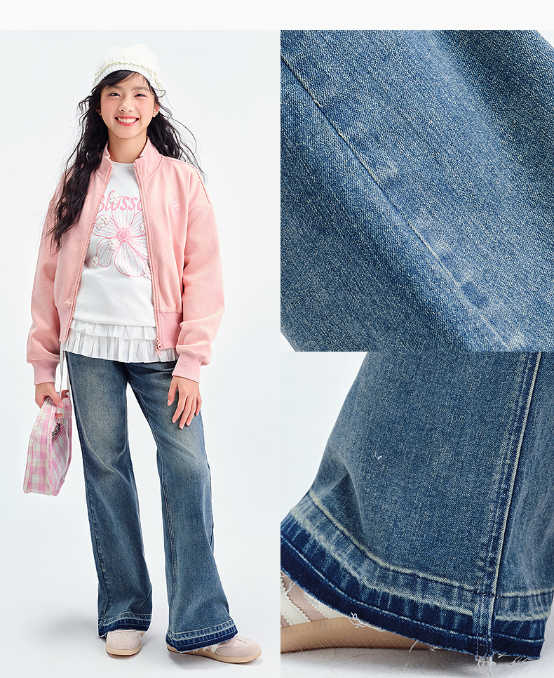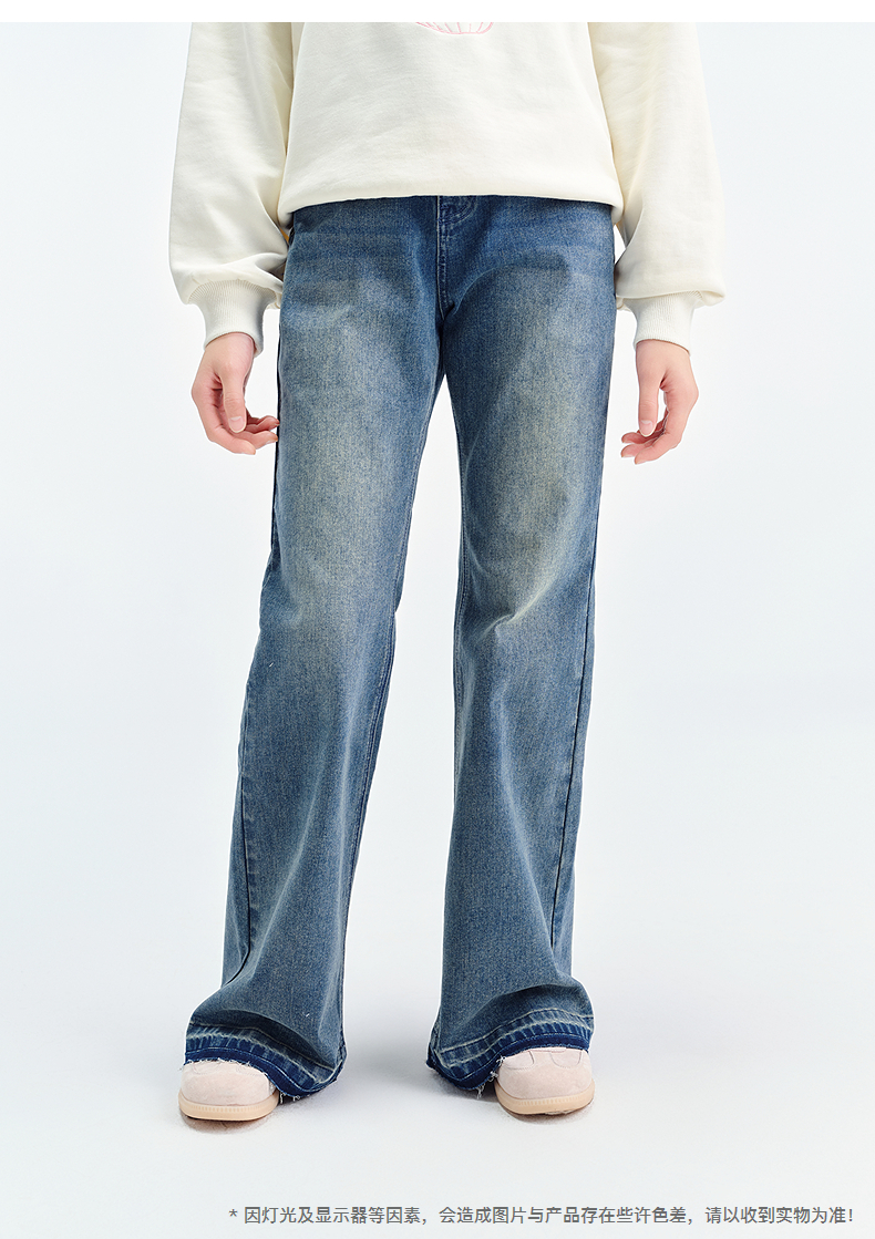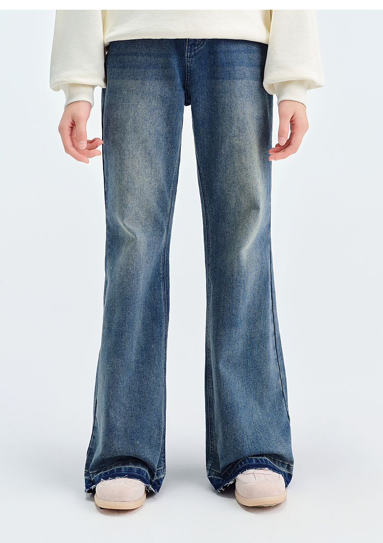 笛莎Deesha青少年女童裤子2025春季女童牛仔微喇裤