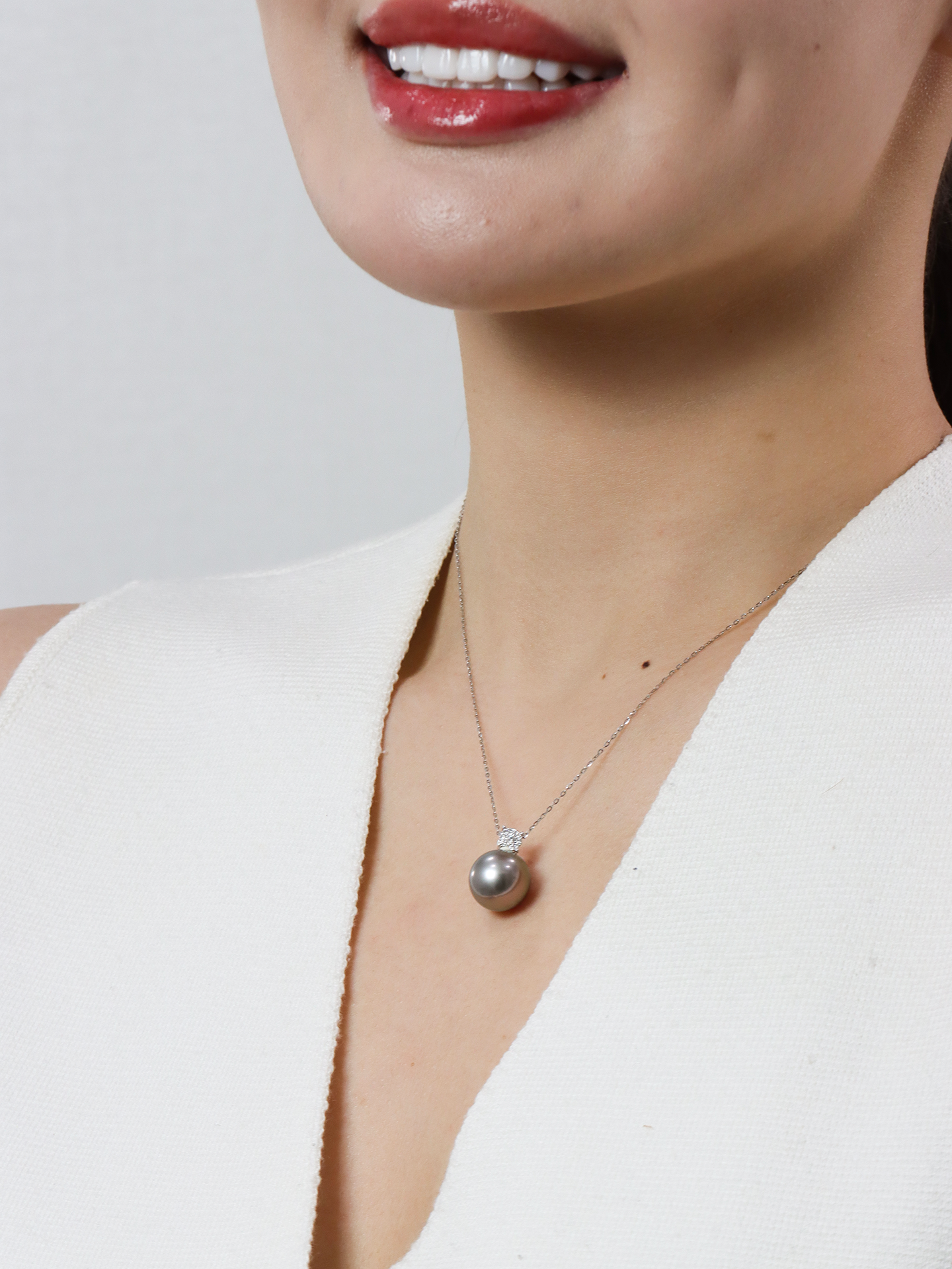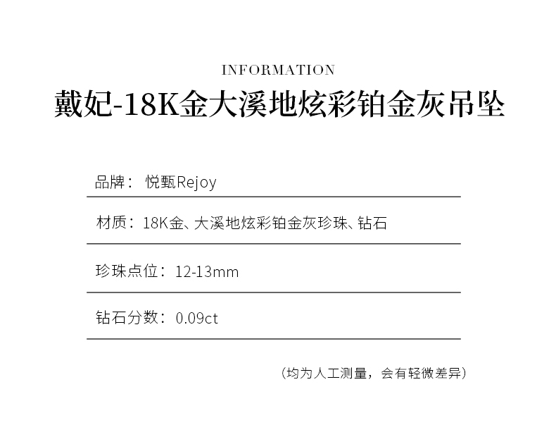 【挚友限定】戴妃-18K金钻石大溪地炫彩铂金灰吊坠12-13mm