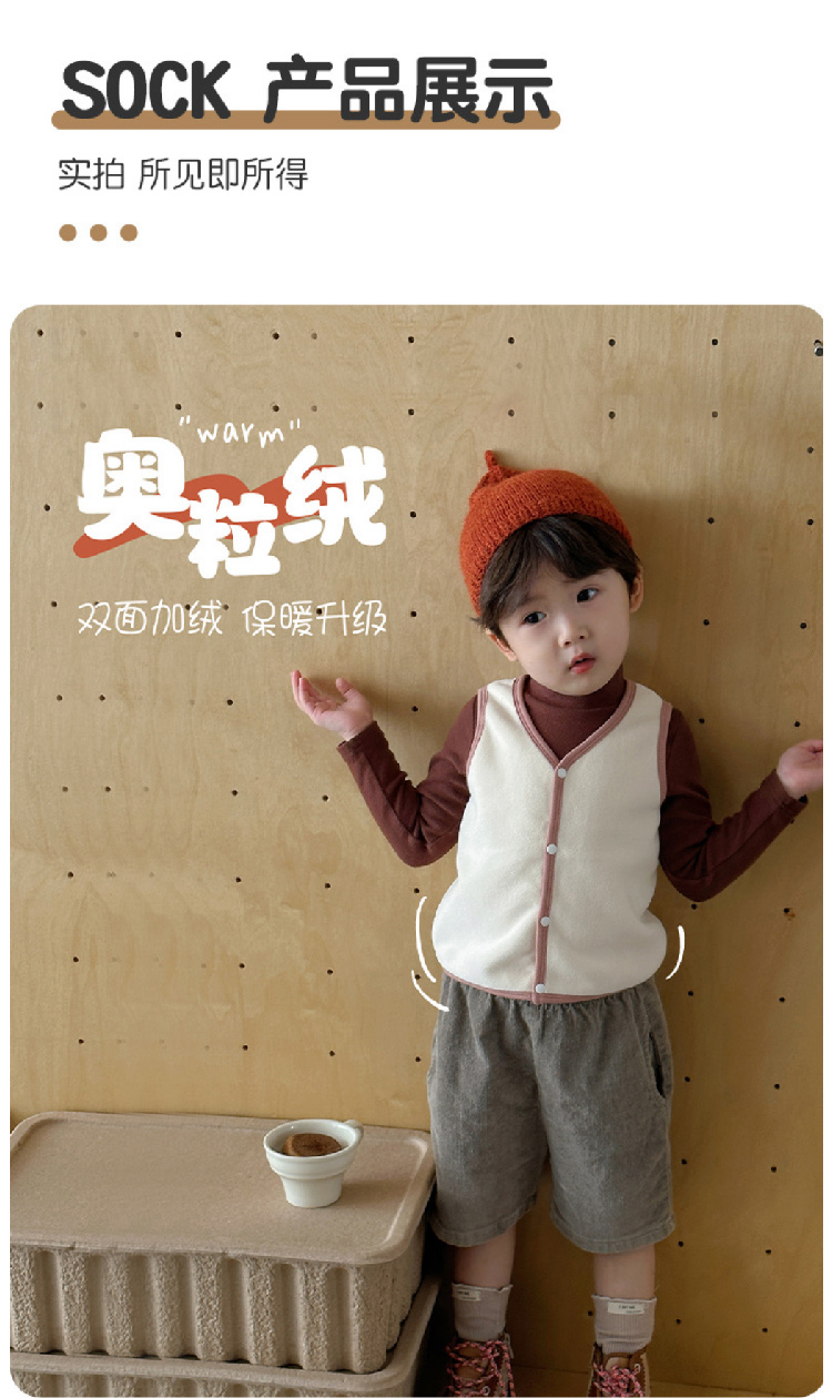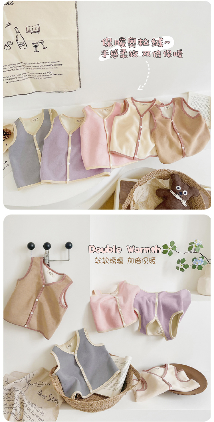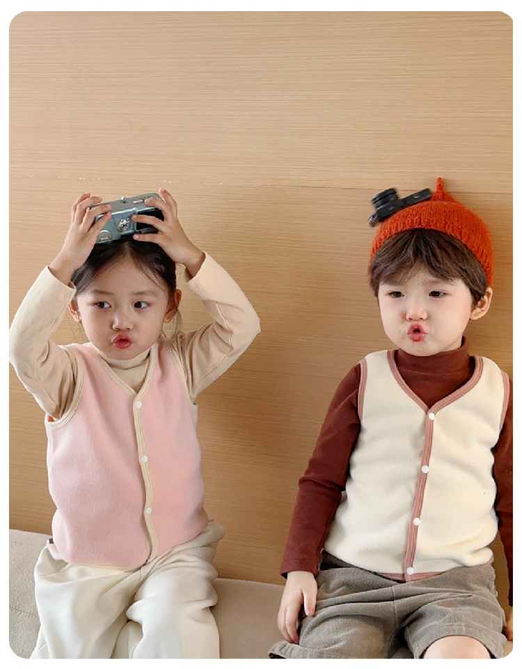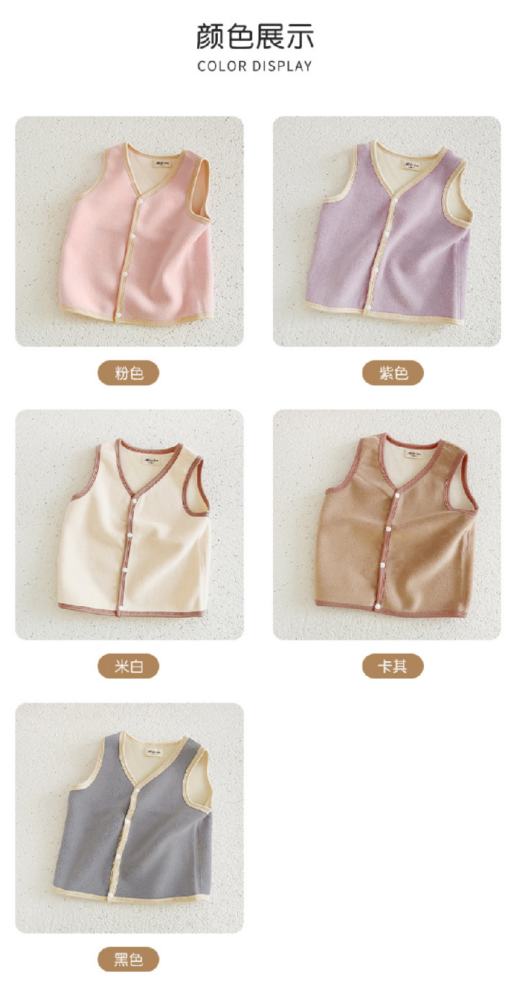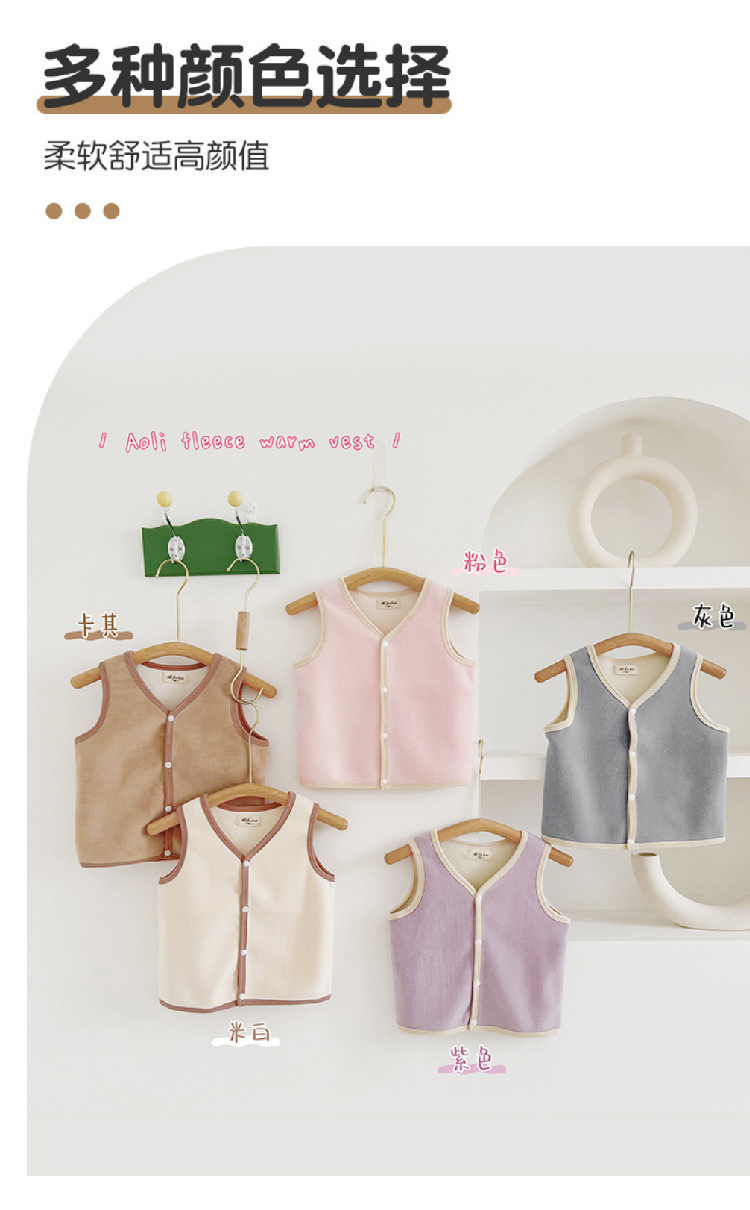 【儿童奥利绒马甲】2023秋冬新款儿童加绒马甲背心 纯色奥利绒男女宝宝背心保暖内穿