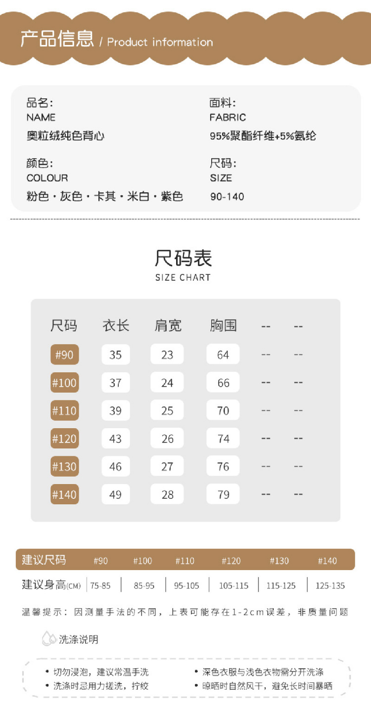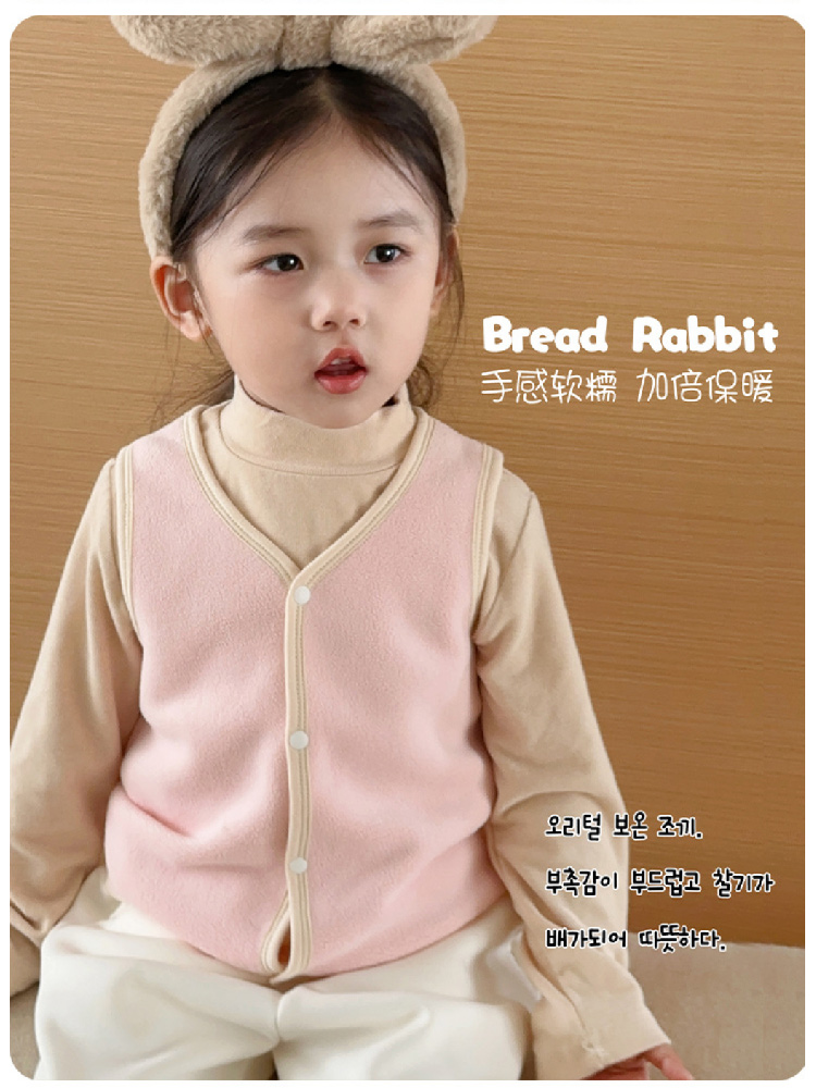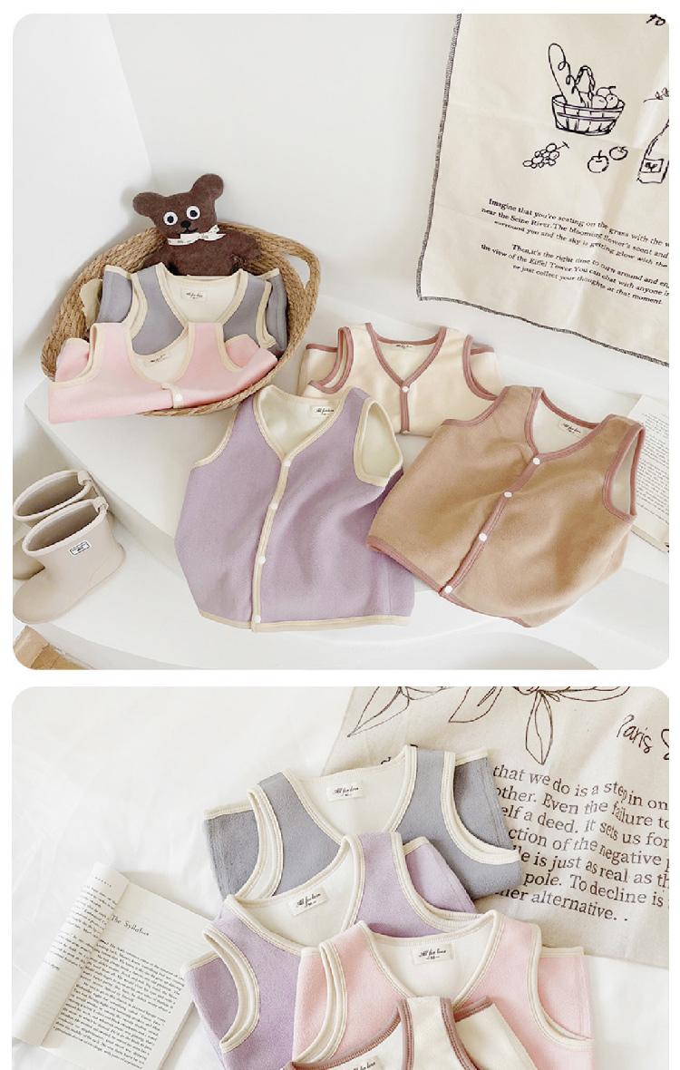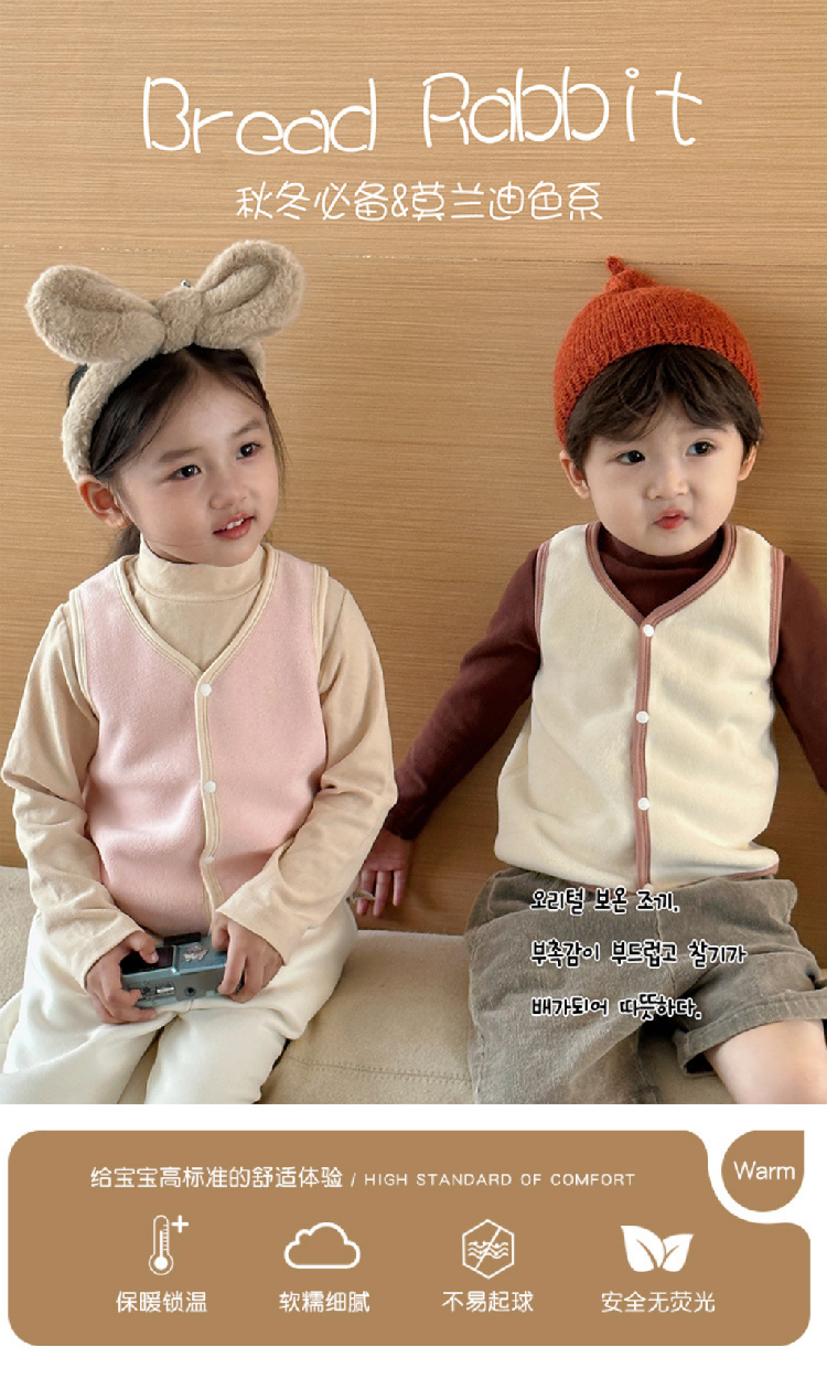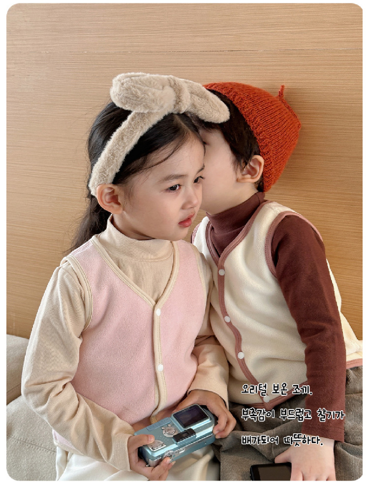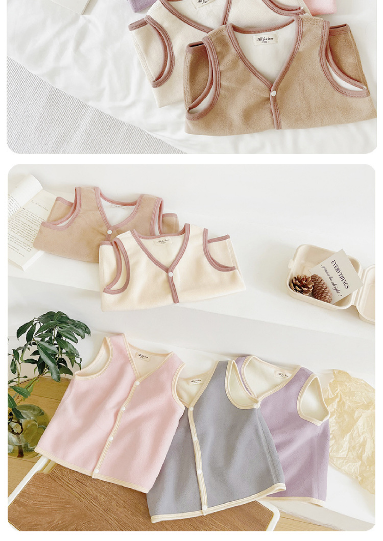 【儿童奥利绒马甲】2023秋冬新款儿童加绒马甲背心 纯色奥利绒男女宝宝背心保暖内穿